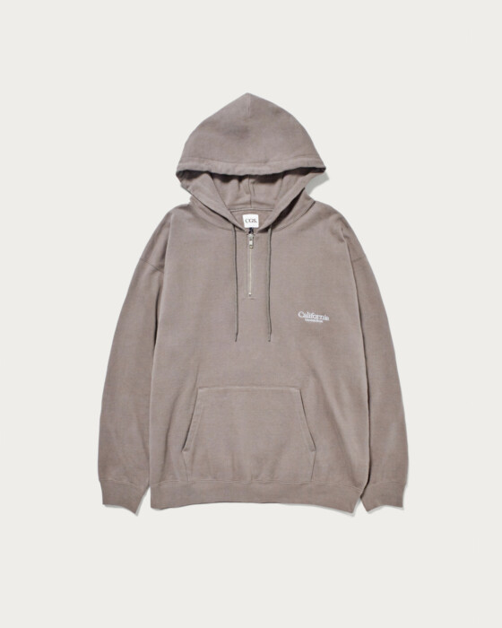 オーガニックコットンを100%使用し、ふっくらと編み上げたハーフジップパーカー。通年使用をイメージし、薄過ぎず・厚すぎずの絶妙ボディで、ファッション感とリラックス感を両立させたバルーンシルエットになっています。裏面のパイルを微起毛させ、ウォッシュ加工で肌なじみの良いコンディションに仕上げました。今季は脱脂加工を施し少し乾いた風合いもポイントです。左胸のショップロゴの刺繍もワンポイントに。