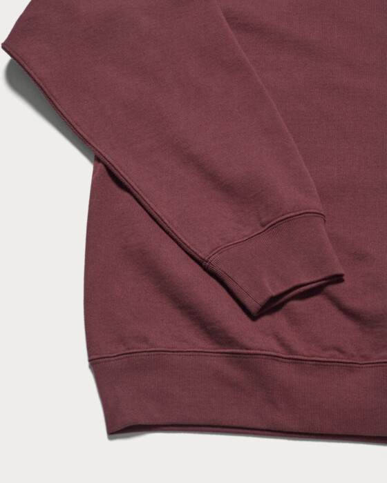 オーガニックコットンを100%使用し、ふっくらと編み上げたクルーネックスウェット。通年使用をイメージし、薄過ぎず・厚すぎずの絶妙ボディで、ファッション感とリラックス感を両立させたバルーンシルエットになっています。裏面のパイルを微起毛させ、ウォッシュ加工で肌なじみの良いコンディションに仕上げました。今季は脱脂加工を施し少し乾いた風合いもポイントです。左胸のショップロゴの刺繍もワンポイントに。