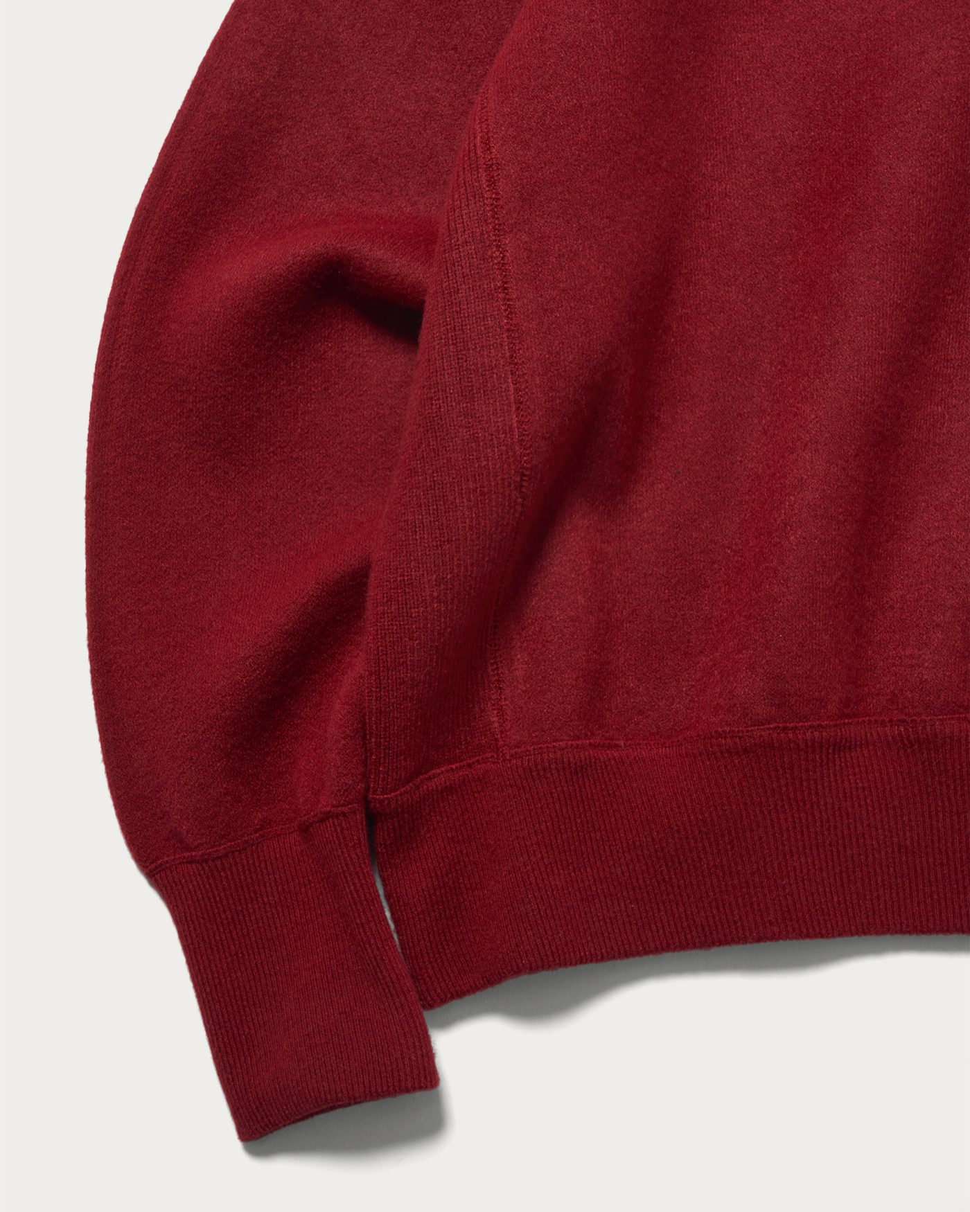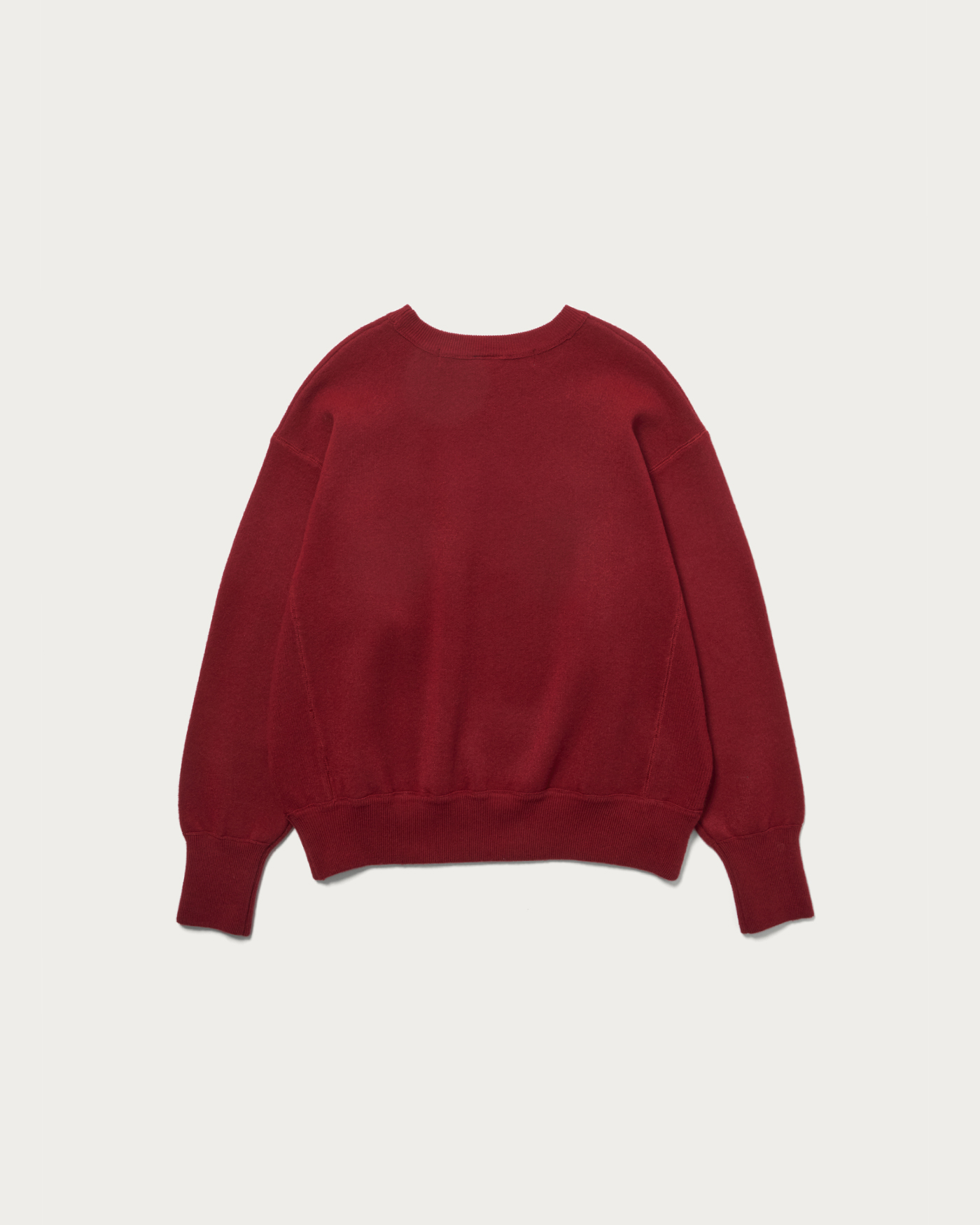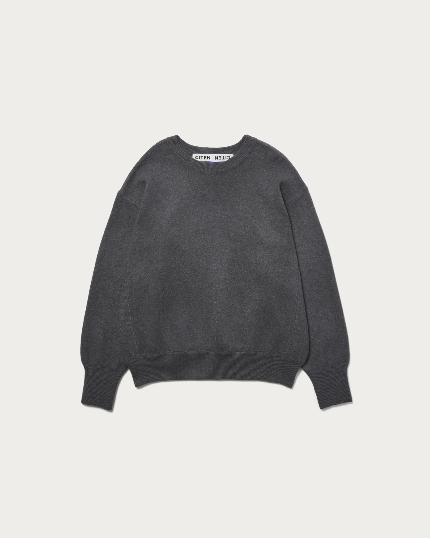 デイリー使いにちょうど良い、カジュアルきれいなニットプルオーバー。脇の畦編みや切り替え線に三本針のフリミシンを使ったり、スウェットのようなデザインに落とし込んだニットです。ニットの上品さと、スウェットのようなカジュアルさを兼ね揃えたデイリー使いにちょうど良い厚みでご用意いたしました。
