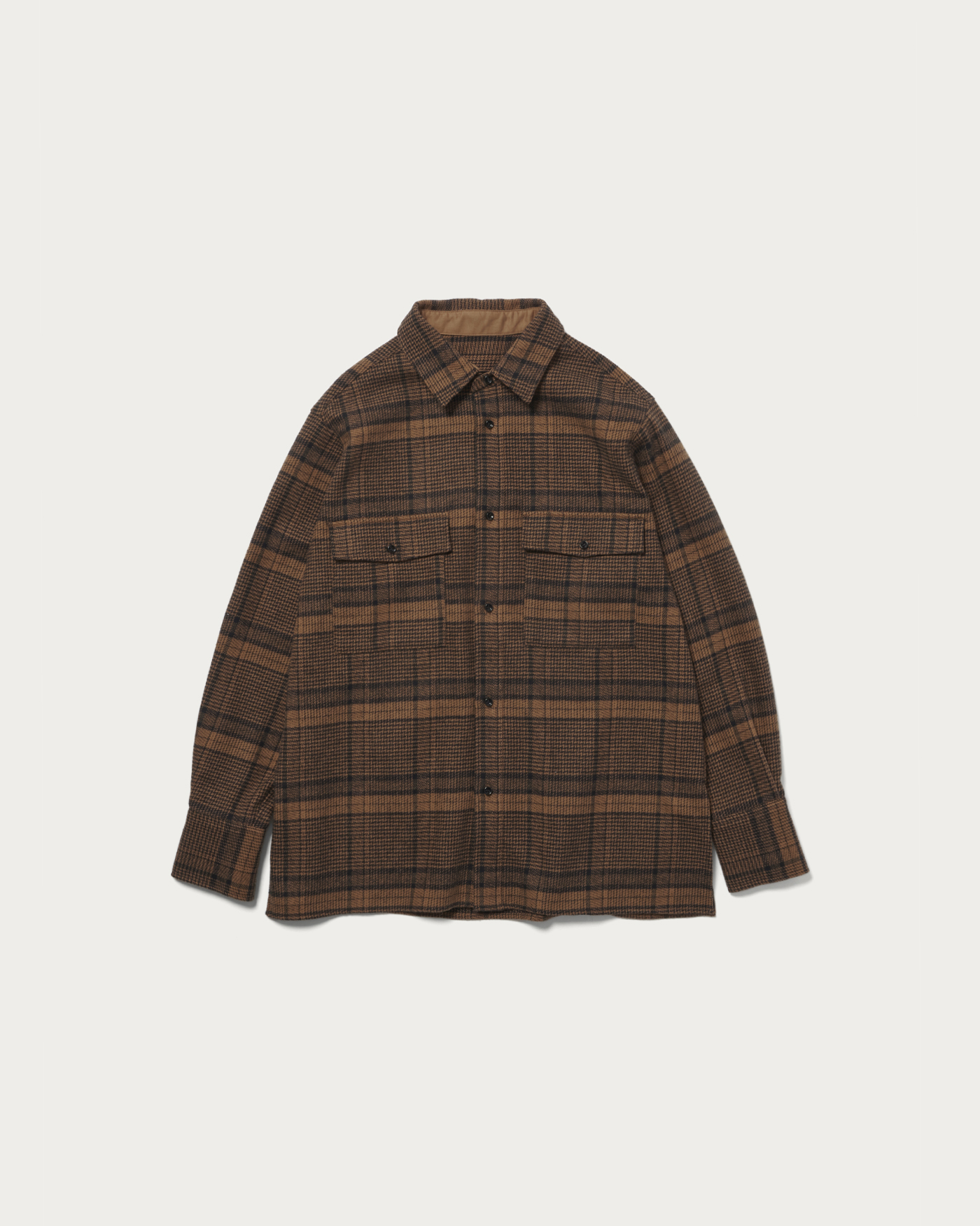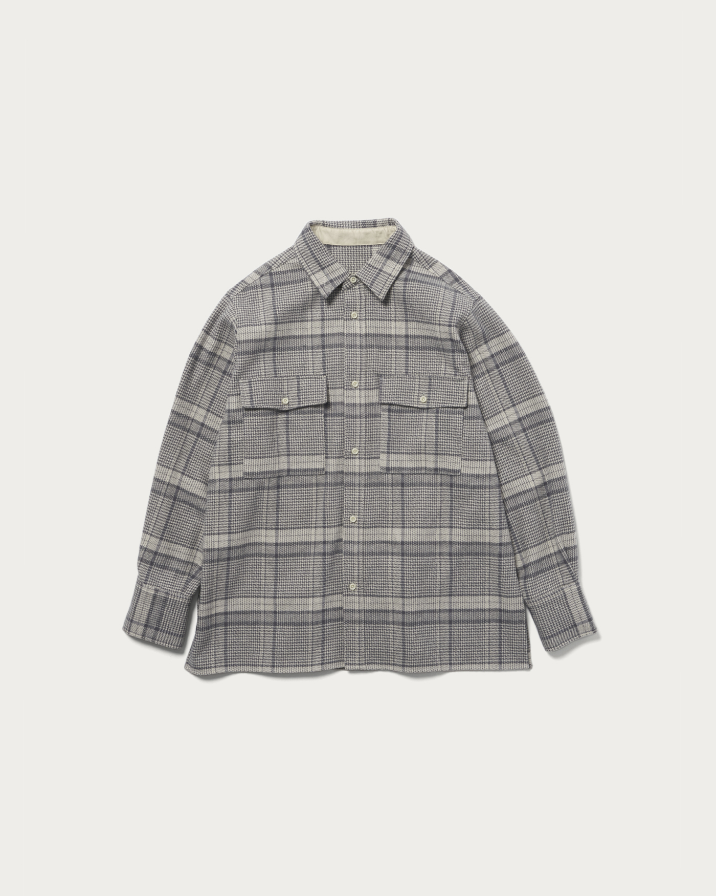 ヴィンテージライクな生地の風合いでクラシカルな雰囲気にしてくれるオリジナルのチェック柄のシャツ。大きめの胸ポケットが程よいアクセントとなり、シンプルながらもこなれた印象に仕上げました。上品でスタイリングの主役になる一着です。秋冬ムードなカラー展開も魅力的です。