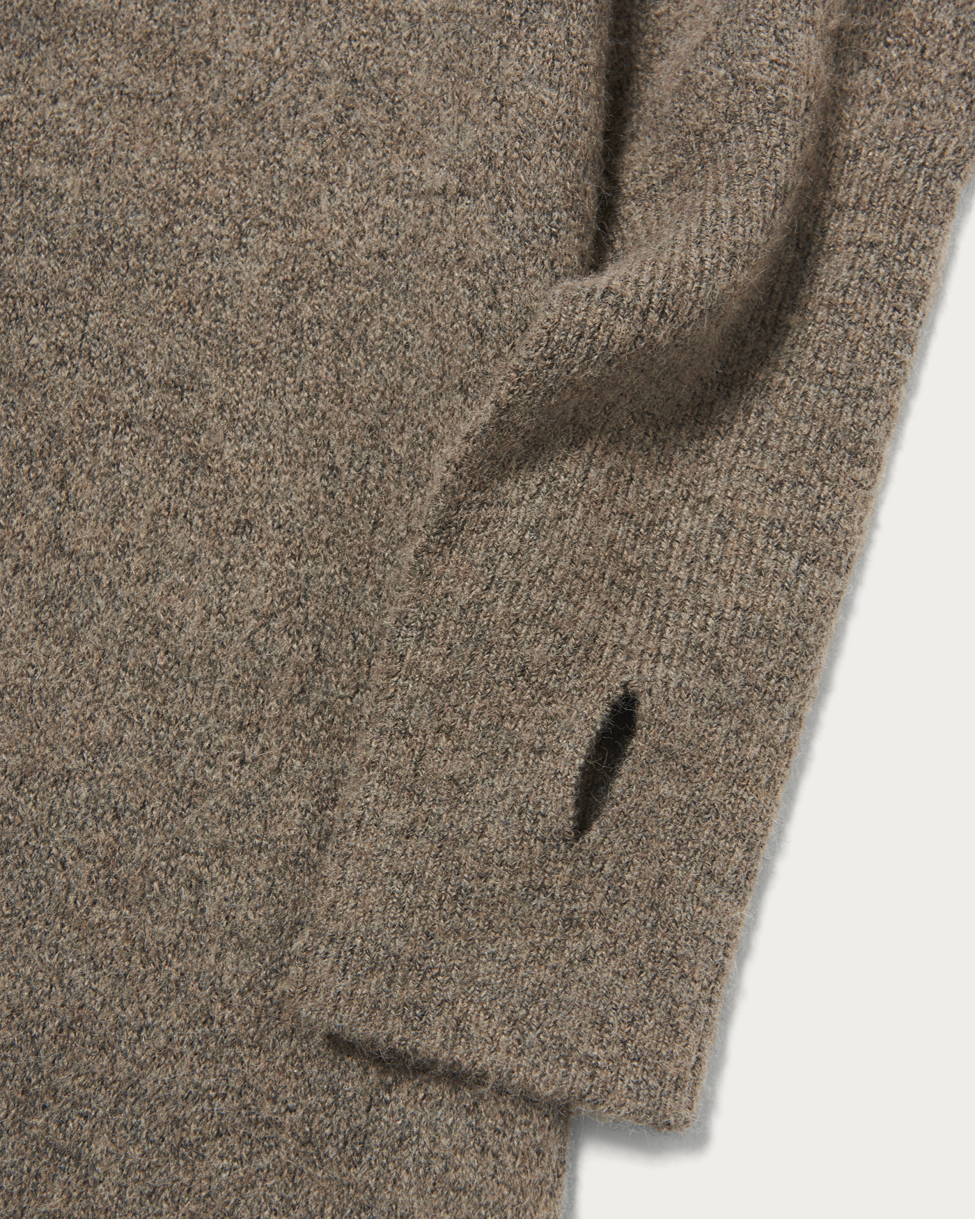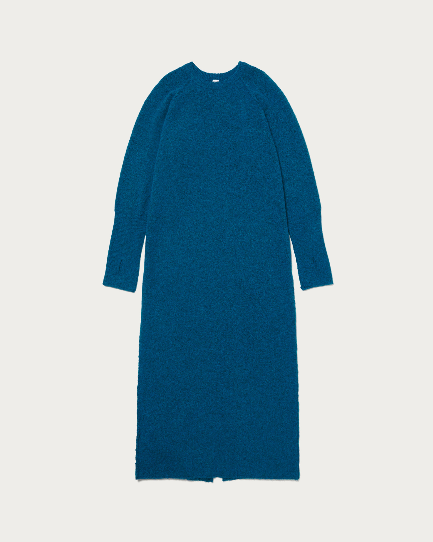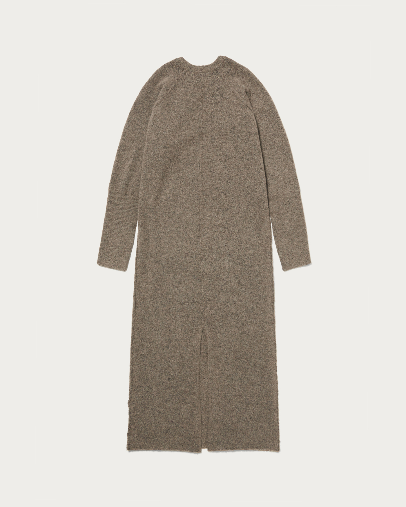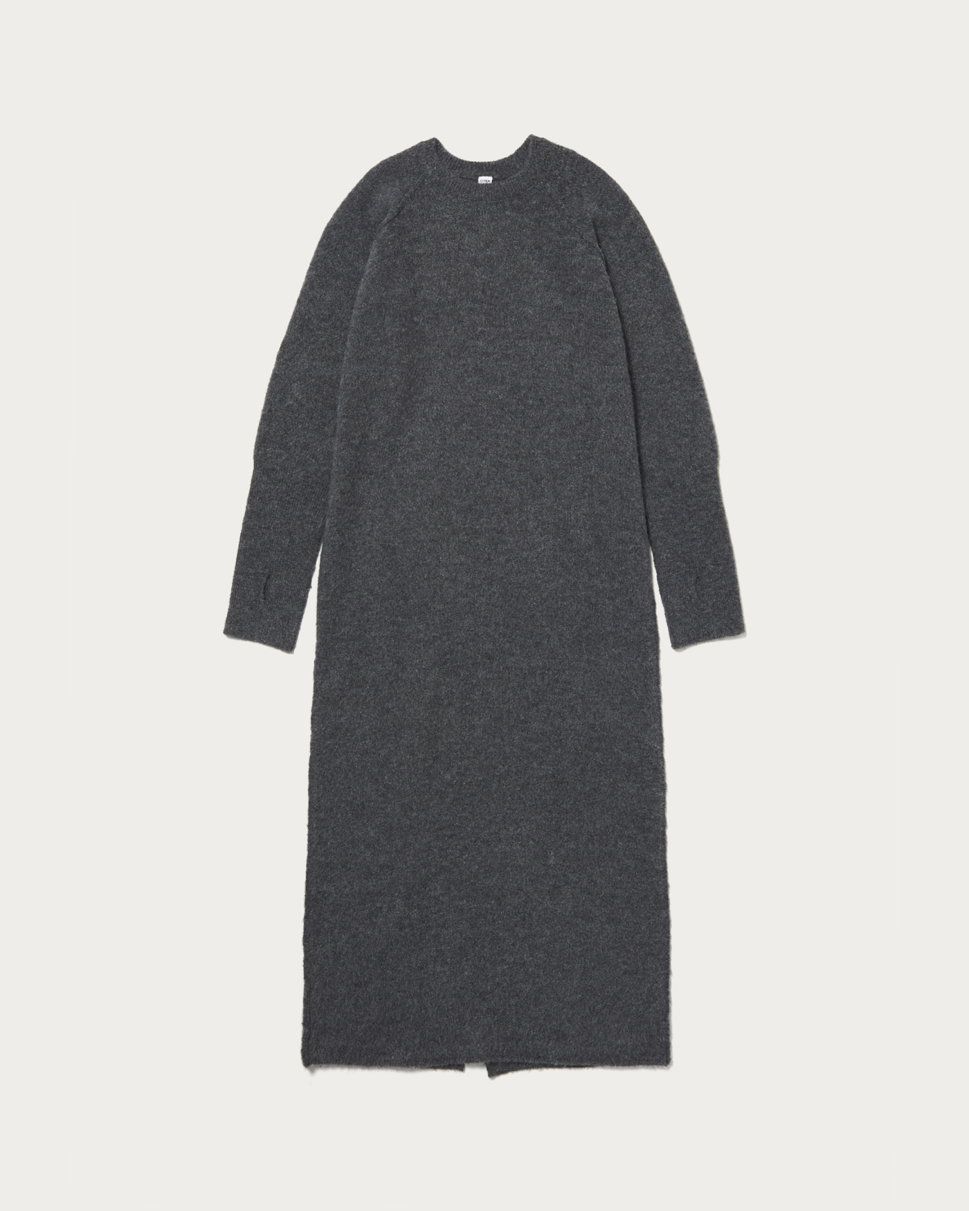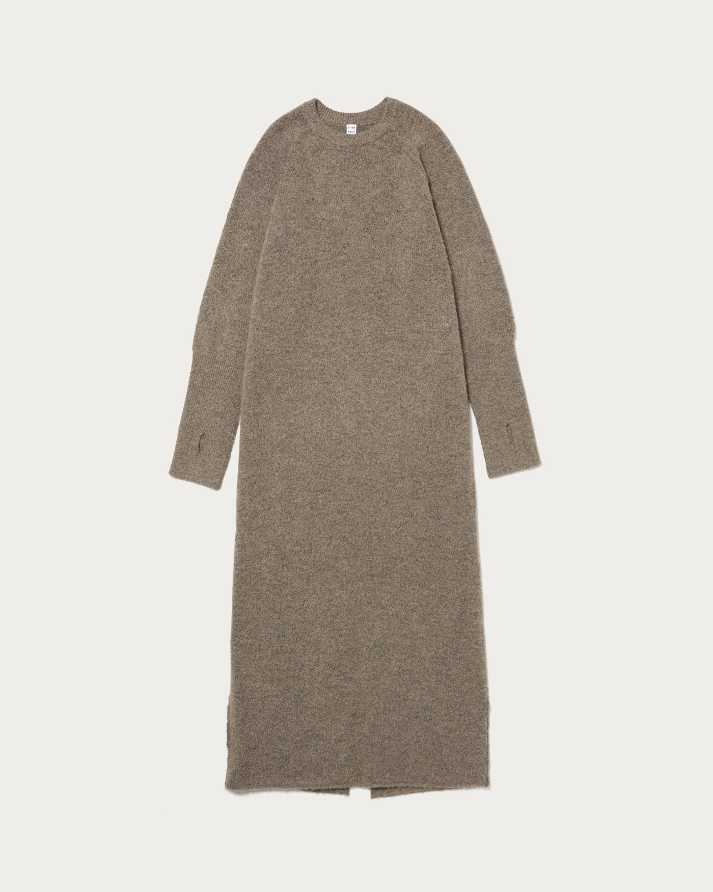 女性らしい雰囲気が魅力のニットワンピース。ナローシルエットでスタイルアップや着痩せ効果を叶えてくれる一着。ネック部分や袖のシルエットなど細部のバランスにこだわって仕上げています。袖部分は編み地を組み合わせ、表情感が出るように仕上げているのが特徴。また、袖口にはサムホール付きで大人カジュアルに着こなせるアクセントをプラスしています。