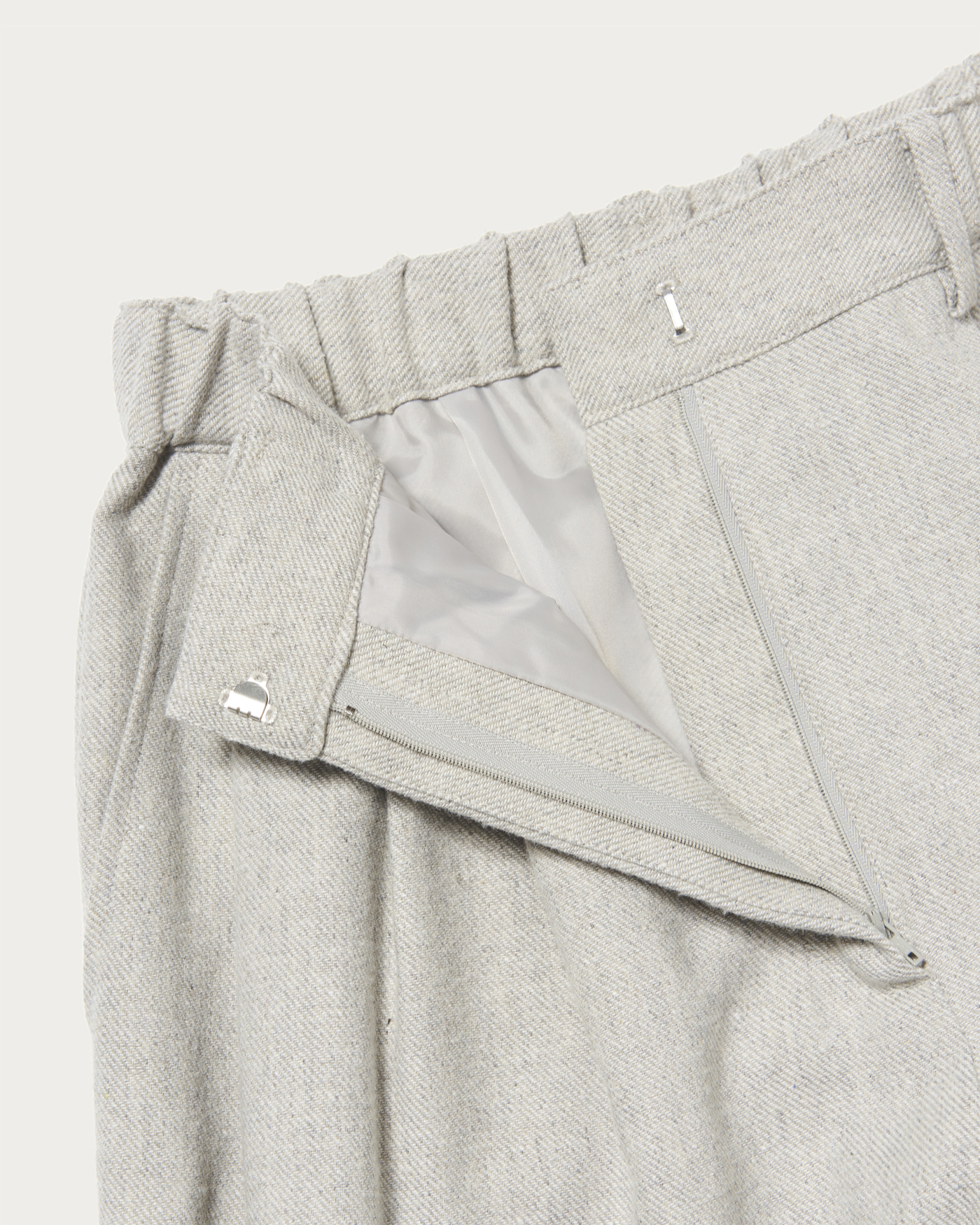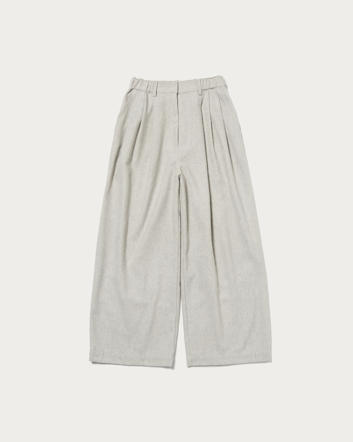 たっぷりとしたタックとボリュームのあるシルエットが特徴の3タックワイドパンツ。人気の定番シルエットに、秋冬らしいミックス感が魅力の新素材が登場しました。裾が広がり過ぎないきれいなワイドシルエットなので、リラックスしたイージーな雰囲気ながらもキチンと感のあるコーディネートをお楽しみいただけます。