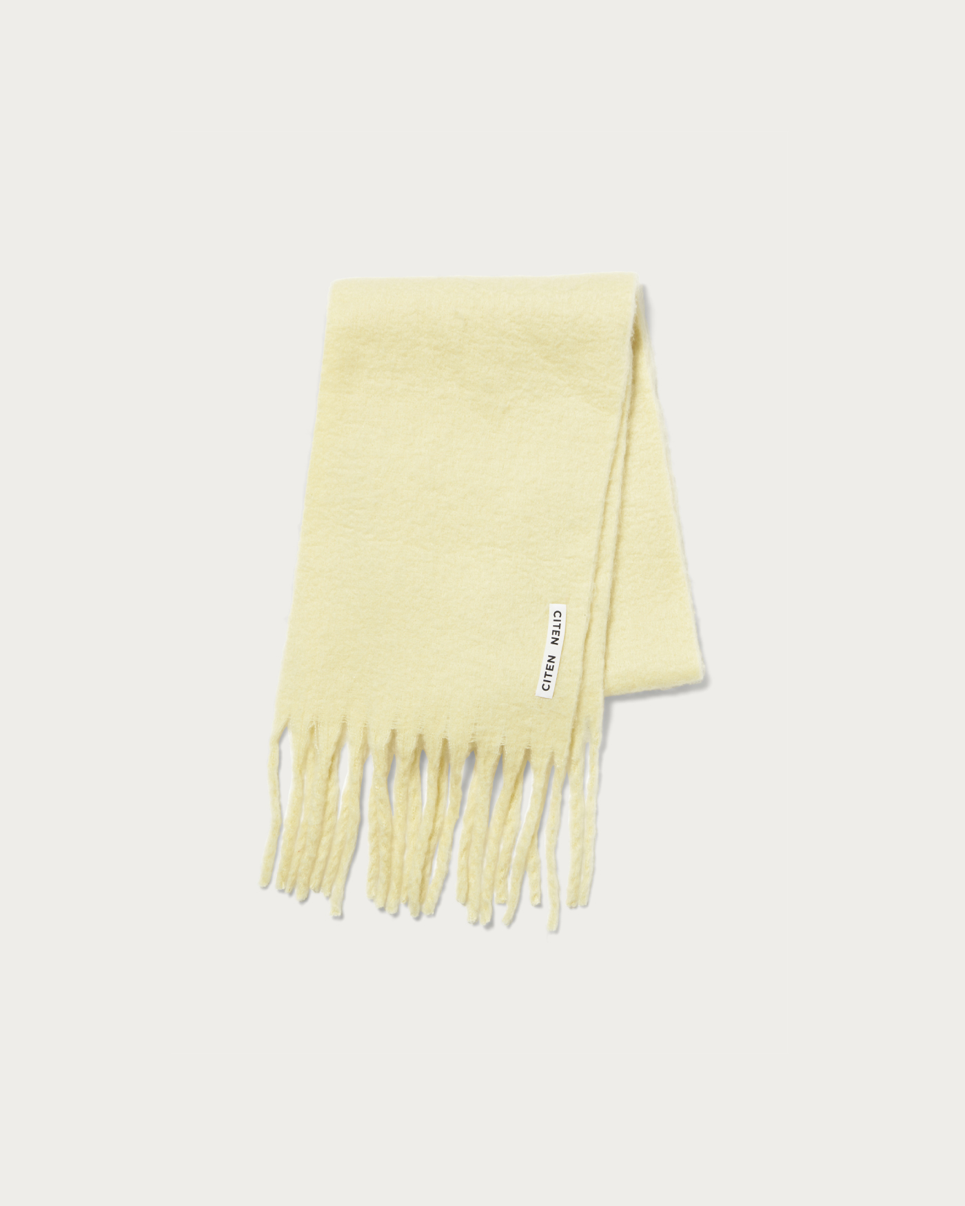 ふわっと柔らかい肌触りのオリジナルカラーのプレーンストール。ふっくらとした厚みと起毛感で程よいボリュームが特徴で、スタイリングに合わせて巻き方を変えて違った雰囲気をお楽しみいただけます。使いやすいベーシックカラーに合わせて、CITENらしい発色の良いカラーも加えた4色展開で提案しております。少し肌寒い時期は、肩かけで羽織りとしても◎
