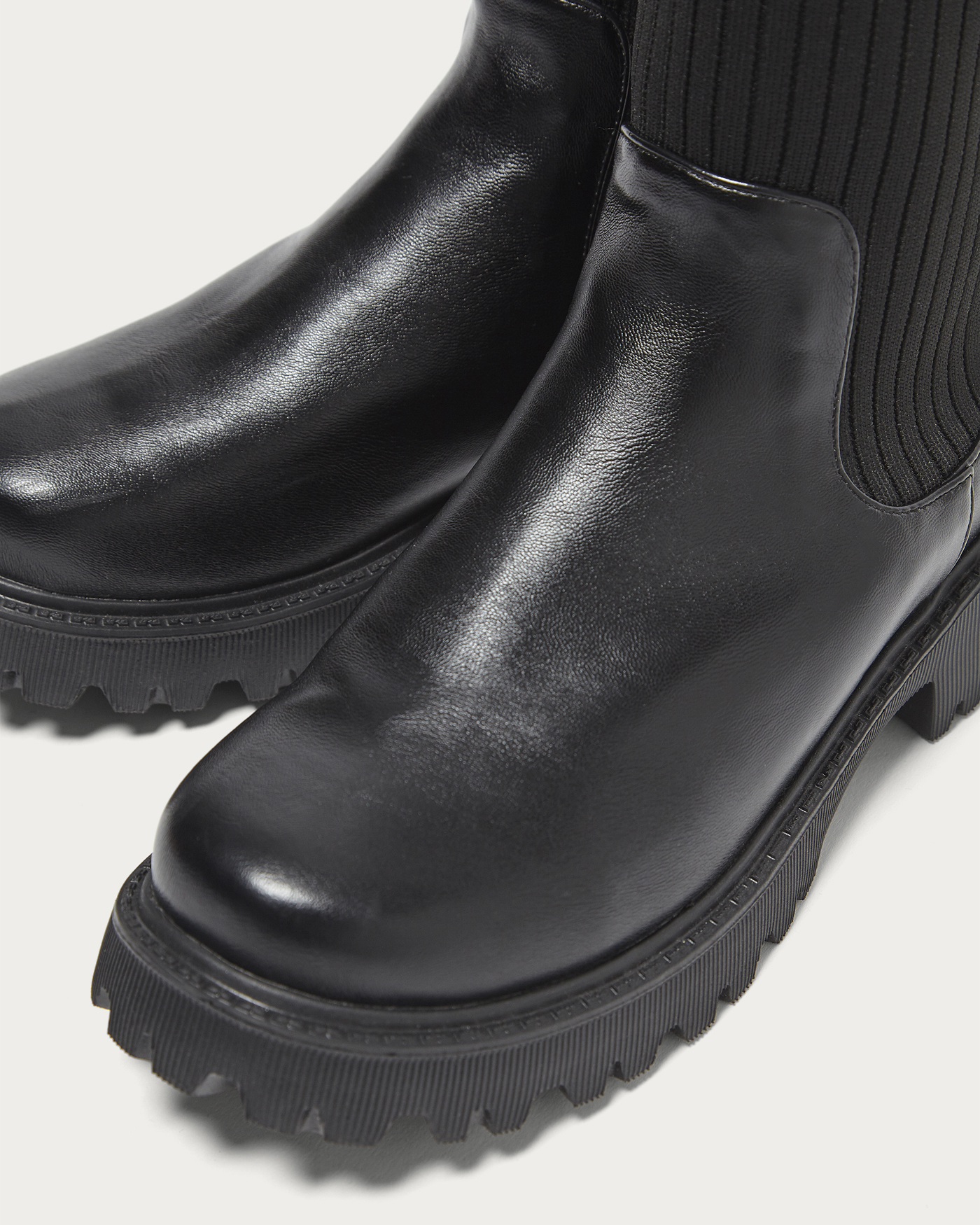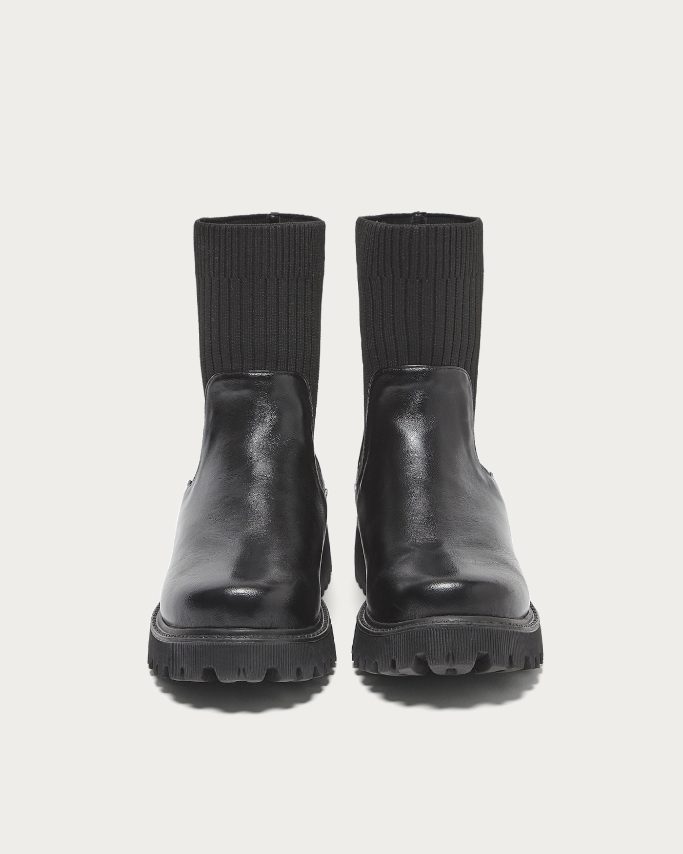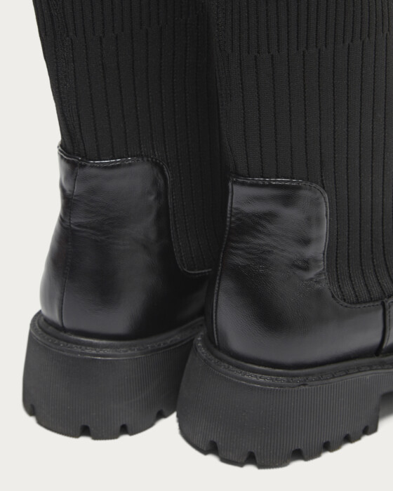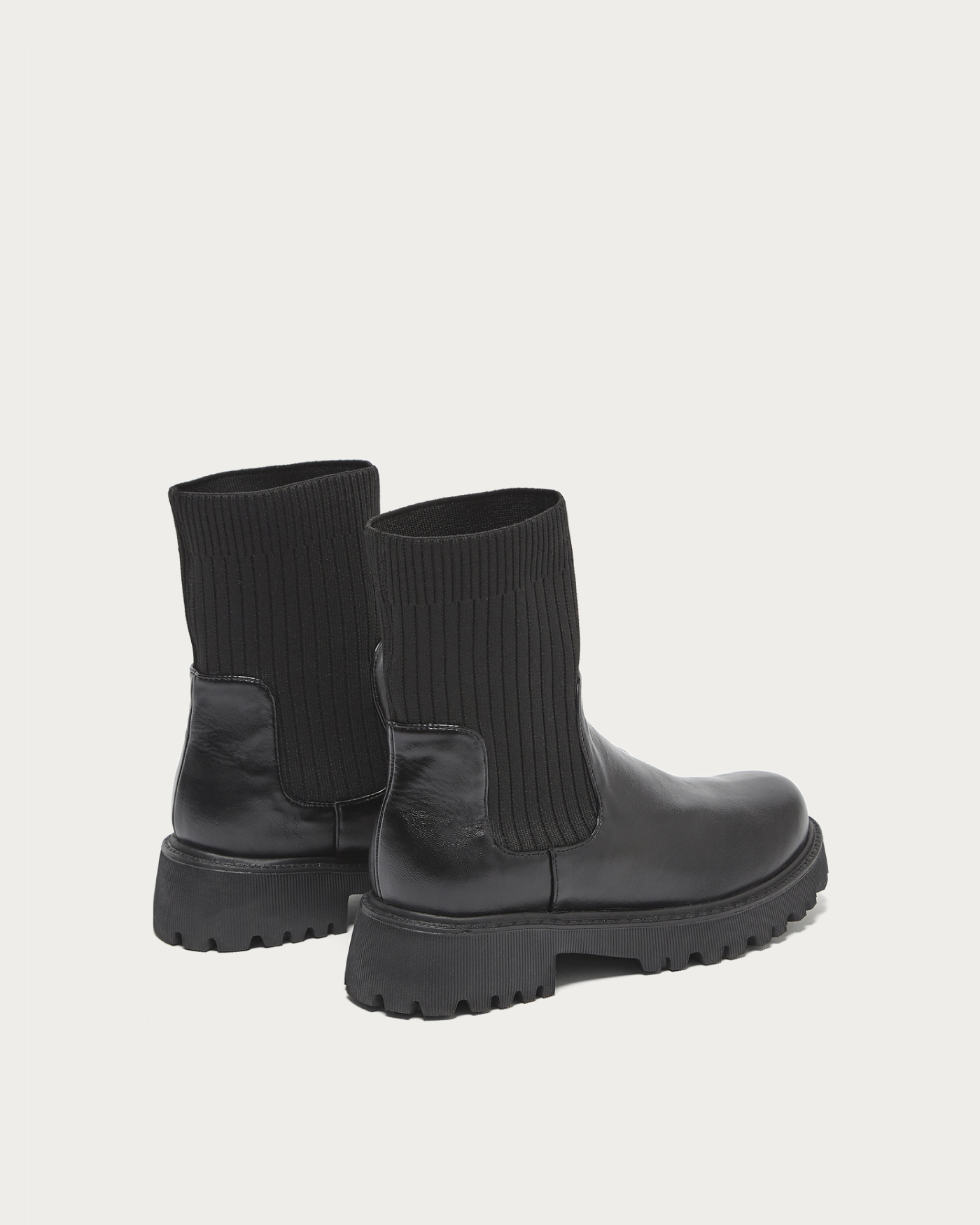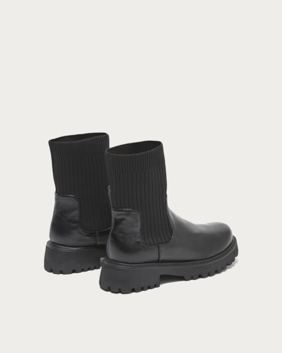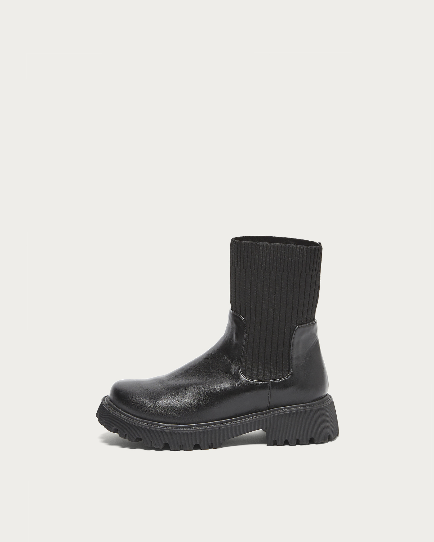 履き口がリブニット仕様のサイドゴアショートブーツ。厚みのあるソールとほどよいボリューム感のトゥで、スタイリング取り入れやすいアイテムです。インソールは通常に使われているクッション材よりも厚い5mmを採用。履き口はリブニットで足入れもしやすく、足あたりが良いのが魅力です。