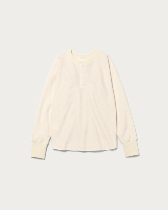 ニット見えする裏起毛カットソープルオーバー。冬にも暖かい裏起毛素材がポイント。トレンドのヘンリーネックで前後2wayでも着用して頂けます。体のラインを拾いにくいシルエットで、着回し力抜群です。