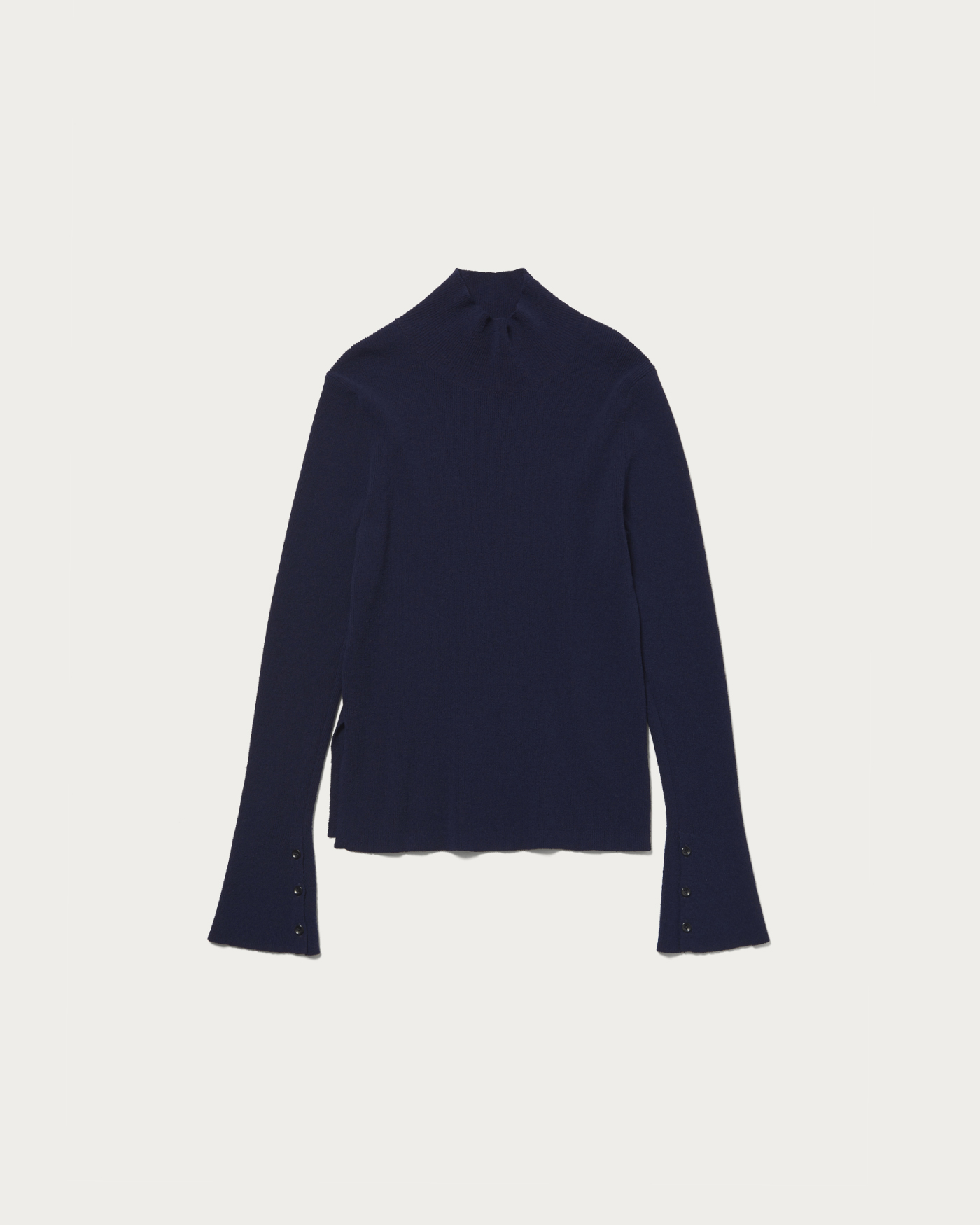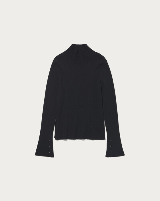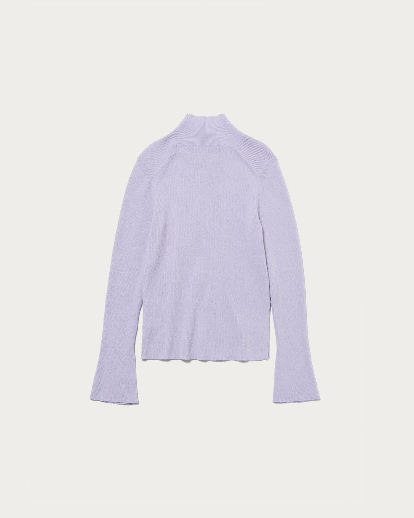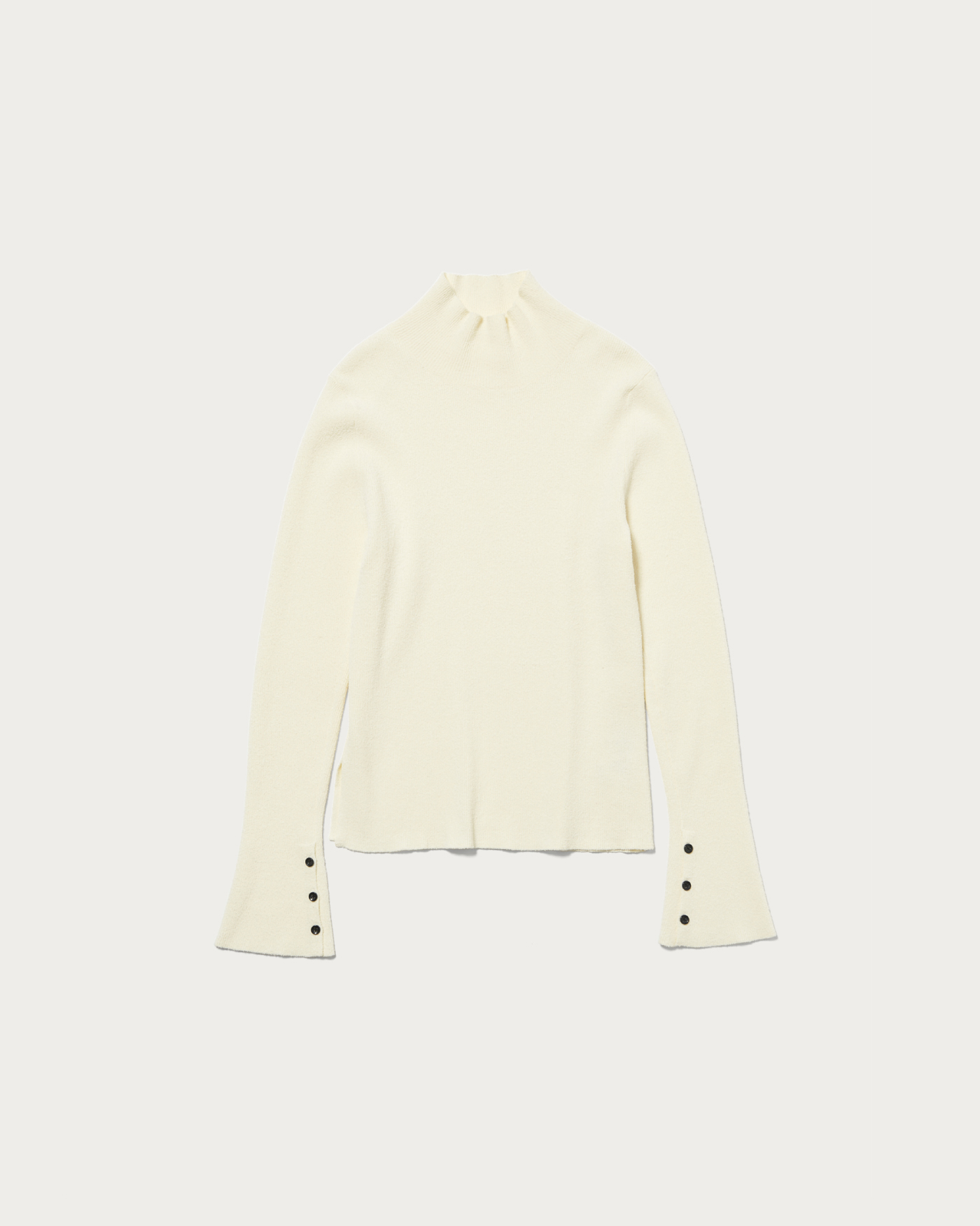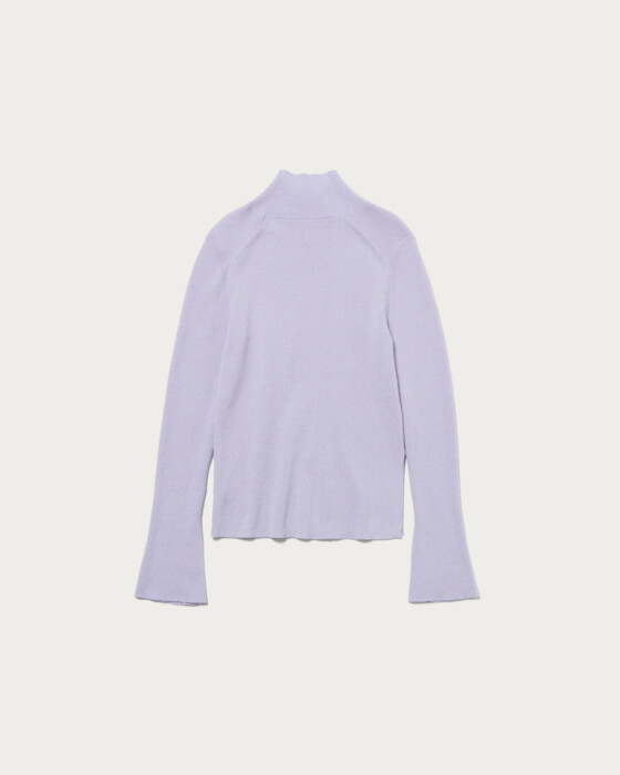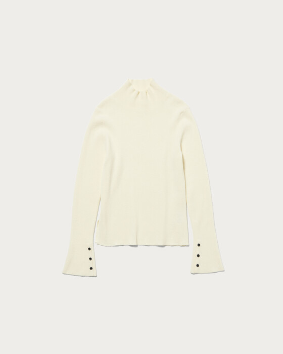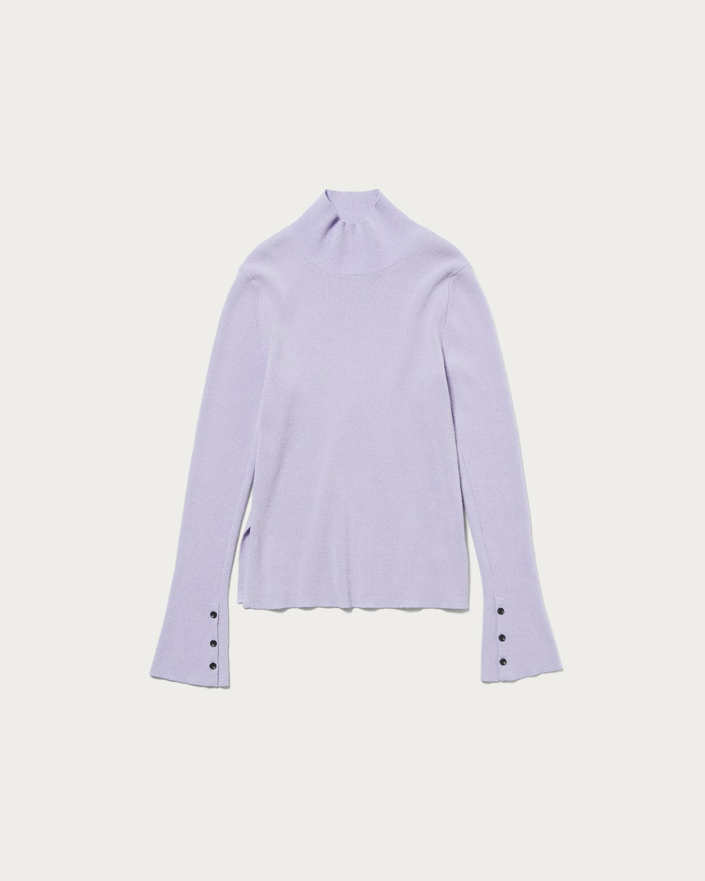 ベーシックに使えるハイネックニットは、梨地の様な表情感のある編地で程よく抜け感のある印象に。ネックの高さやぴったりしすぎないタイトさのバランスにこだわりました。レイヤードでも1枚着でも便利に使えるアイテムです。■素材ちりちりとした糸を編むことで梨地の様な表情のある編地が特徴的。ソフトな風合いで着心地よく、透けにくい肉感で秋冬通して長くお使いいただけます。