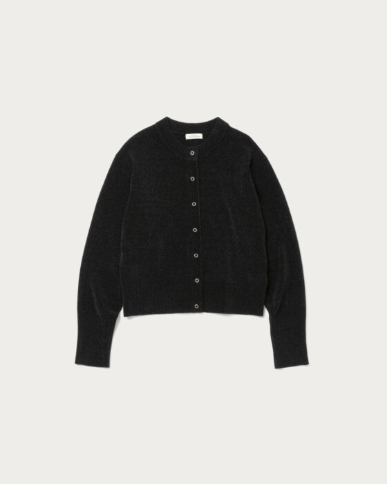 程よくシャープな印象を持つクルーカーディガンは、シンプルながらも洗練されたデザインが魅力です。羽織りとしてはもちろん、プルオーバー感覚でも着用できるため、様々なコーディネートに対応できる万能なアイテムです。さらにモールヤーン素材の程よい光沢感が大人っぽさを演出し、上品で落ち着いた雰囲気をプラスします。カジュアルからきれいめスタイルまで幅広く活躍し、一着持っていると重宝するおすすめのアイテムです。