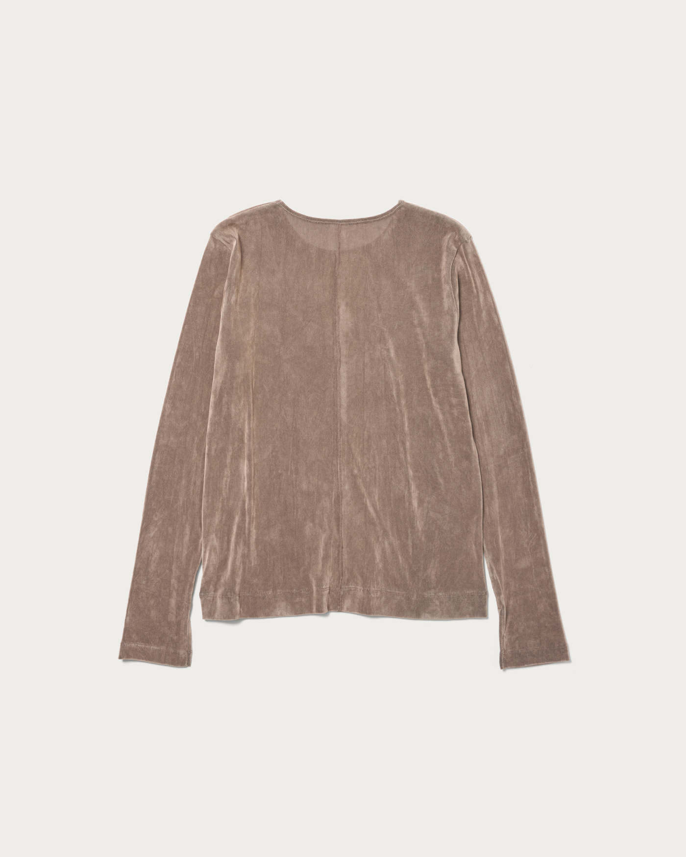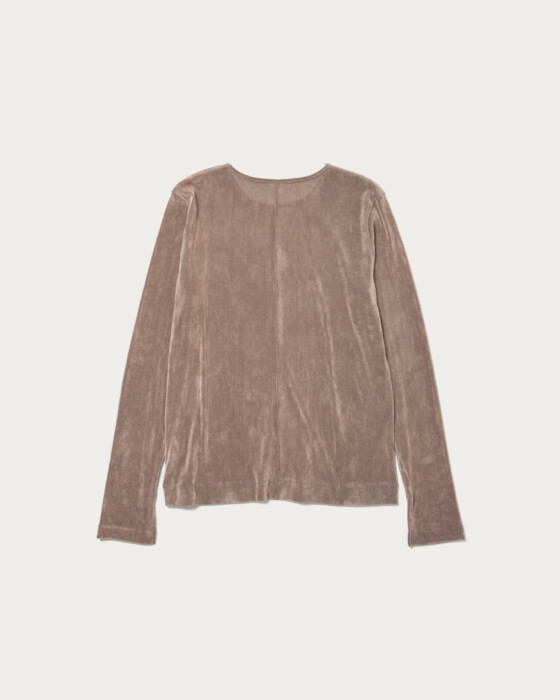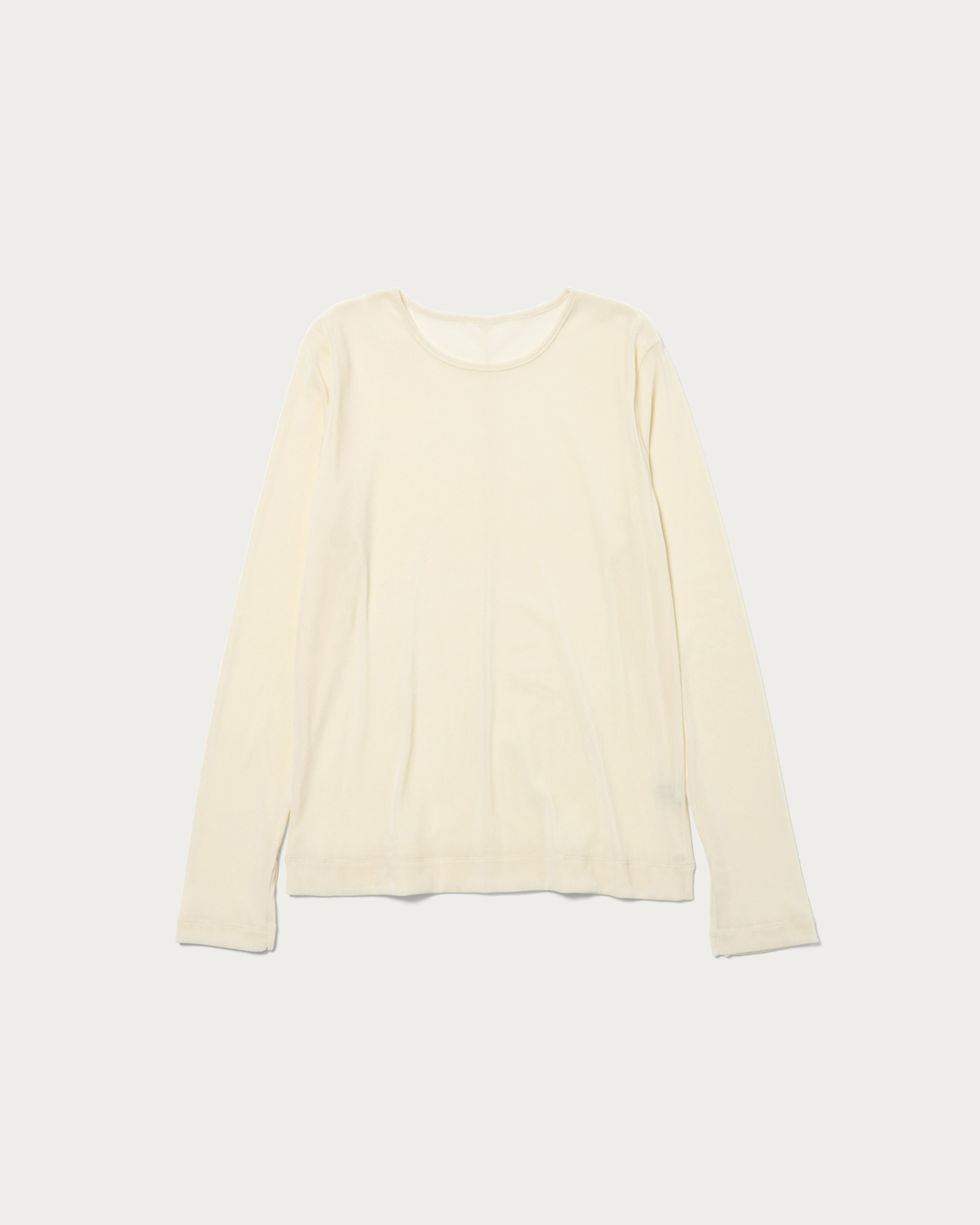 今年らしい程よいシアー感が魅力のフロッキーチュール素材を使用したロンT。袖口にはスリットが入っており、女性らしい抜け感を演出。軽やかな素材感で様々なスタイルに合わせやすく、季節の変わり目にもぴったりの一枚です。シンプルながらもトレンド感のあるデザインが魅力です。