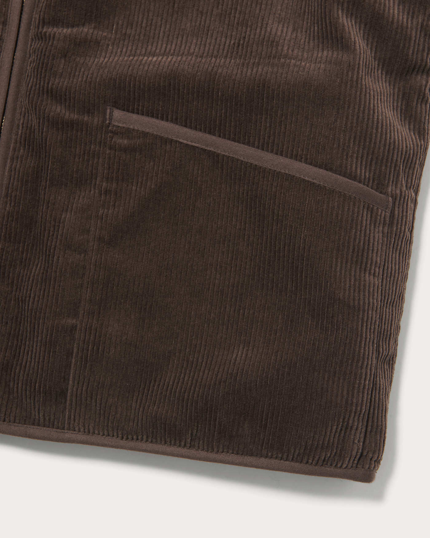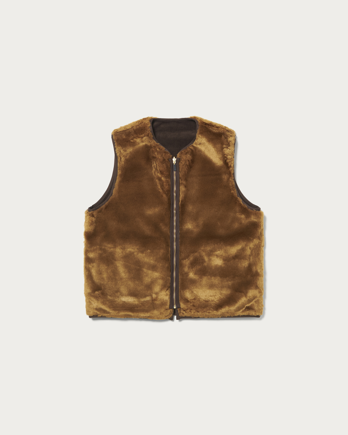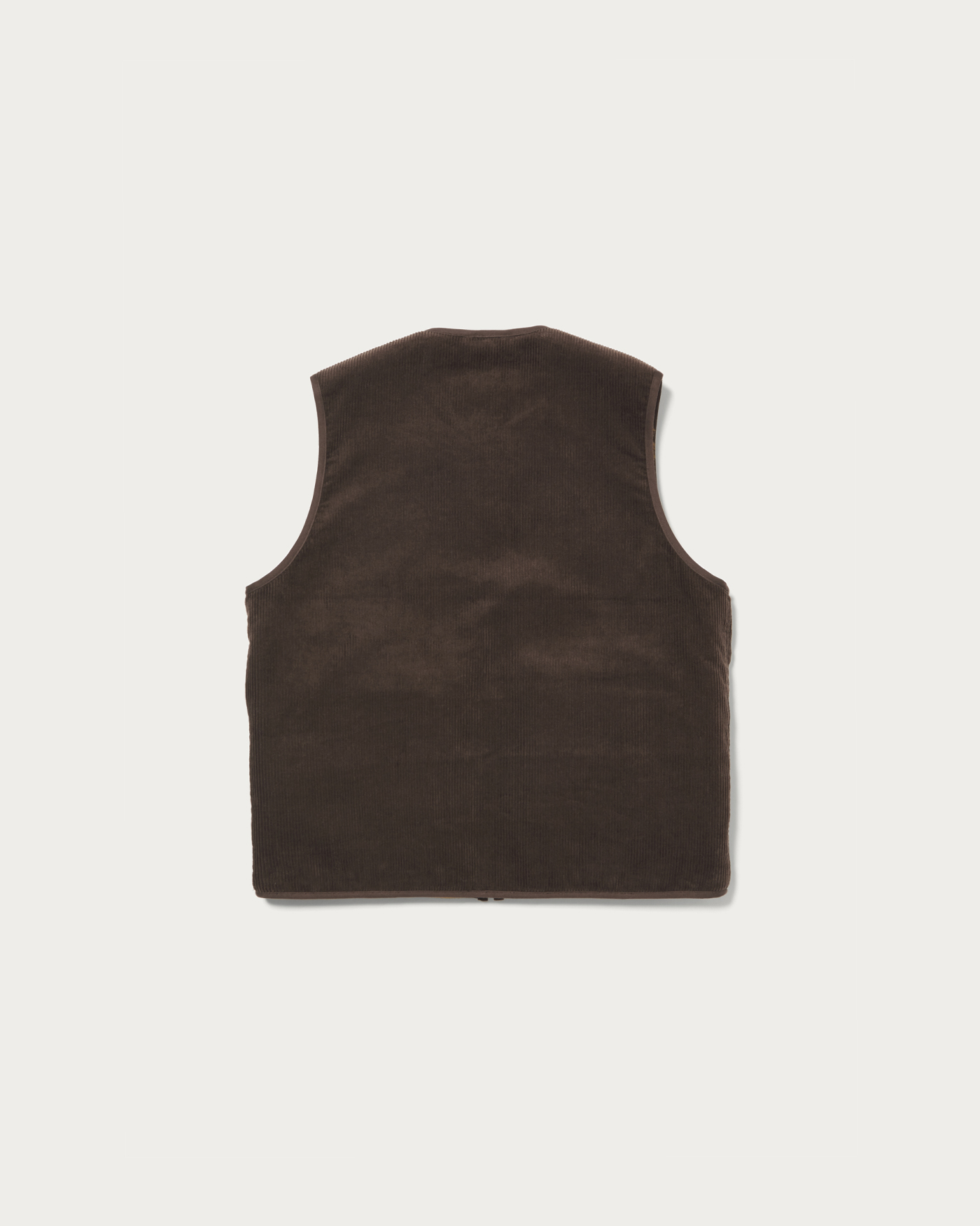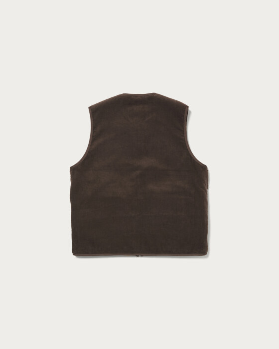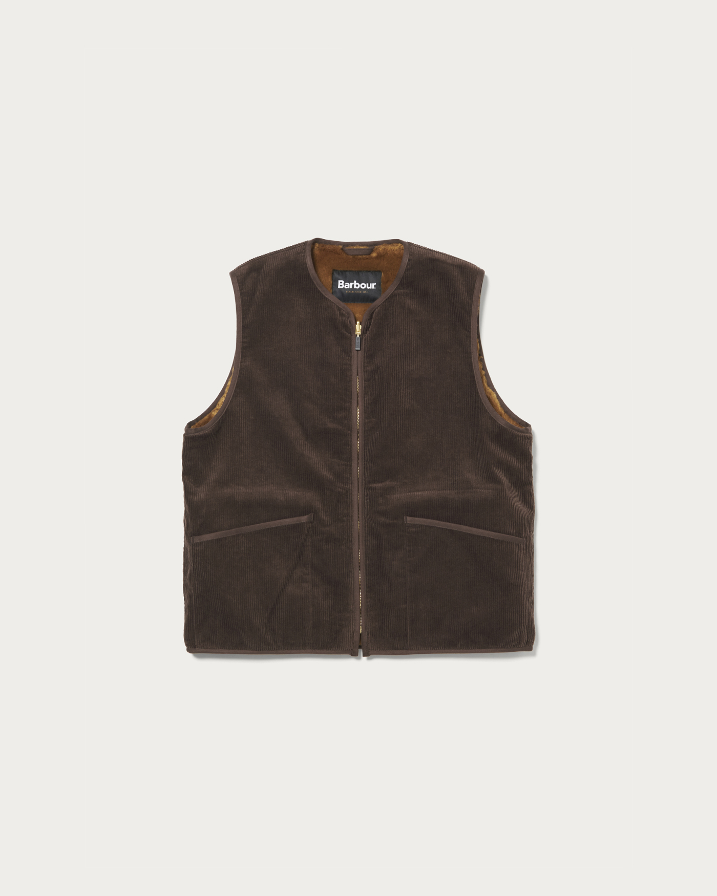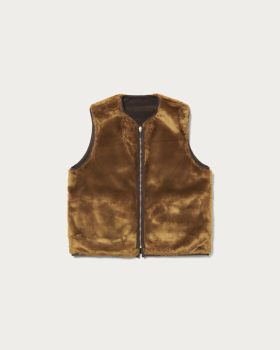 〈バブアー〉の定番モデルを〈グリーンレーベル リラクシング〉が別注。リバーシブルのファーベストは片面をコーデュロイ素材に変え、色味も表裏ともにブラウンで統一。クラシックな名作が、様々なスタイルに馴染む洗練されたムードに姿を変えました。