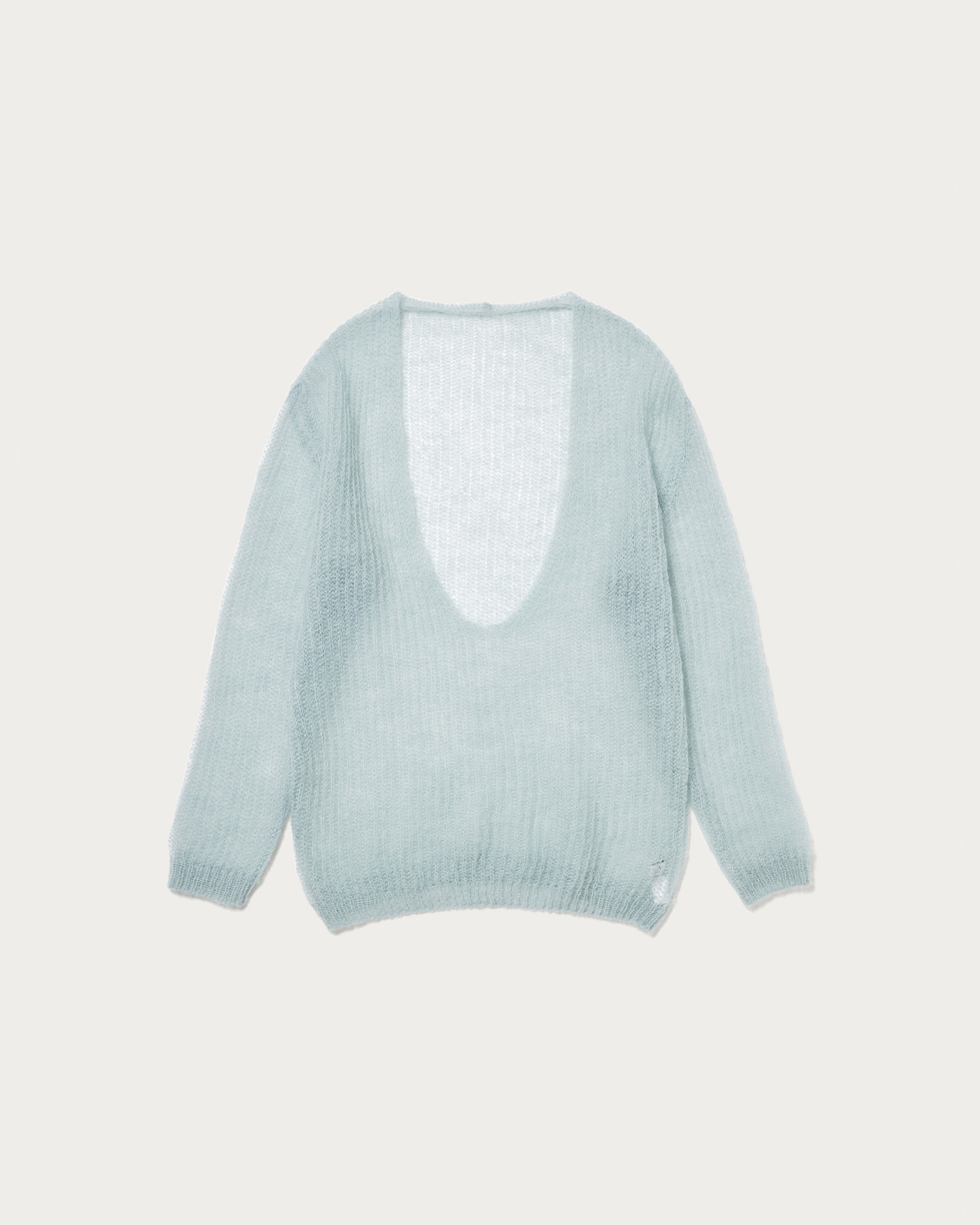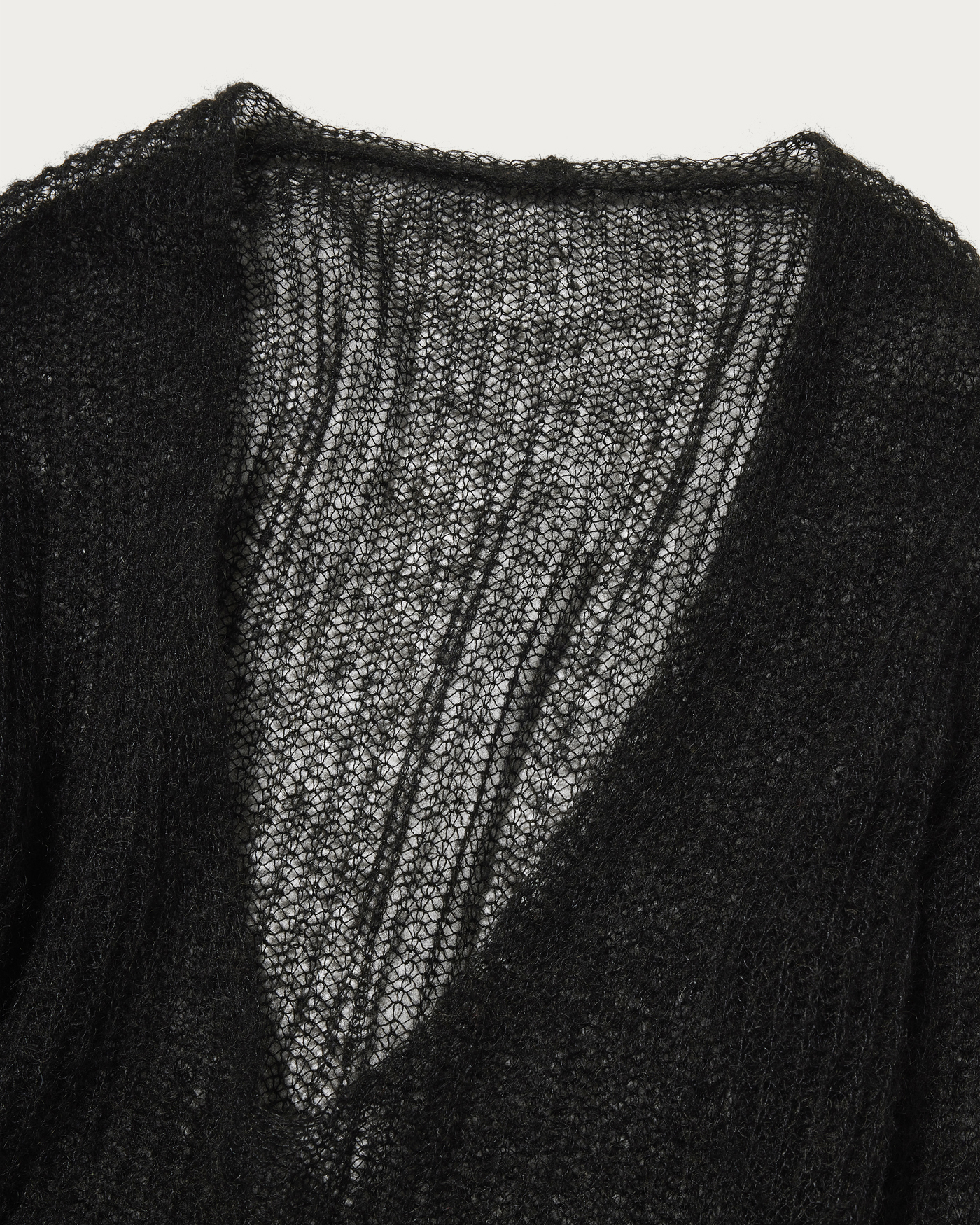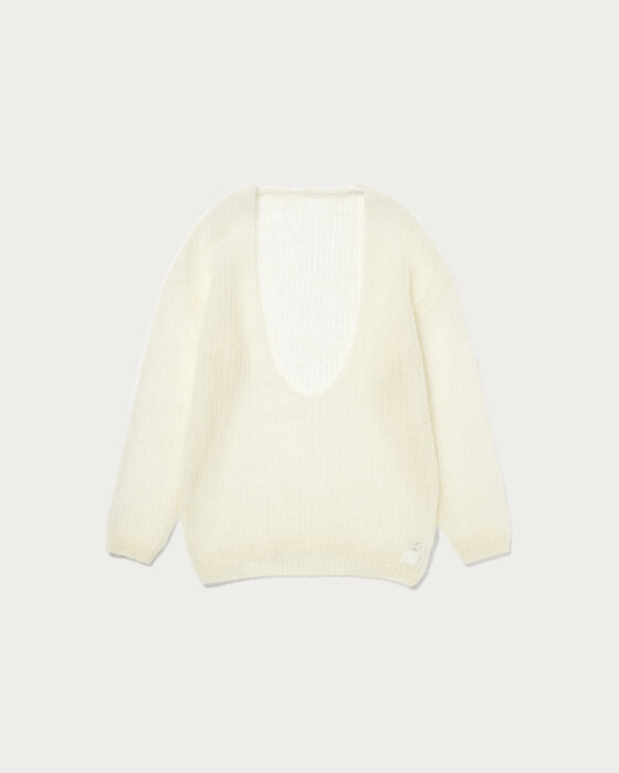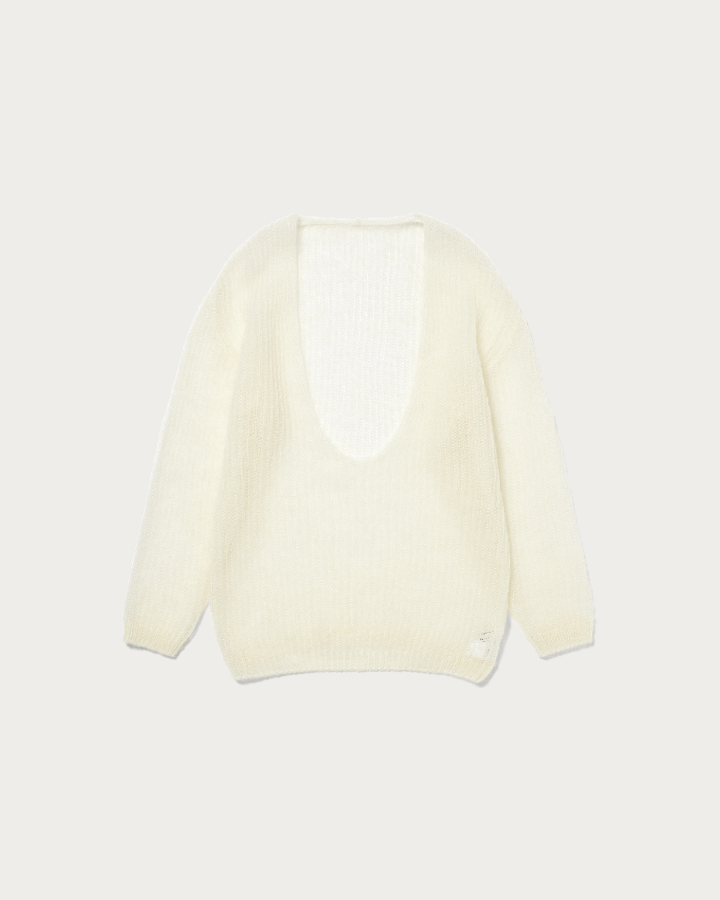 見た目の柔らかさが印象的な、モヘア混のシャギーニット。深めのVネックデザインでインナーとのレイヤードでコーディネートを華やかに仕上げてくれます。