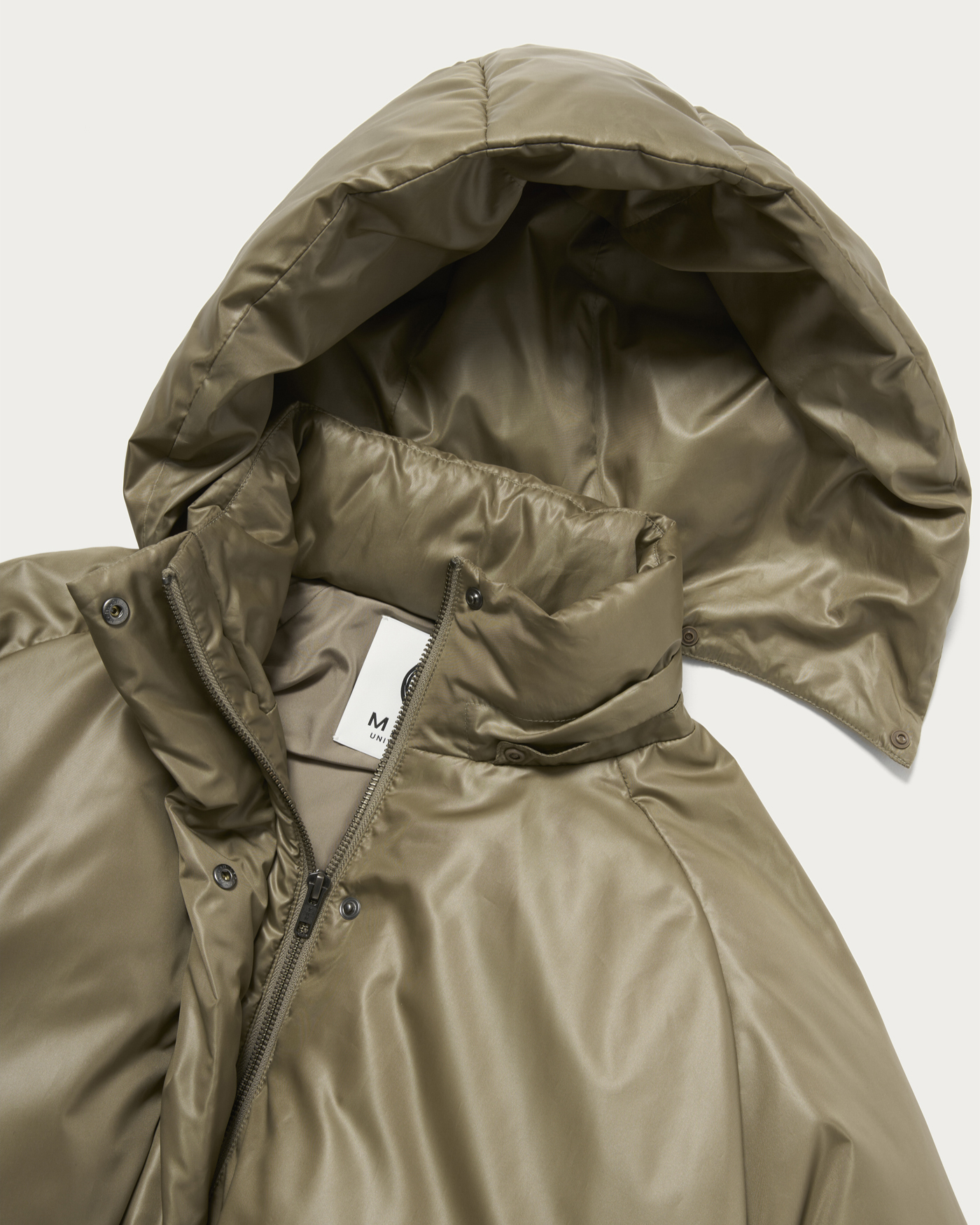 〈MARW UNITED ARROWS〉定番のコクーンダウン。丸みのあるフォルムと程よい光沢感がポイント。フード取り外し可能な2WAYデザインにブラッシュアップし、スタイリングの幅が広がりました。腰回りが隠れる着丈と袖口のリブ仕様で、防寒対策にも配慮しています。