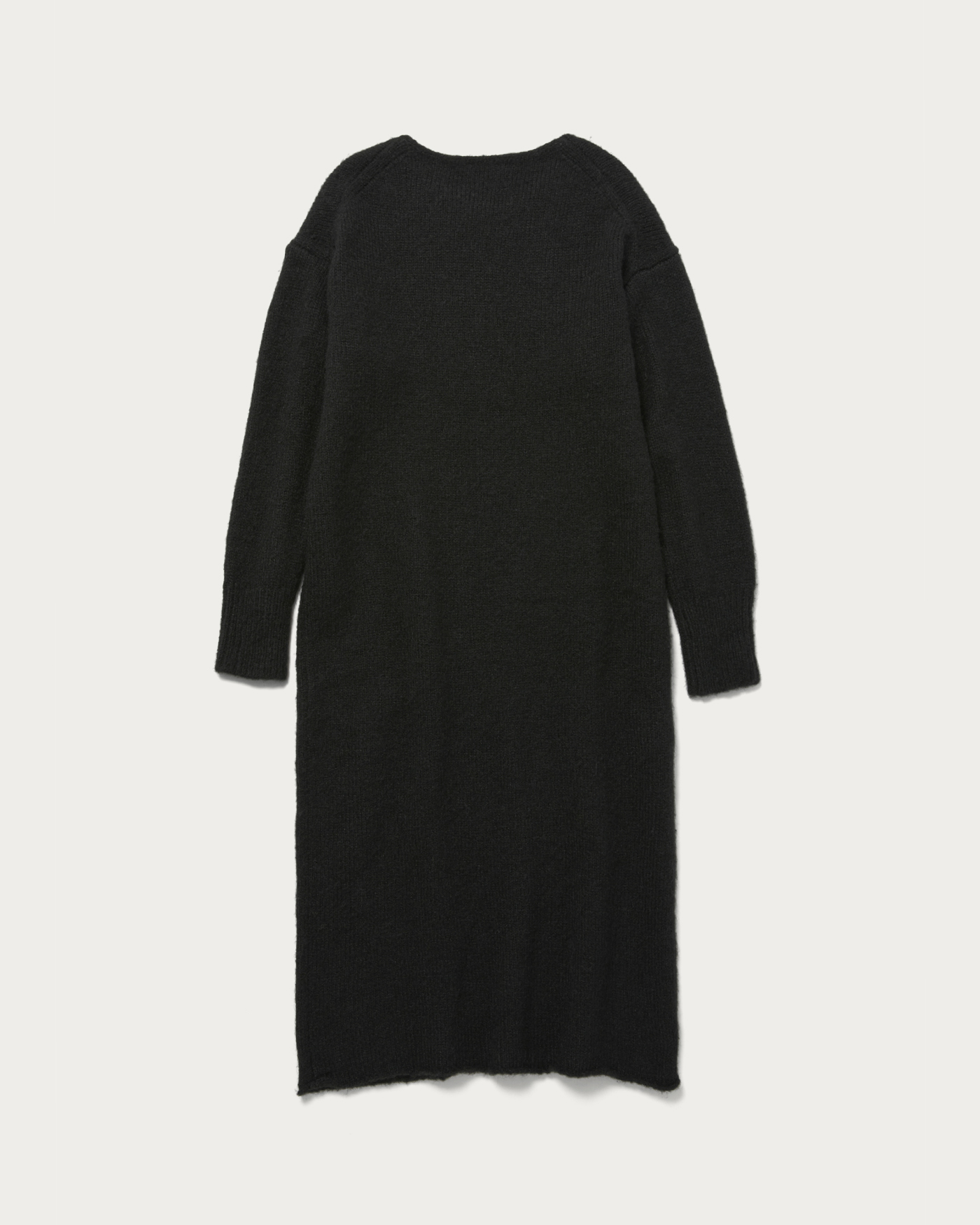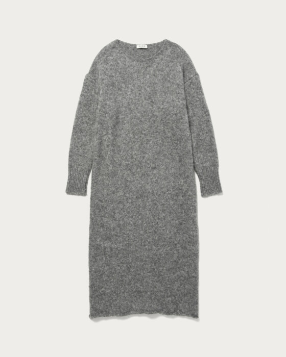 アルパカ混の糸で編み上げた、やわらかな風合いが魅力のニットワンピース。ネックと裾に施したロール仕様が、シンプルな中にさりげないニュアンスを添えます。ゆったりとしたシルエットで、気負わずに品よく着られる一枚です。