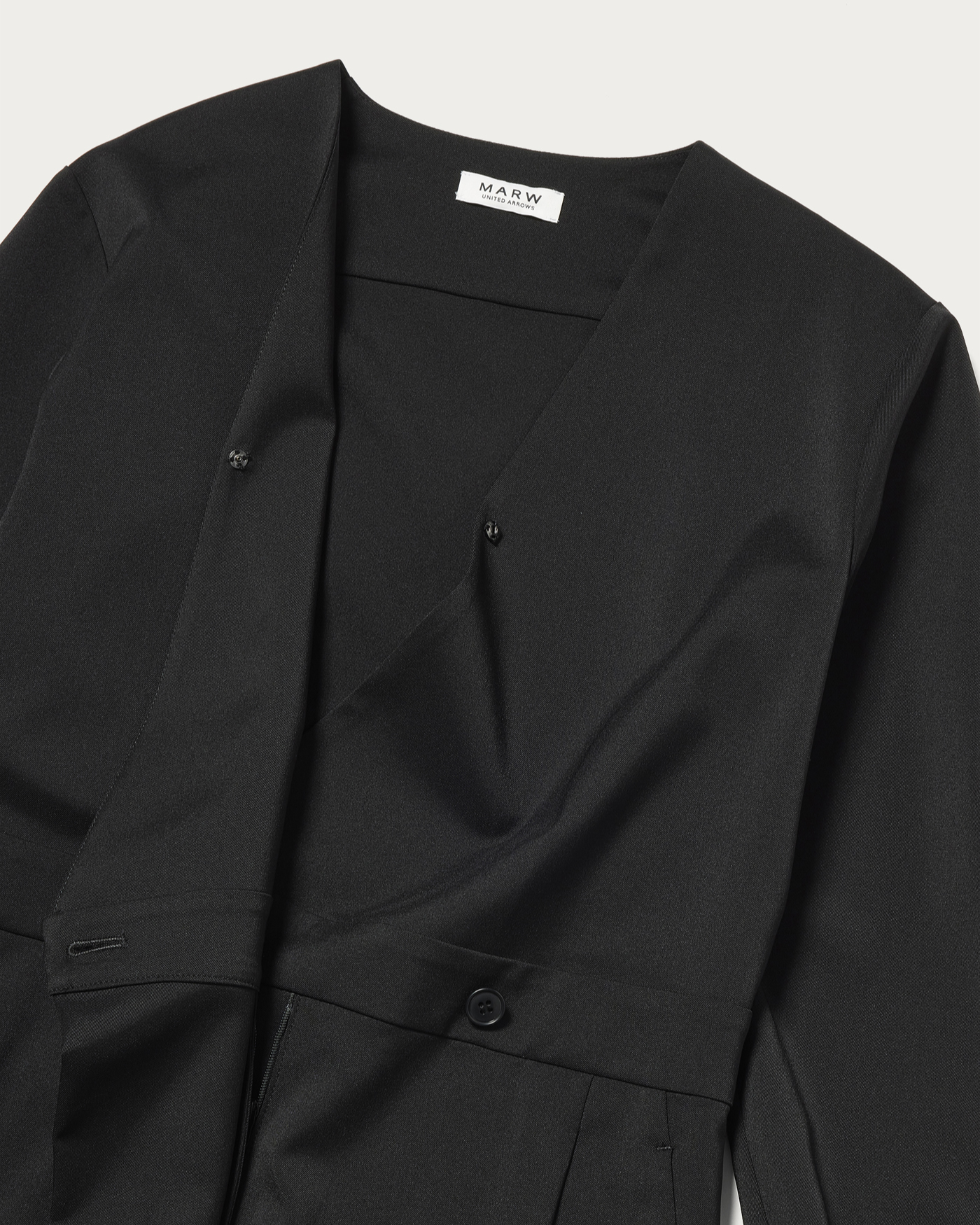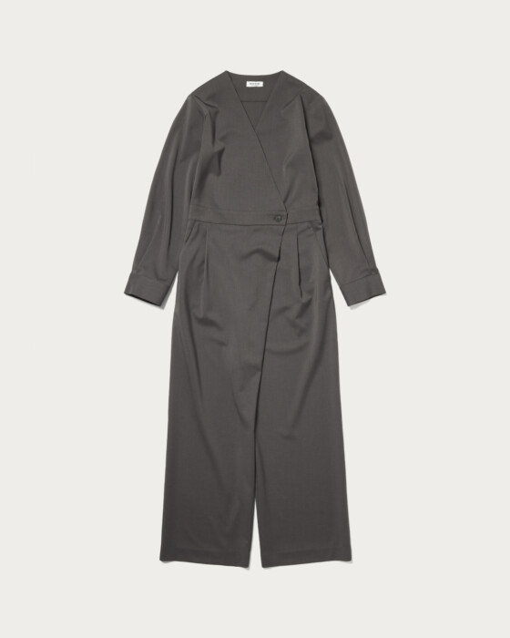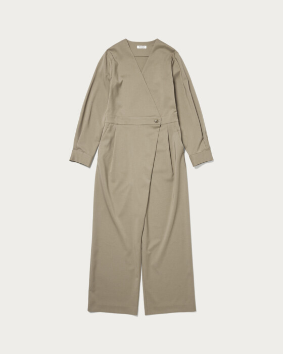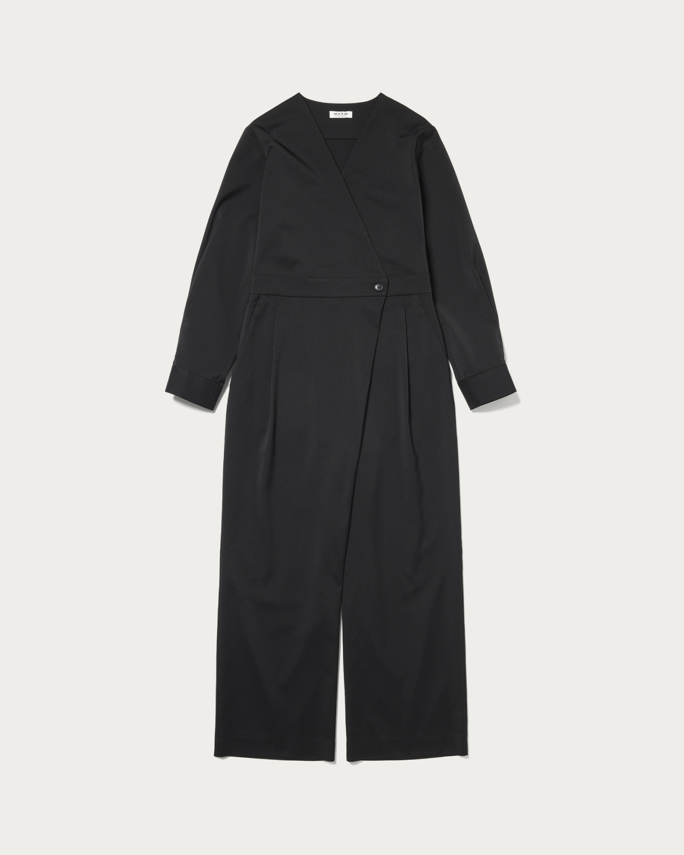日常にも特別な日にも寄り添う、洗練オールインワン。深めのVネックとアシンメトリーな切り替えが、洗練された印象を与えるデザイン。ドレープが美しく、動きにニュアンスを添える素材感が魅力。アクセサリーやバッグでアクセントを加えれば、着こなしの幅が広がります。