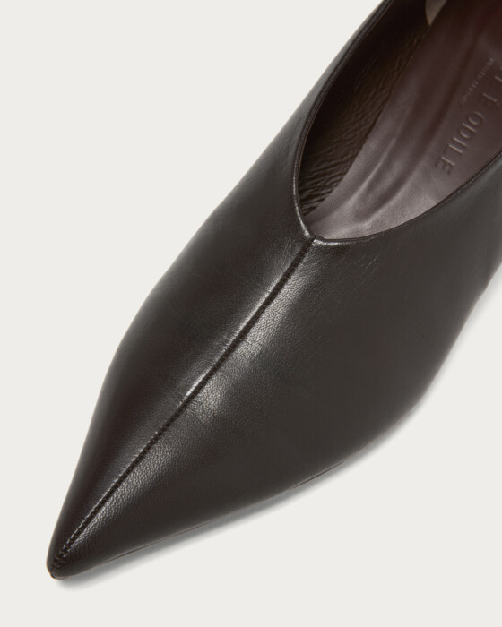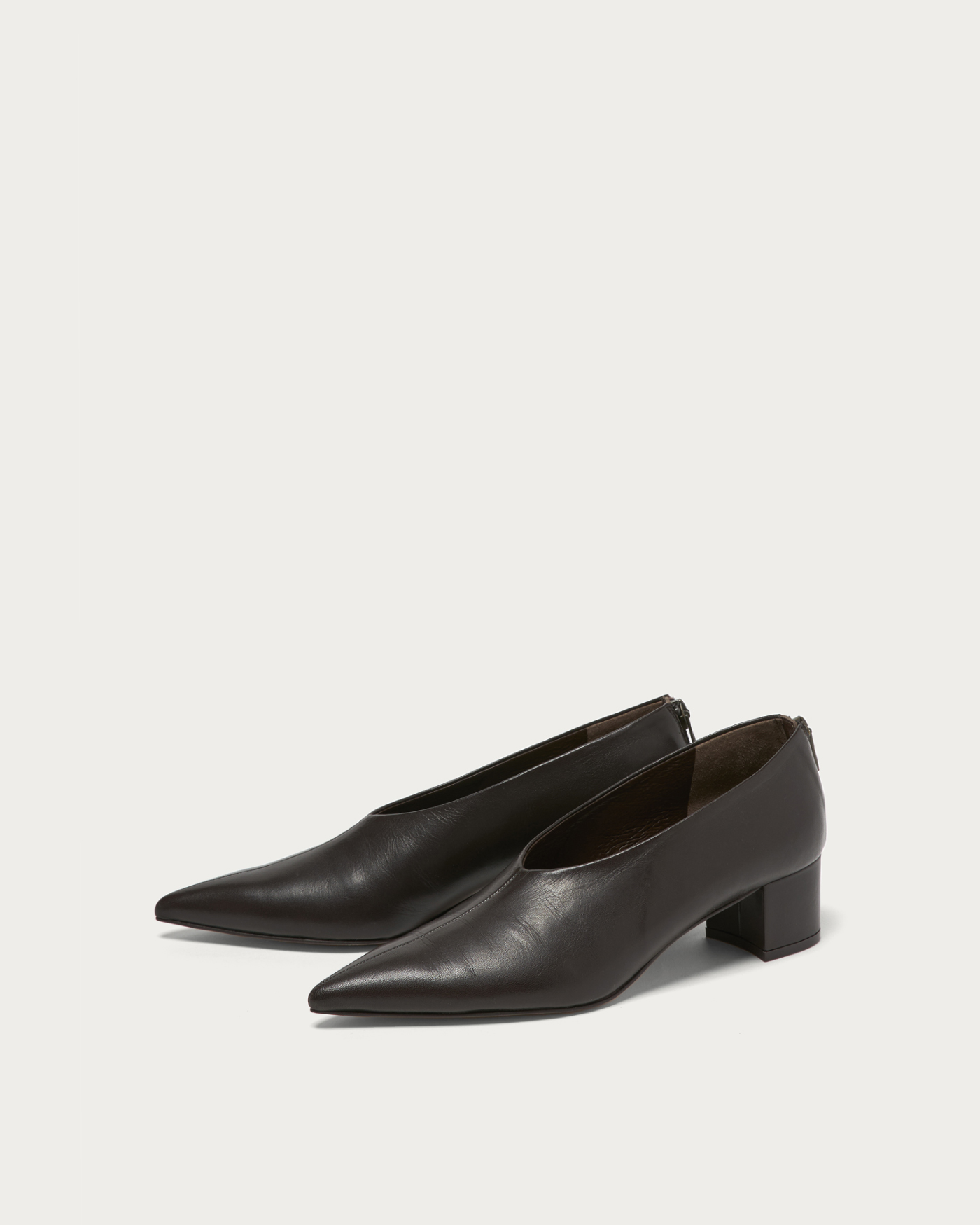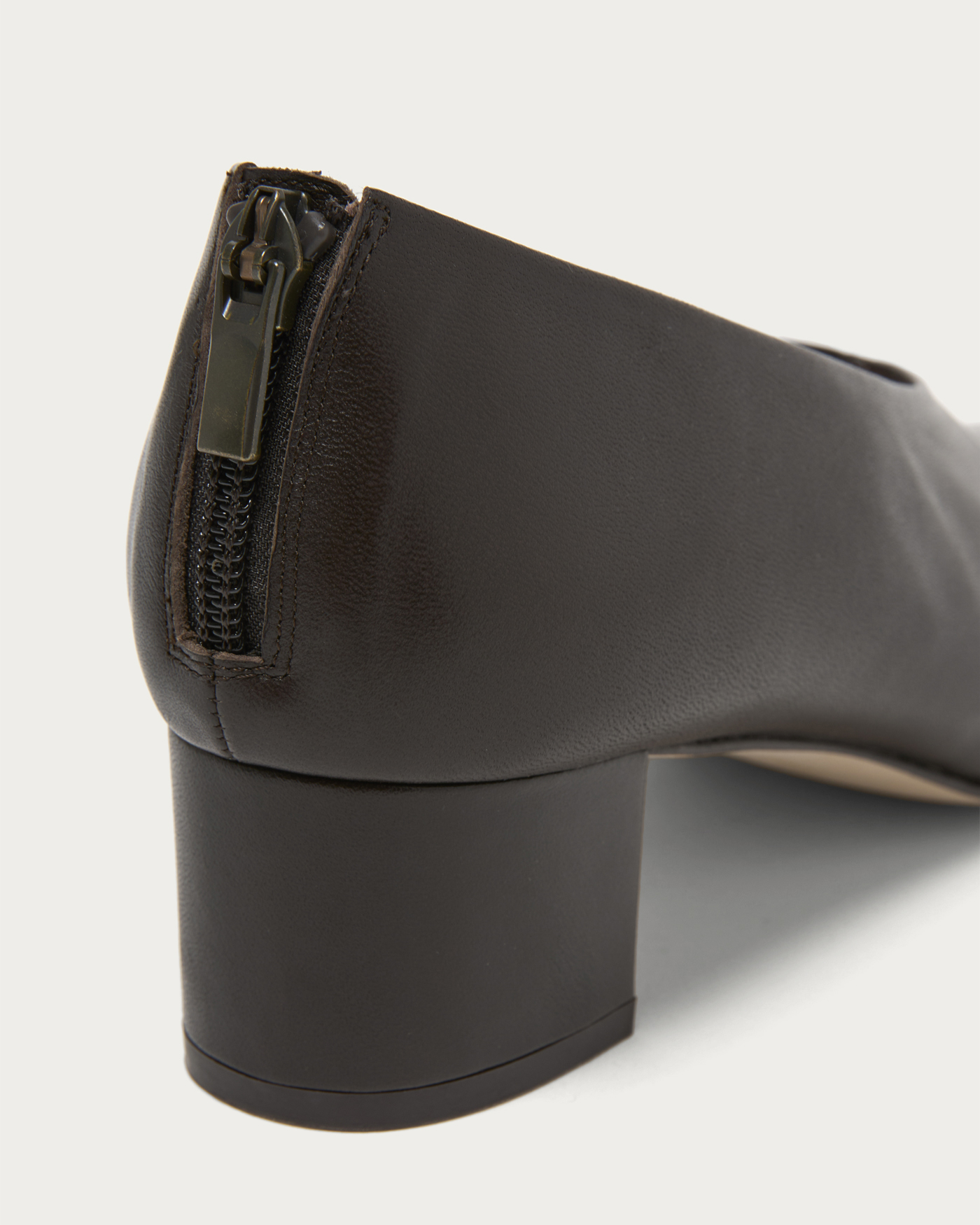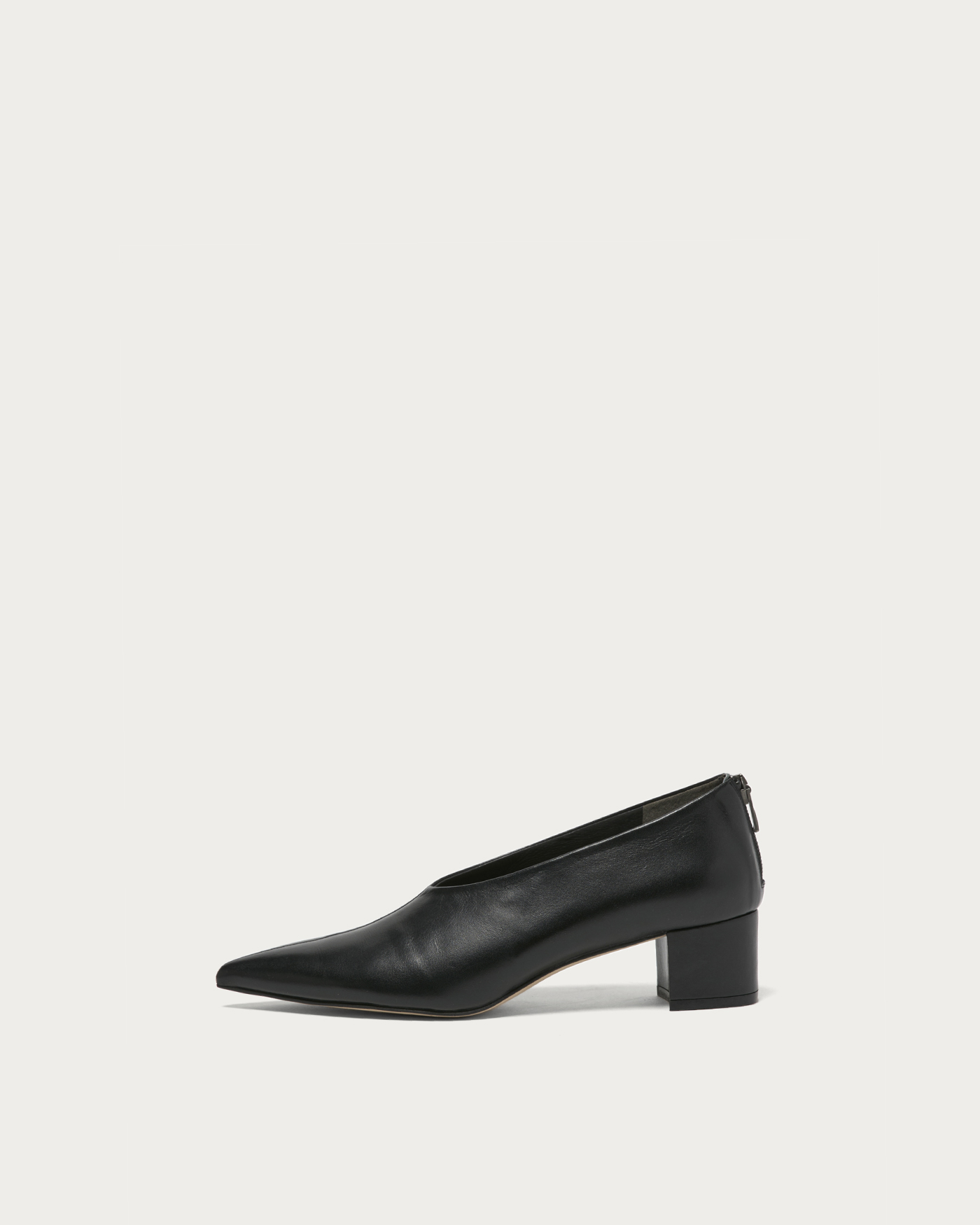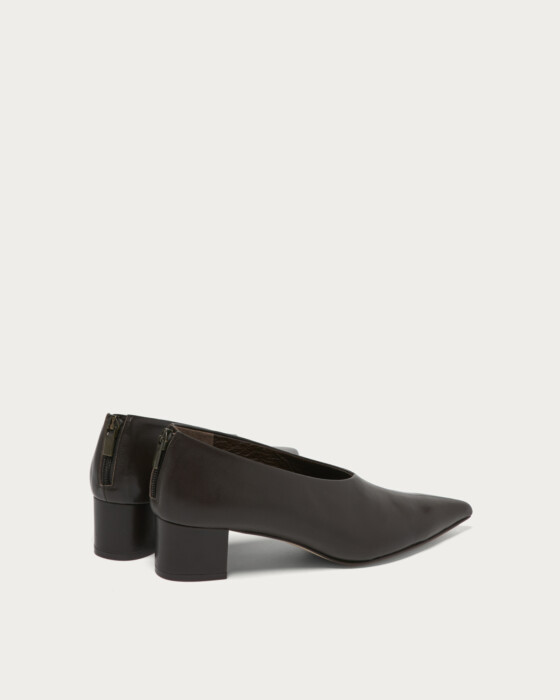 深めの甲が足を包み込むブーティータイプ。ノーズを長めにとったポインテッド木型が足のラインを美しく見せ、後ろは着脱しやすいバックファスナー仕様に。スライダーは下がり防止のロック付きで安心感もプラス。ワイドパンツのボリューム感とも好バランスで、モードな冬スタイルを引き締めてくれます。