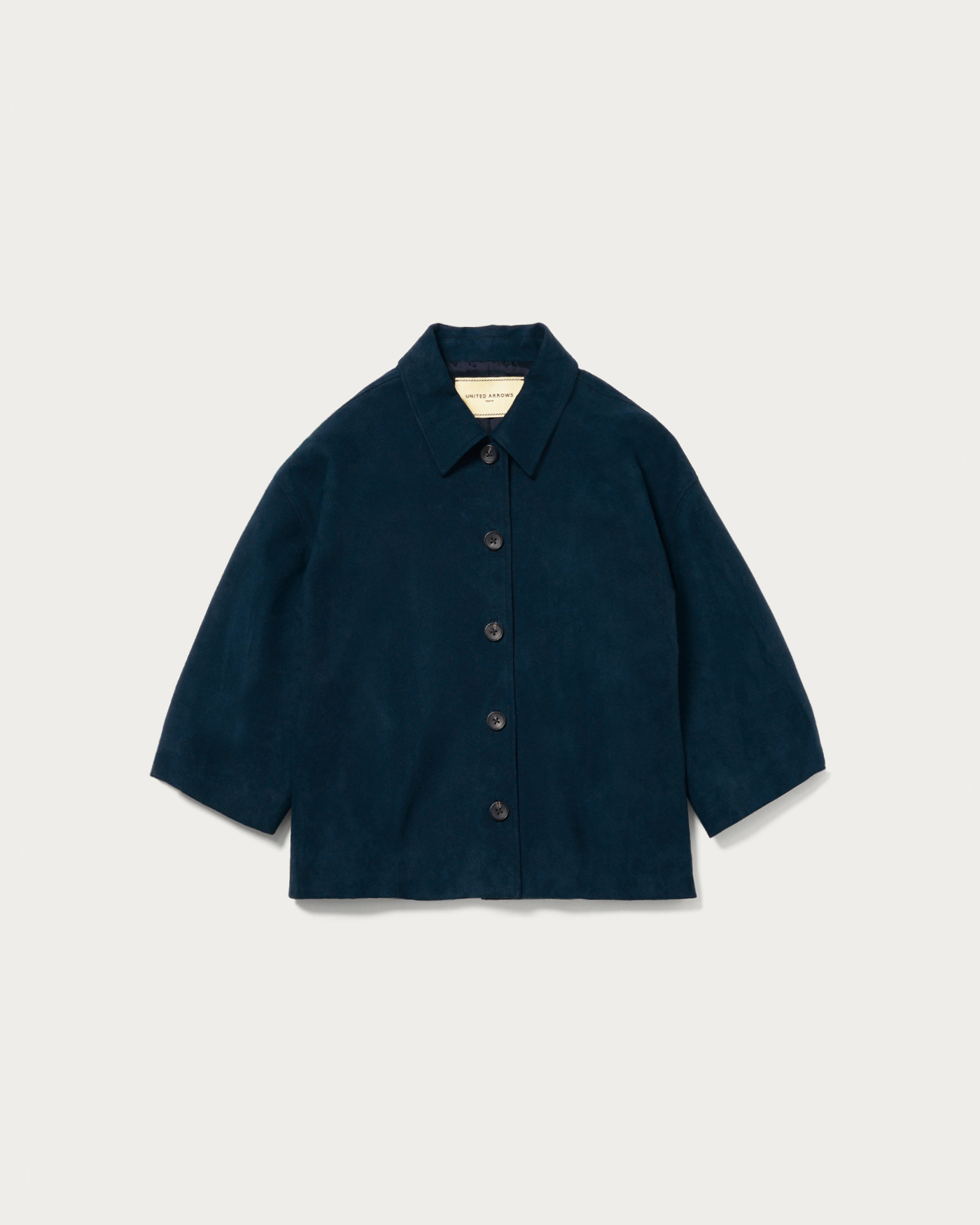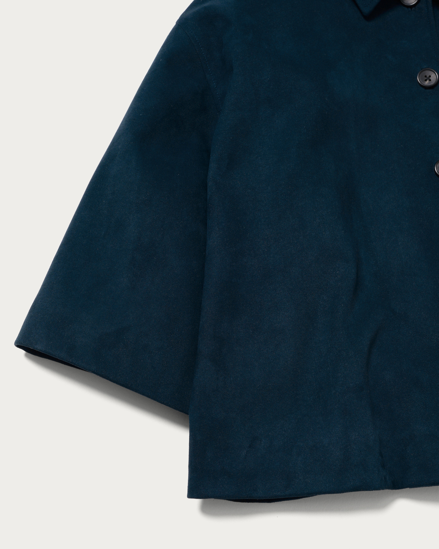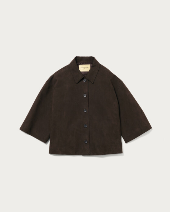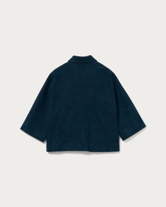 袖口の立体感と素材使いがポイントのシャツジャケット。袖丈は少しゆとりを持たせ半端丈にすることで秋冬シーズンのレイヤードスタイルを楽しめるシャツ羽織。ソフトなタッチとリアルに近い高級感ある毛並みが特徴のレザーライクな素材が上質感を感じる一着です。