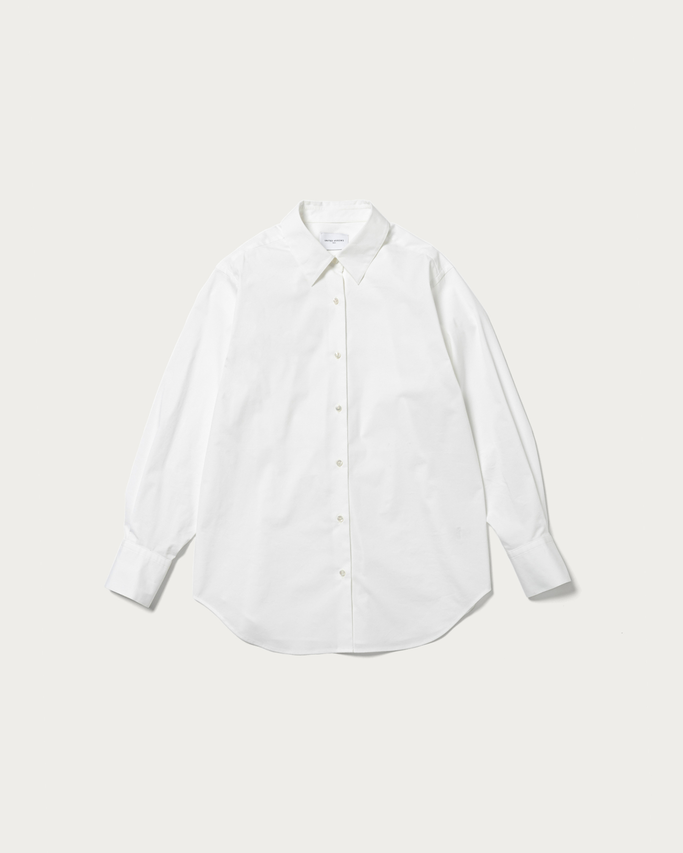 程よくゆとりのあるサイジングのレギュラーカラーシャツ。シーズン問わず通年着用でき、1枚着にも、レイヤードのインナー、羽織にも使いやすいサイズ感です。 上品な長めのカフスもポイントです。一枚でコーディネートの幅が広がり、飽きの来ないシンプルなディテールで長く着用いただけます。