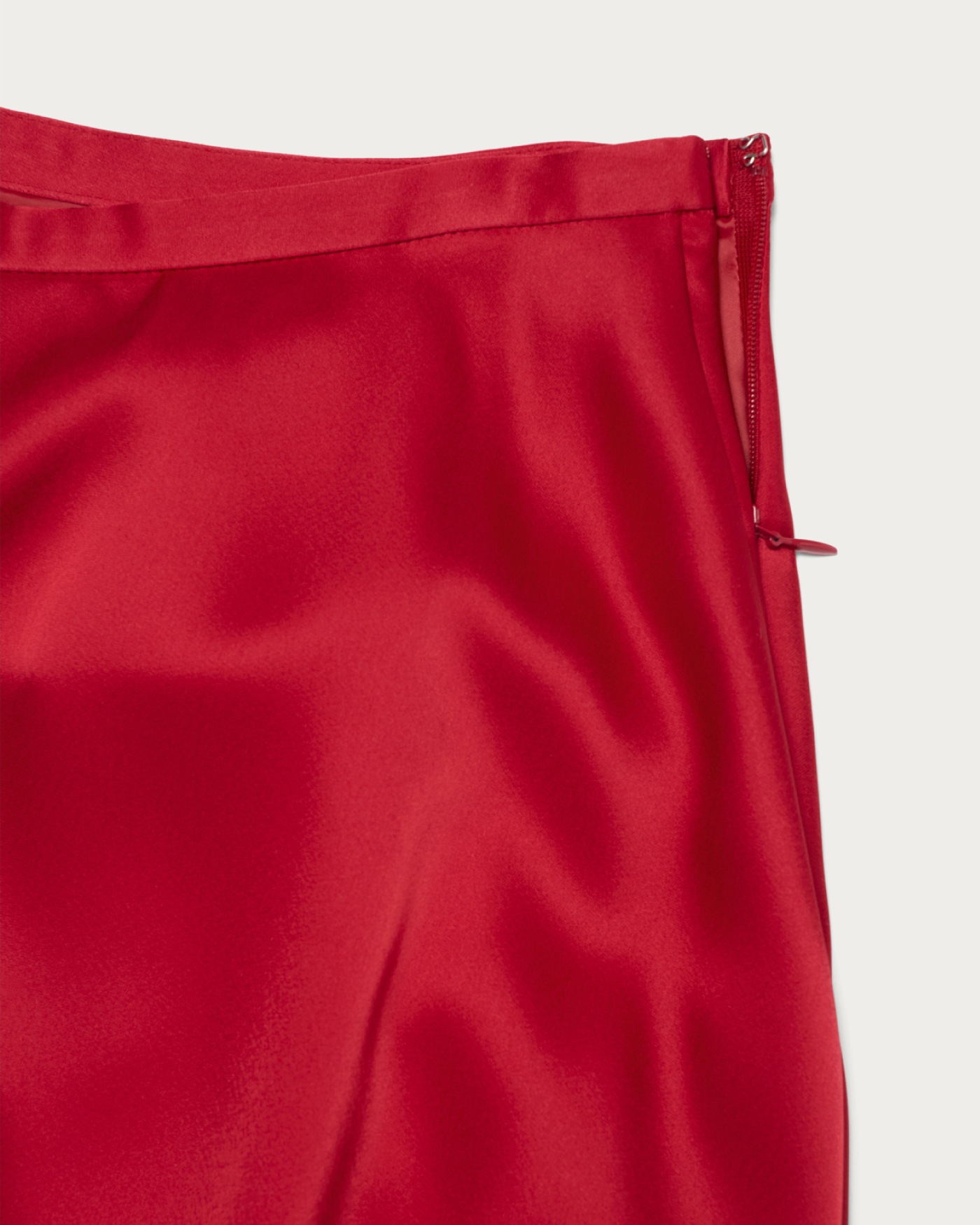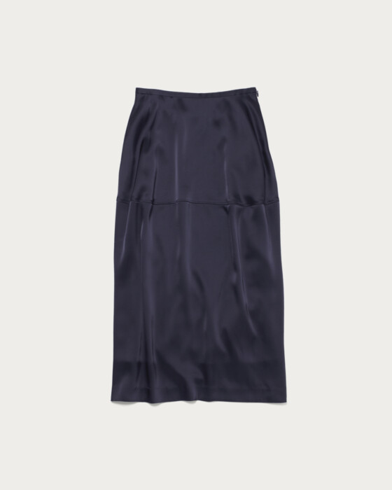 光沢のある素材がコーディネートのアクセントになるサテンスカート。切り替え部分がややコクーンシルエットでトレンド感ある一着に。ポケットや裏地付きで、気にせずに履けるのも嬉しいポイント。毛足のあるニットや肉厚トップスと掛け合わせて、風合いの異なるの素材を組み合わせたコーディネートがおすすめです。