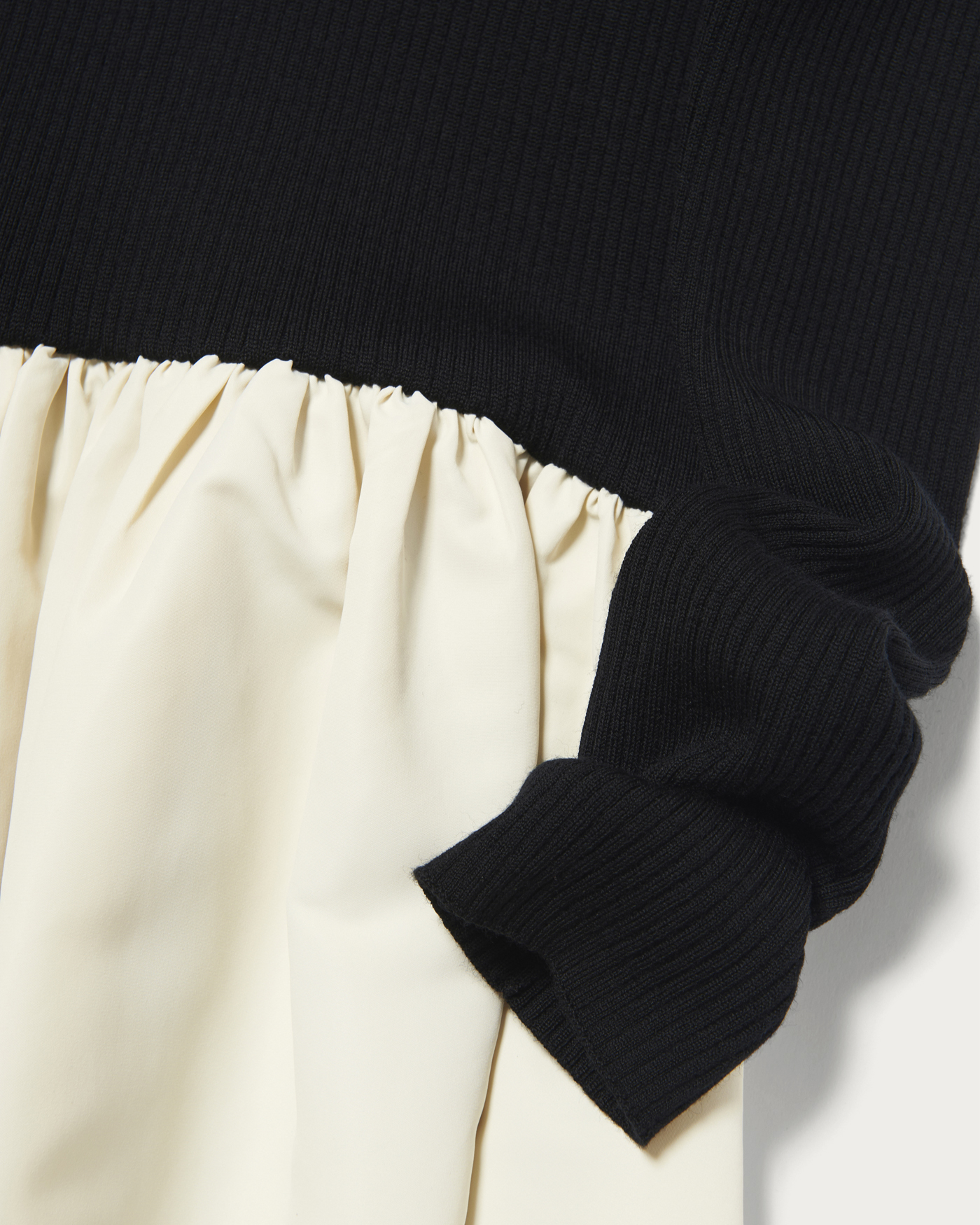 毎シーズン定番となっているフィット&フレアシルエットのワンピースを今シーズンの気分にピッタリな襟付きのデザインにアップデート。トップス部分は体に馴染むリブ素材を使用。スカートには、程よくシルエットが出るよう、張り感のあるタフタ素材を使用しました。一枚でコーディネートが完成するワンピースは、小物やアクセサリーで雰囲気を変えて楽しむのがおすすめです。