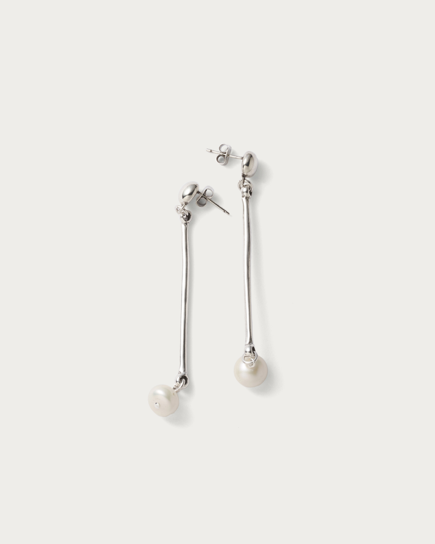 品質にこだわり、レベルの高いデザインをコンセプトに、ファッショナブルなアクセサリーを制作するフランスのアクセサリーブランド〈PHILIPPE AUDIBERT(フィリップ オーディベール)〉。バー状のパーツとフェイクパールがシャープな印象のピアス。スタイリングのアクセントになる存在感のあるデザインです。