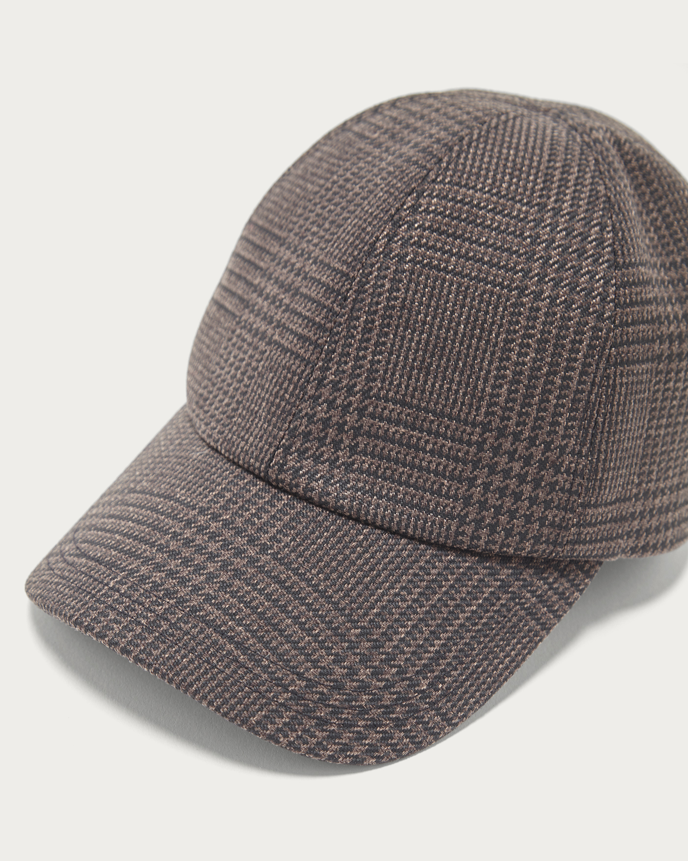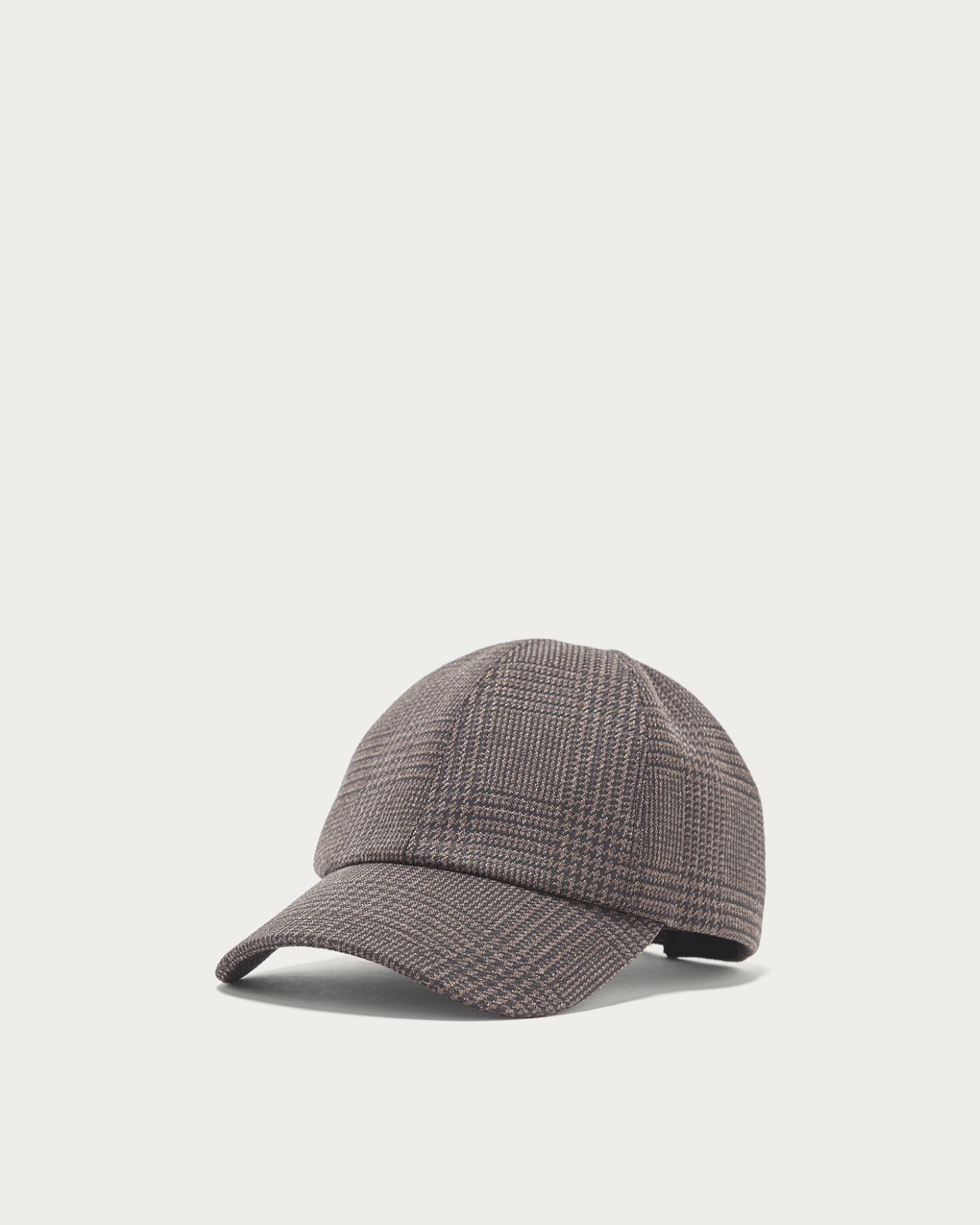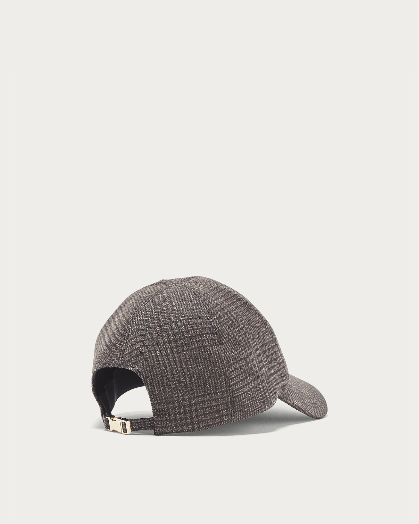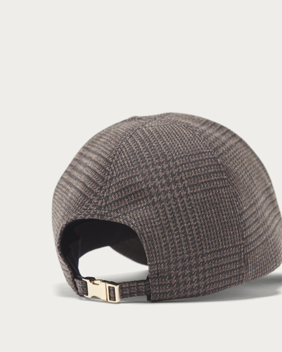 美しいパターンを活かしたシンプルなフォルムのチェック柄のキャップ。控えめで落ち着いた雰囲気が魅力のグレンチェックがコーディネートのアクセントになる一点。やや深めの被り心地で、アジャスターベルトのゴールドバックルがさりげないバックスタイルのポイントに。全体的にUVカット加工を施しています。