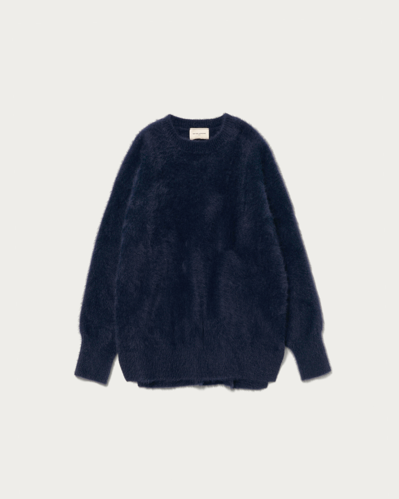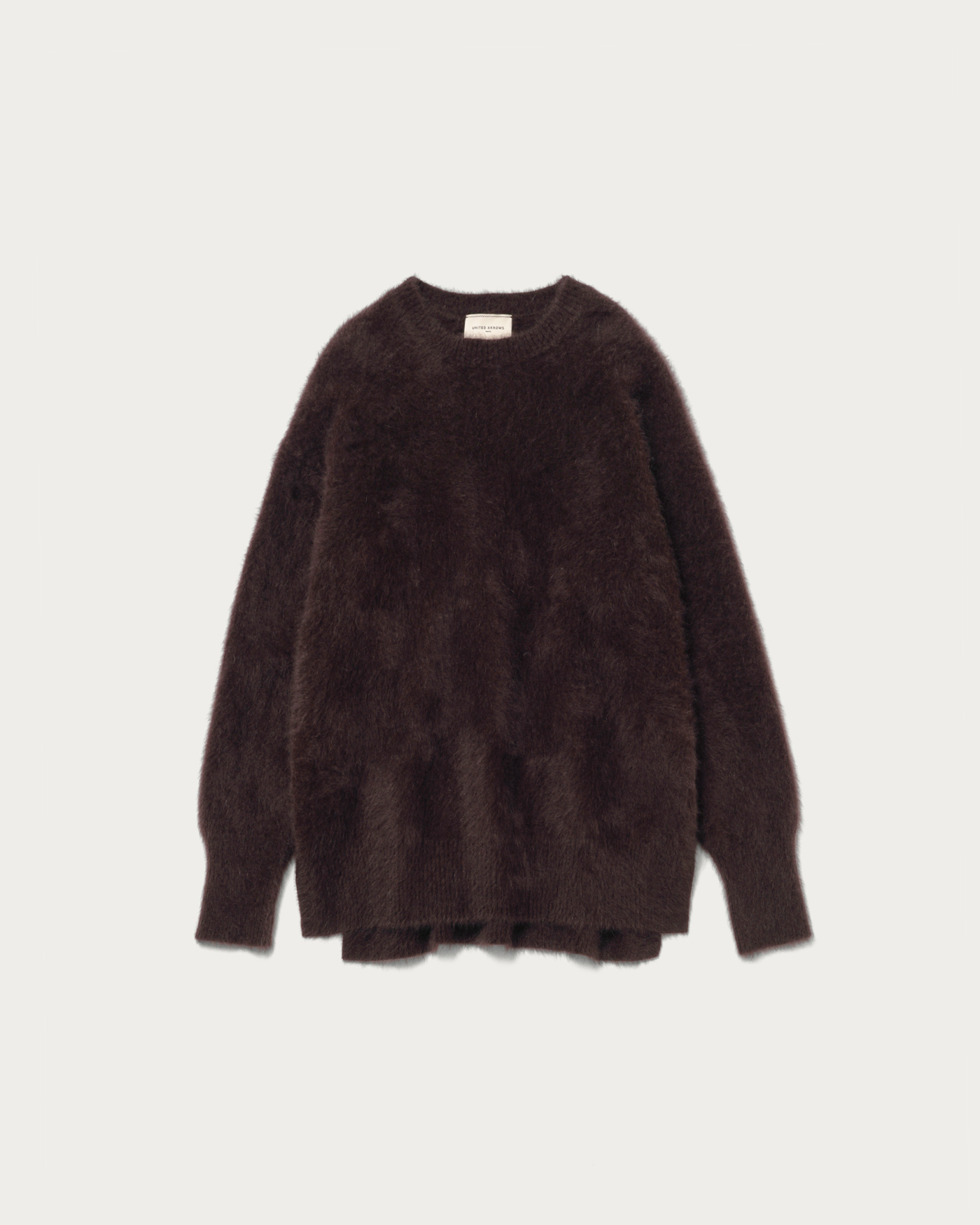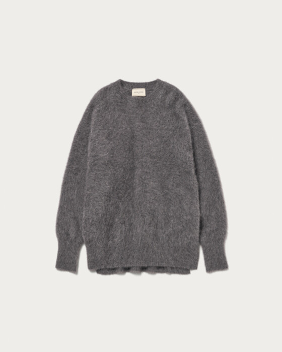 毎シーズンご好評いただいているフォックスカシミヤシリーズ。贅沢な毛足には艶と光沢のあるリッチ感が最大の特徴です。とにかく滑らかで肌触りがよく、そして軽くてあたたかい。ゆったりとしたサイズ感のボックスシルエットのクルーネックニット。前後差のあるヘムラインは気になる腰まわりをカバーし、重く見えない着こなしに。程よい抜け感がありながらも品のある佇まいで、デイリーに寄り添う一着です。