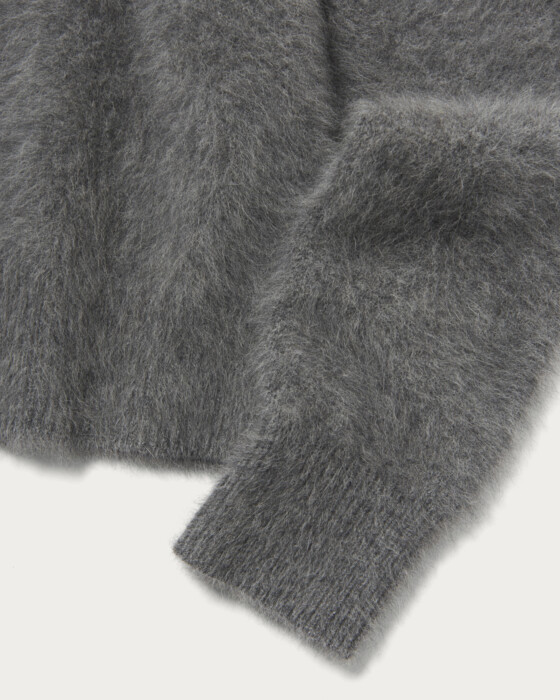 毎シーズンご好評いただいているフォックスカシミヤシリーズのポロ襟がついたカーディガン。贅沢な毛足には艶と光沢のあるリッチ感が最大の特徴です。とにかく滑らかで肌触りがよく、そして軽くてあたたかい。トレンドのポロ襟のデザインは今シーズンの新型です。程よい抜け感がありながらも品のある佇まいで、デイリーに寄り添う一着です。