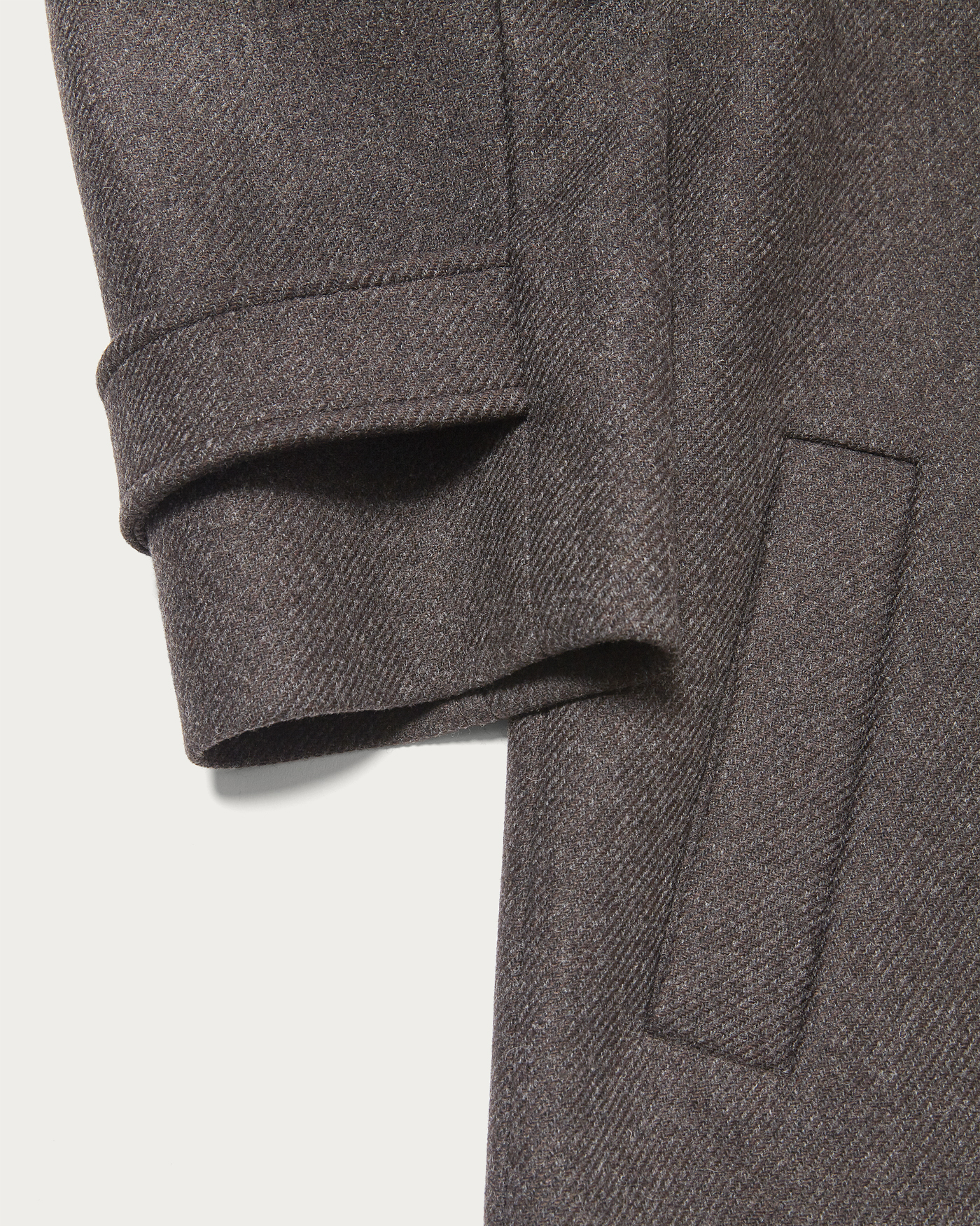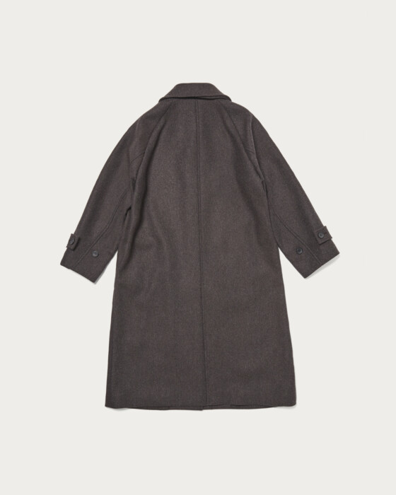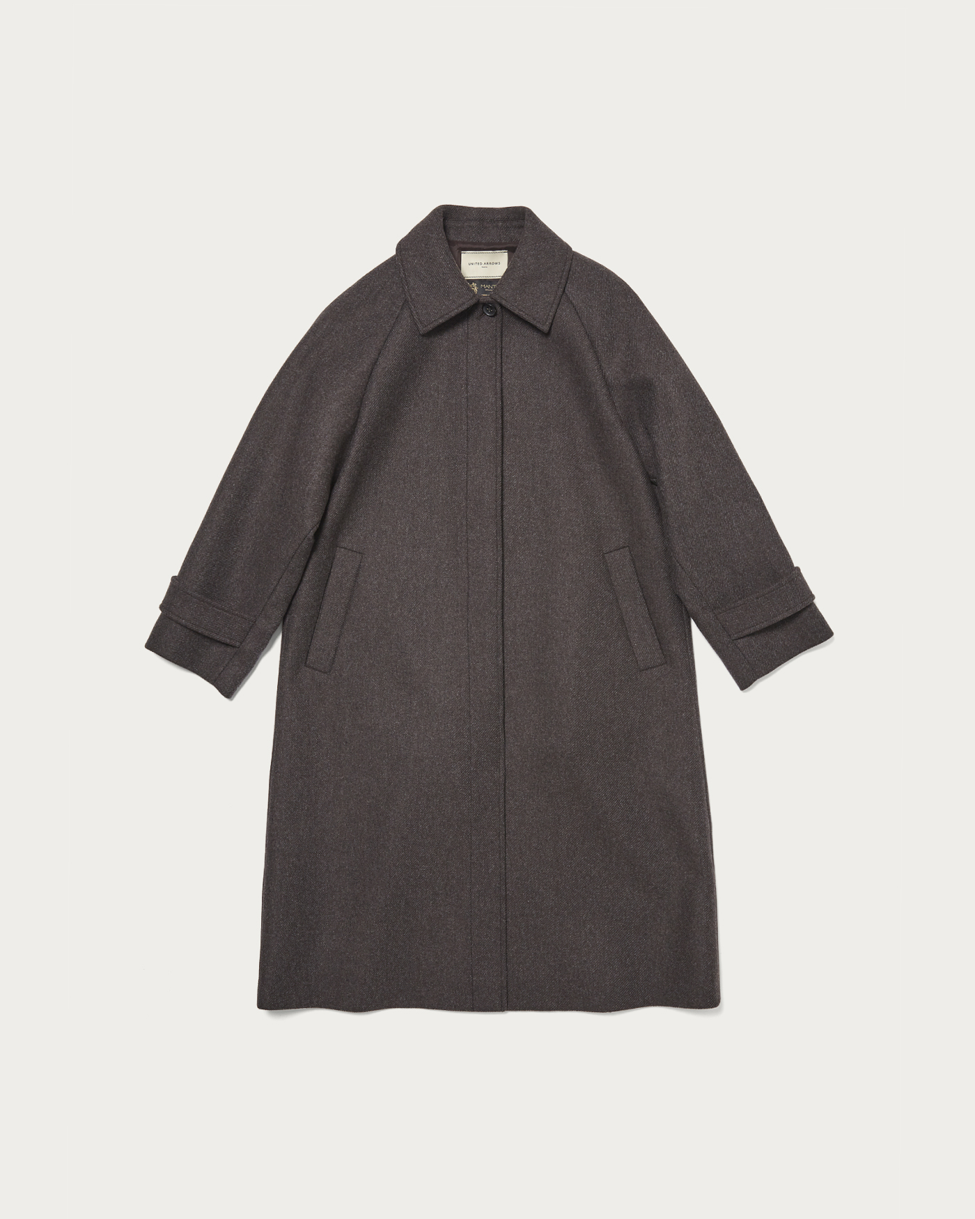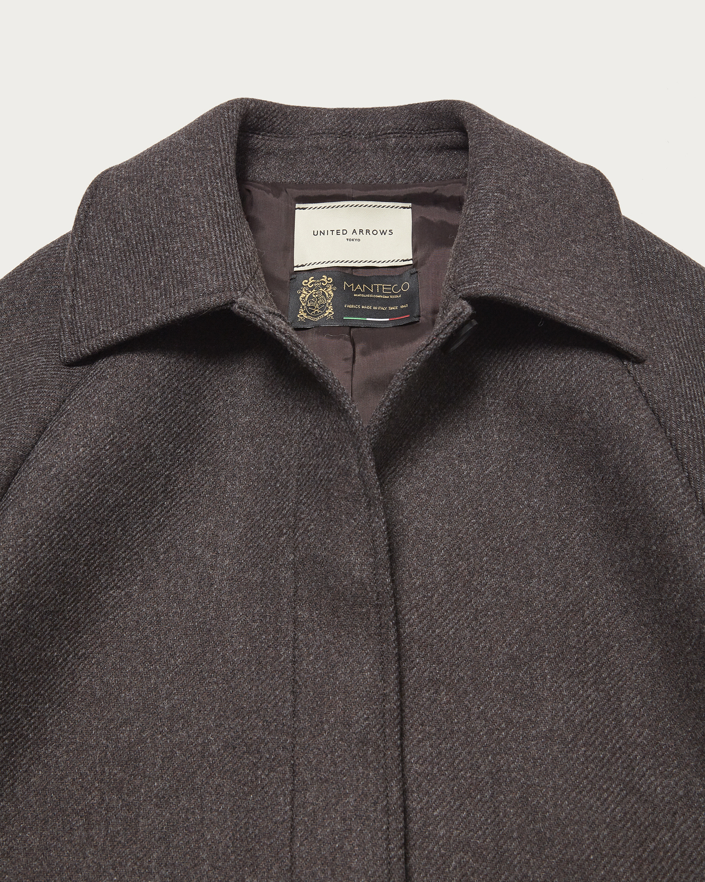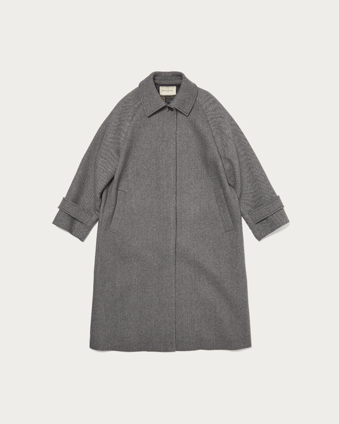 トレンドにとらわれないベーシックなステンカラーコート。メンズライクになり過ぎないよう首周りに若干ゆとりをもたせ、襟も大きめに設定し女性らしい印象をプラスしました。チンウォーマー付きで着こなしによって襟のアレンジができるデザイン。回収された古着や生地端などのリサイクル原料を使用し、オリジナル開発された素材を用いています。リサイクル原料ならではの他にないニュアンスのあるカラーが魅力的です。