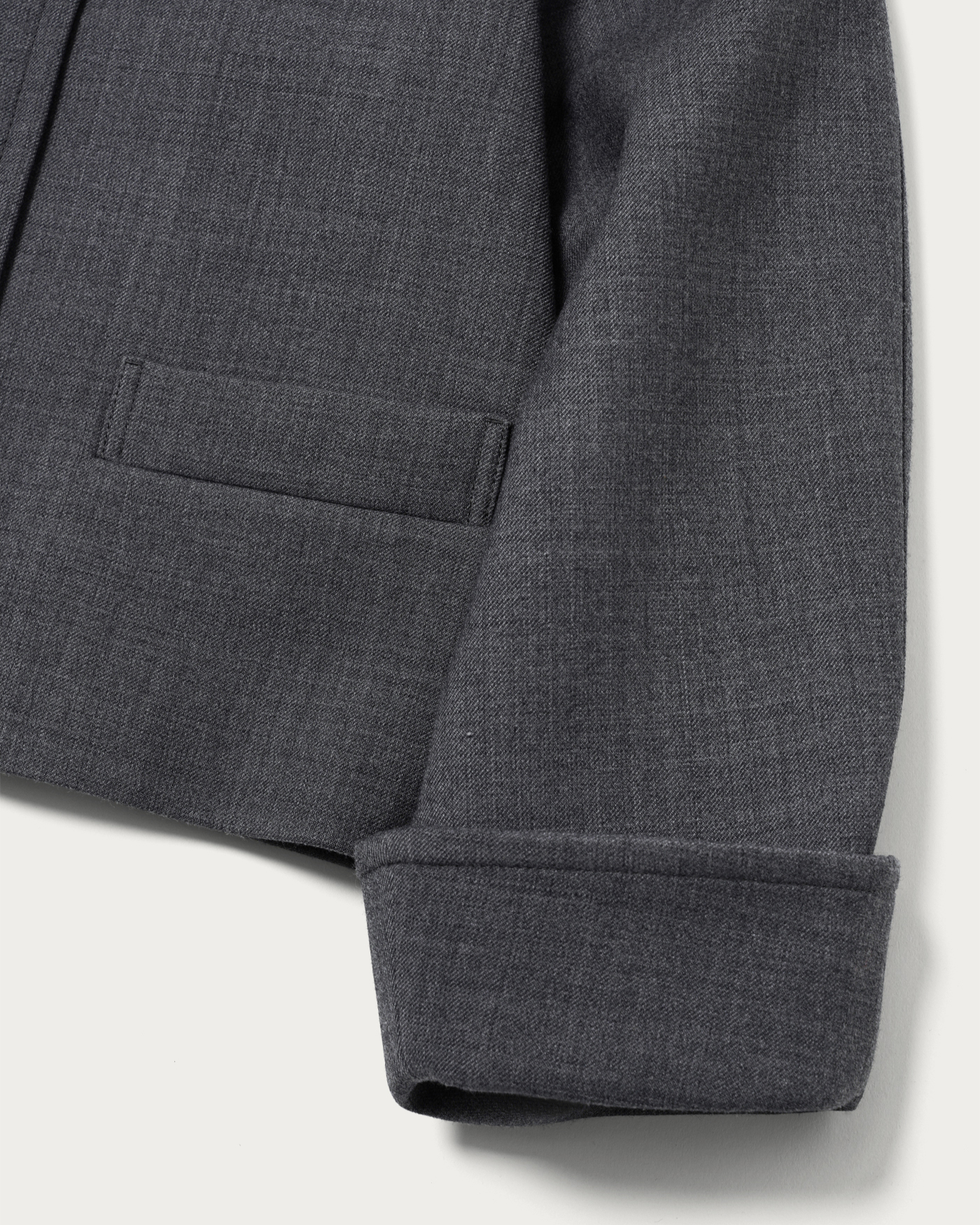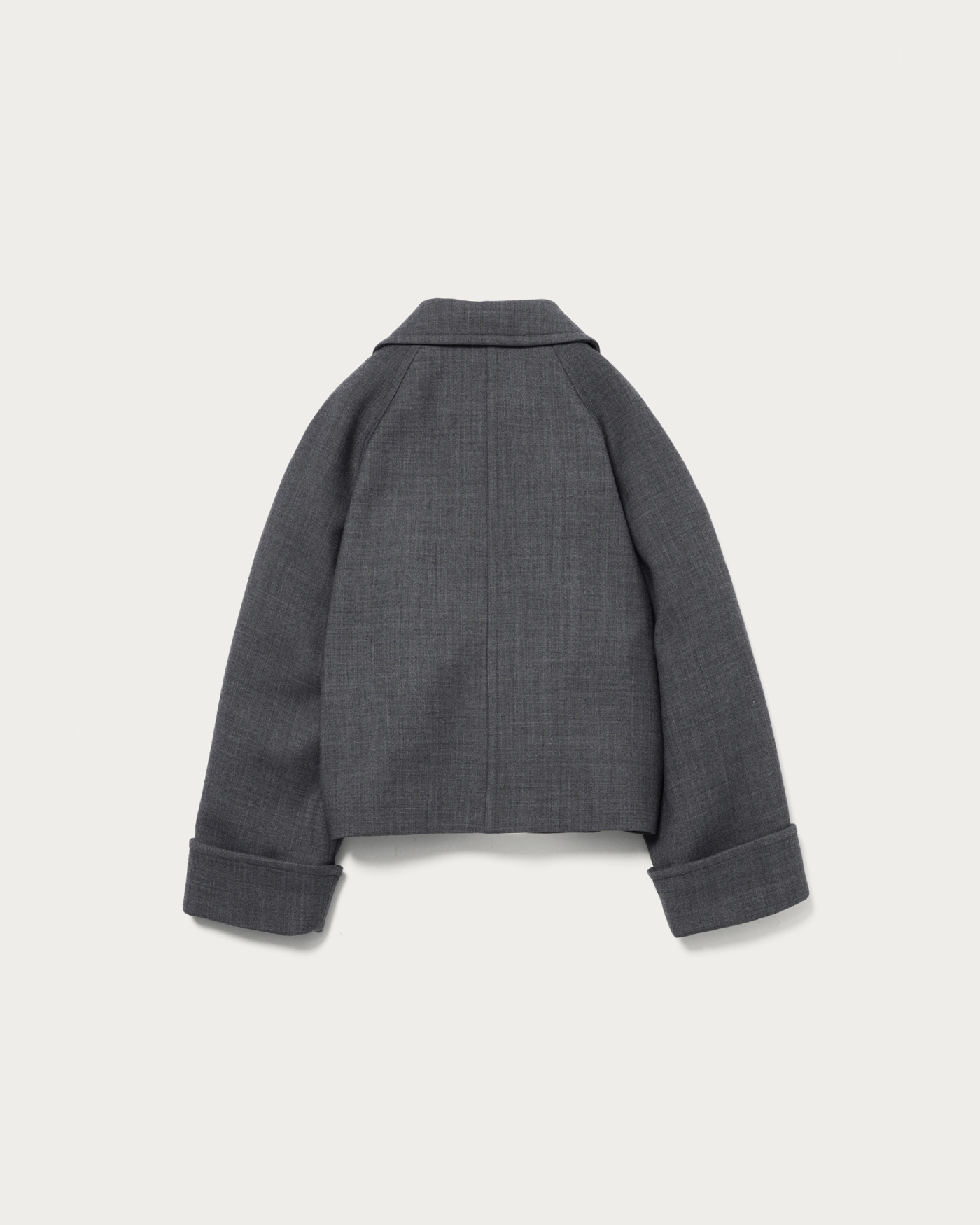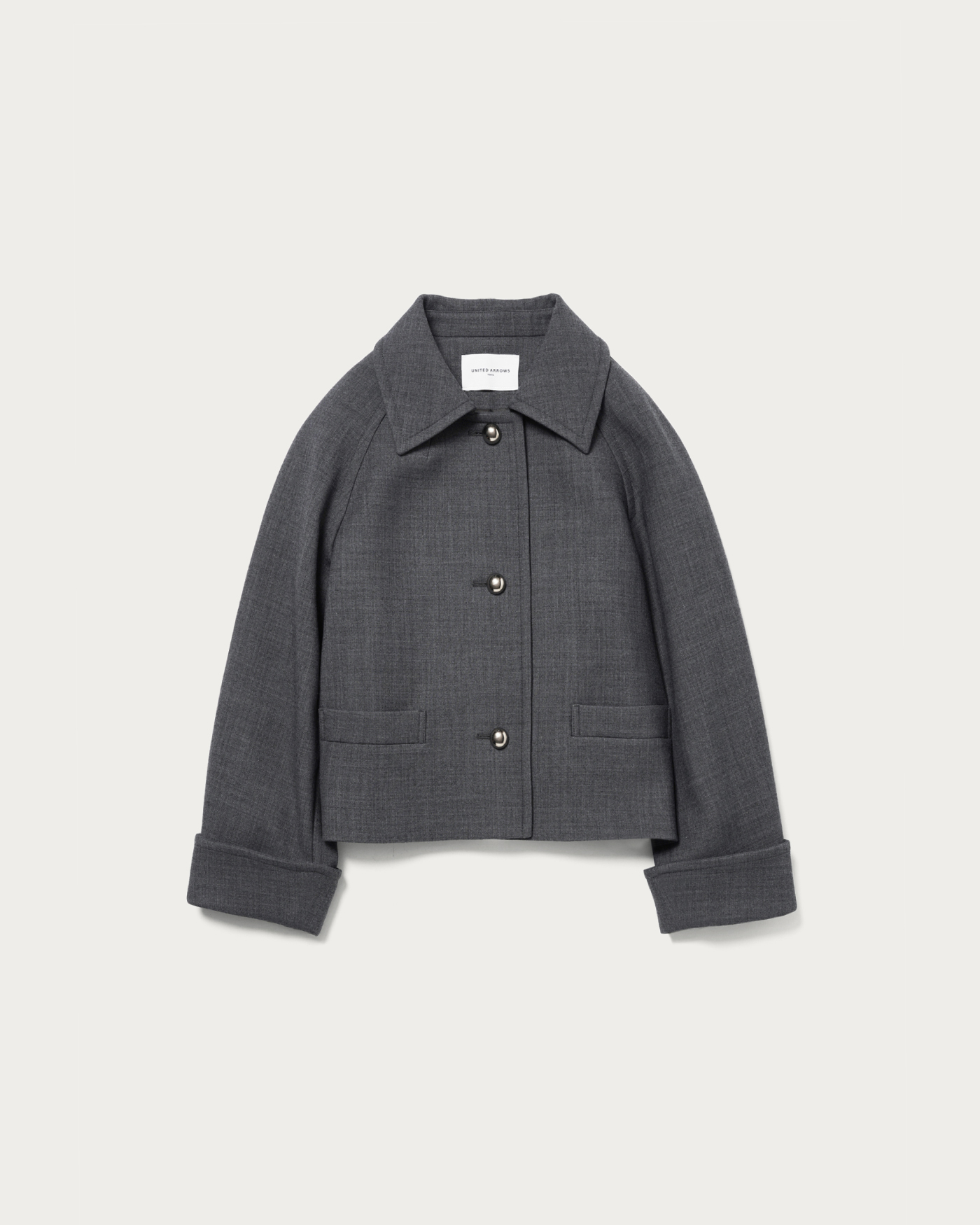 ステンカラーのショート丈がコーディネートを新鮮に彩るショートジャケット。オーバーサイズのフォルム×ショート丈が旬な佇まいに。存在感のある襟と立体的なメタルボタンがポイントです。あたたかみのある素材なので秋口から長いシーズン活躍する一着です。