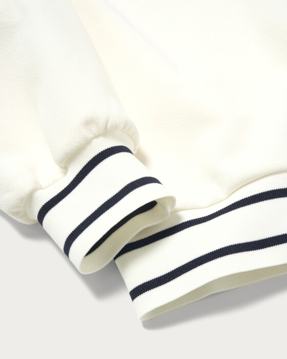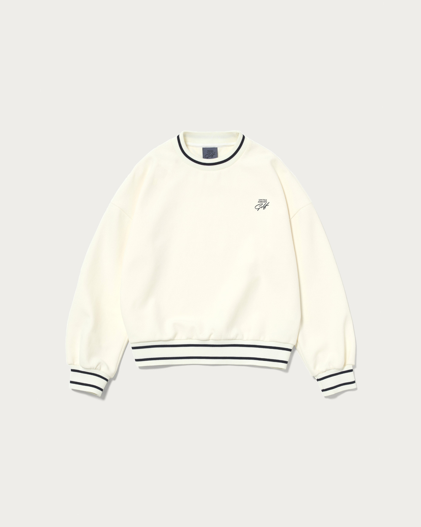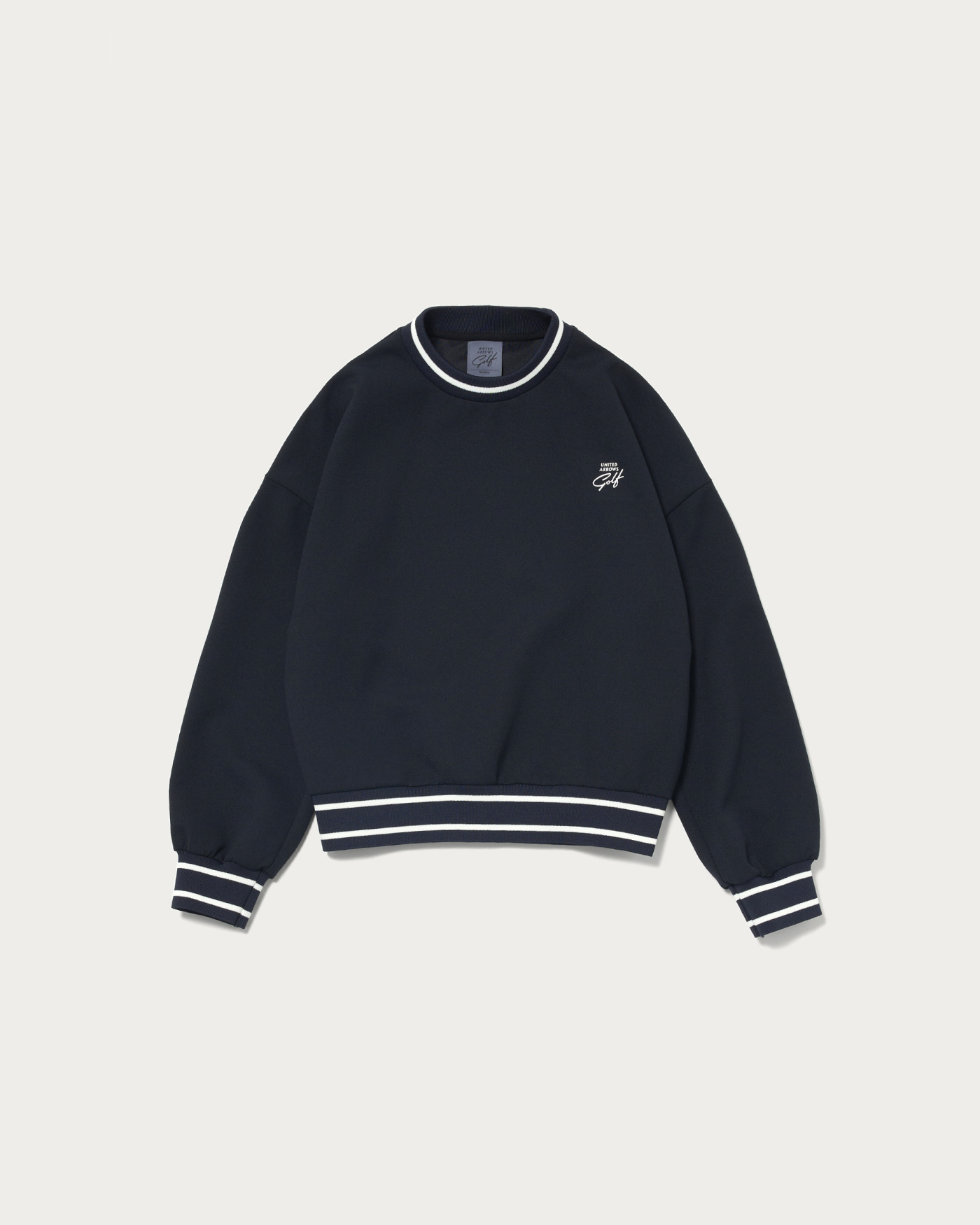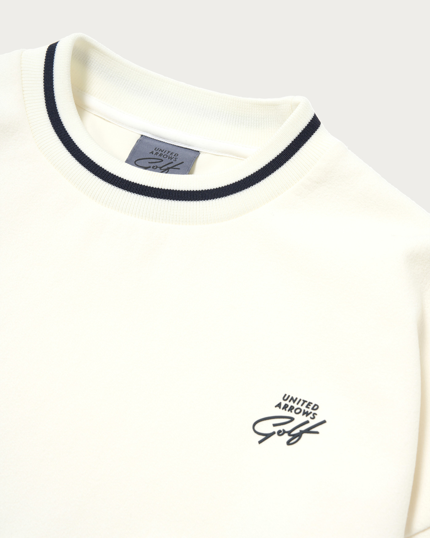 ショート丈のクルーネックプルオーバー。首、袖にラインを入れ、一枚での着用でも様になります。肉感も適度で秋口~冬まで着用可能なアイテムです。