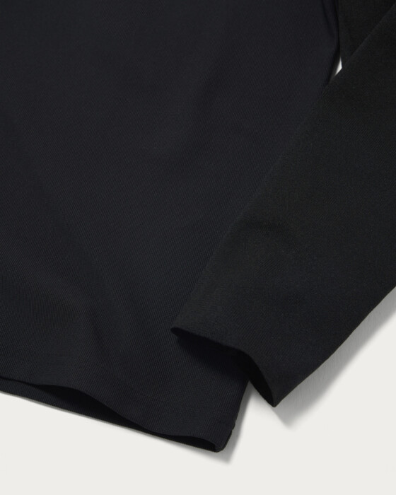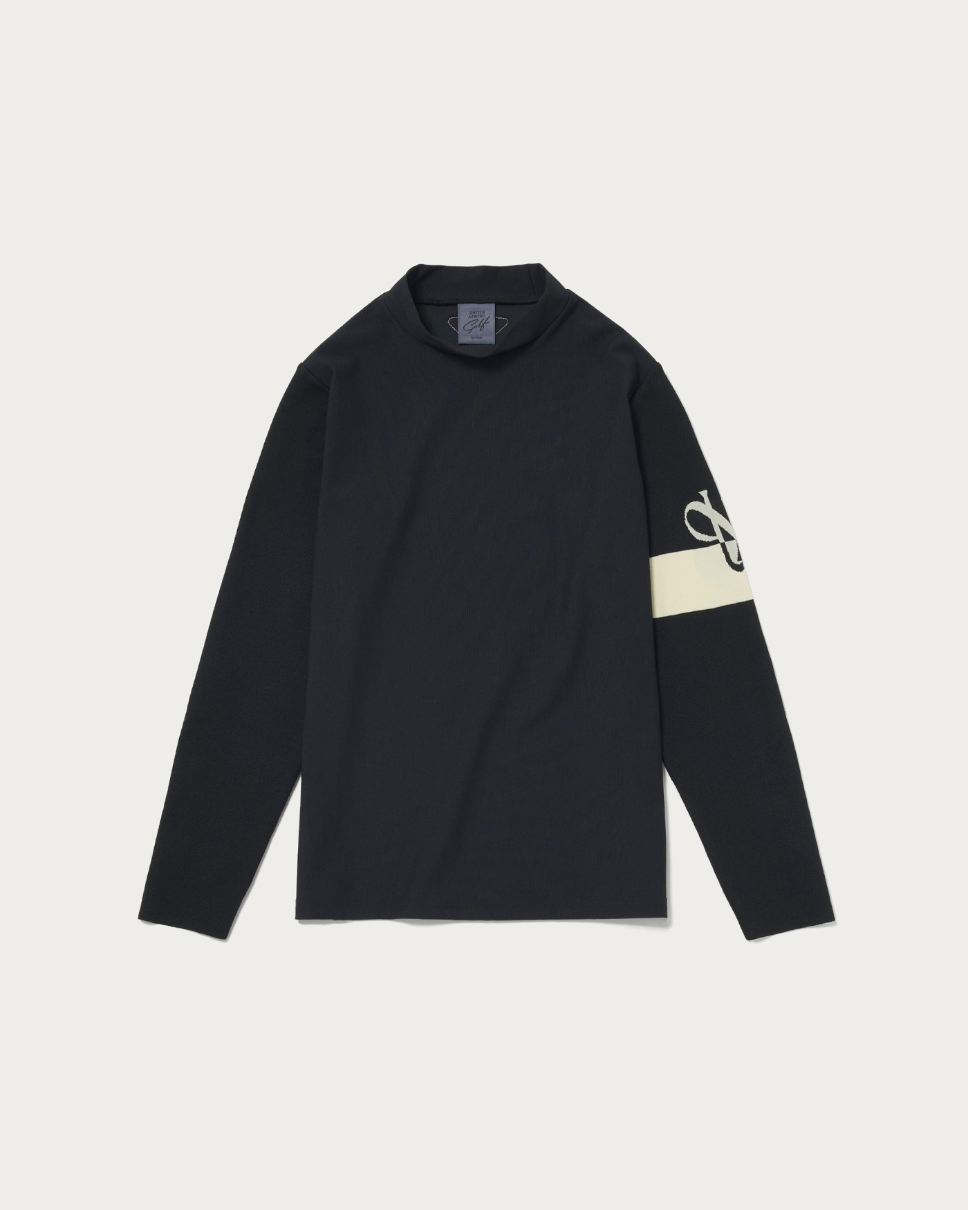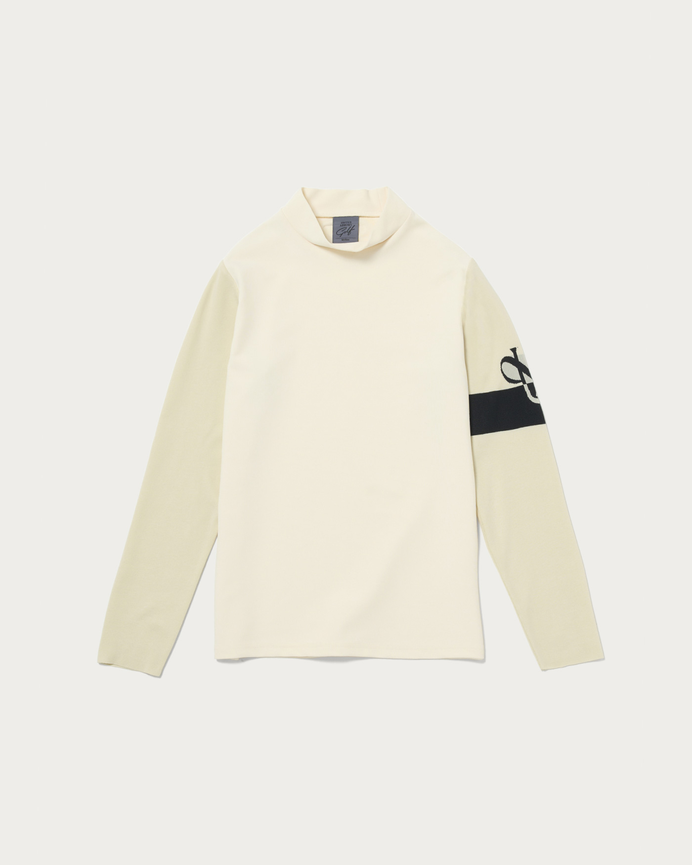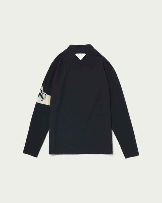 今シーズン一押しのコンビニット。袖に変形LOGOで左右配色のデザイン。程よい肉感で伸縮性もあり、一枚で着用も可能。ワイド、スリムボトムスやスカート幅広いボトムスとの着用が可能です。