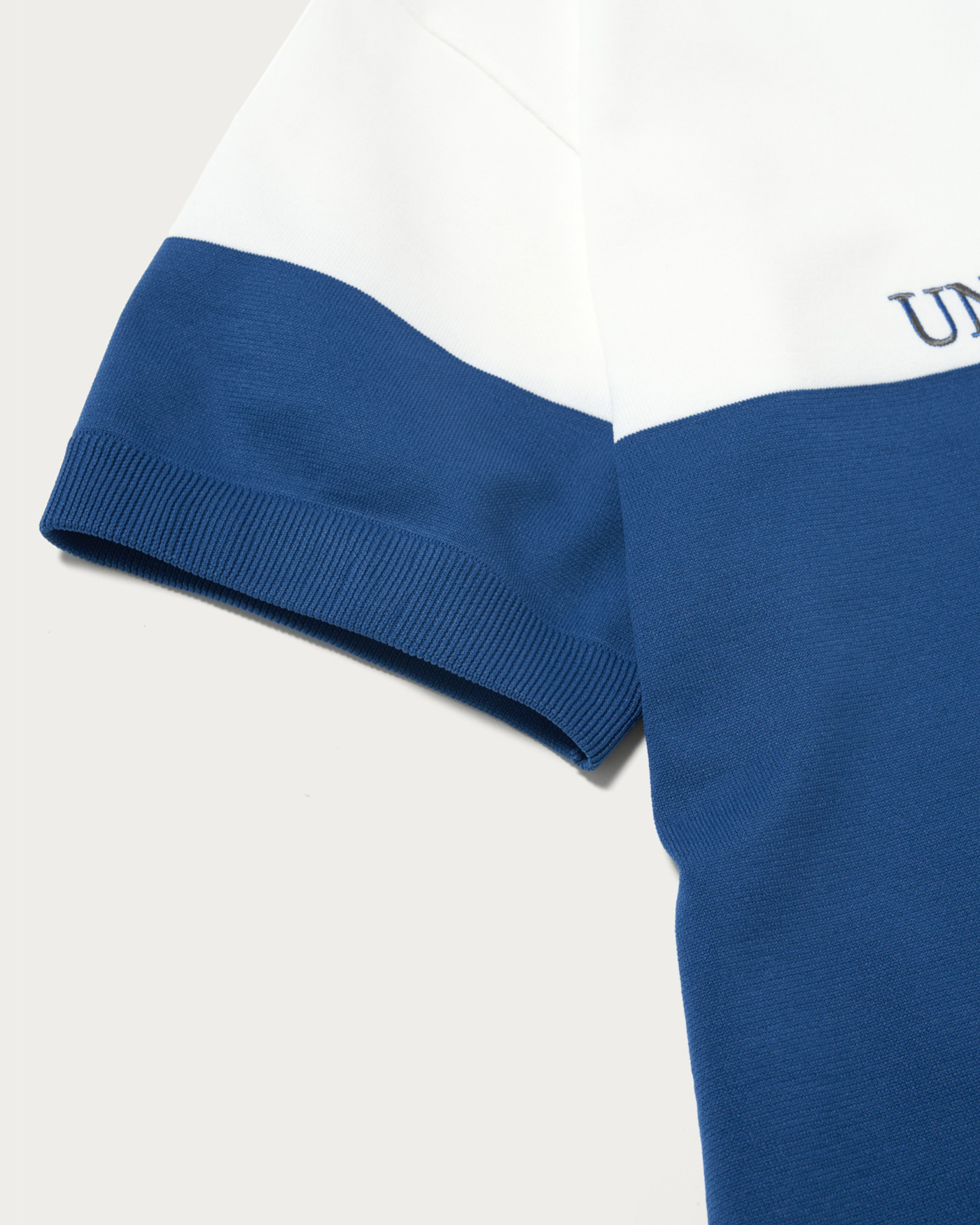 好評のプレーティングニット。編立素材のためクリーンでキレイ目な印象が引き立ちます。着丈は短く、身幅広めのトレンド感があります。胸のLOGOと配色の切り替えがポイントでシンプルなコーディネイトが楽しめます。