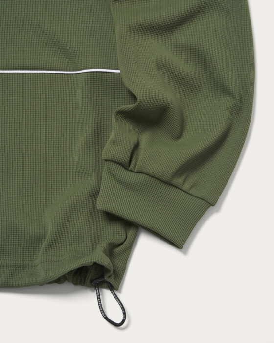 ワッフル素材のドライタッチのラガーシャツ。一枚で着用を想定し、胸の切り替えとLOGOのみの装飾。秋口には単品で冬にはレイヤードのインナーとして着こなし可能です。