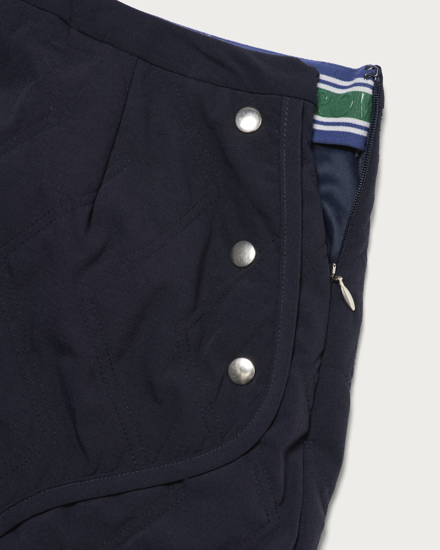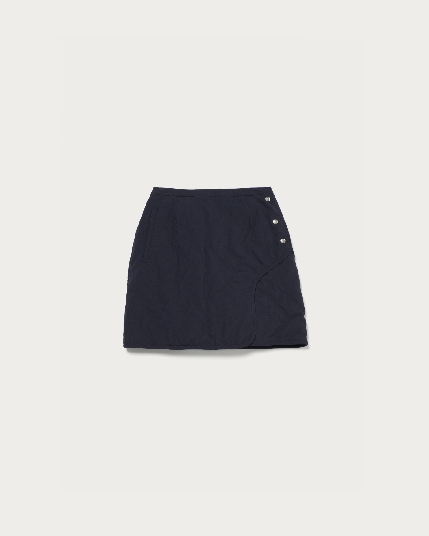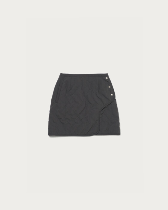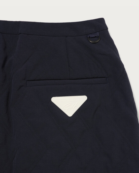 異素材コンビネーションのストレッチ布帛にジグザグキルト加工を施した中綿入り台形スコート。程よく効かせたストレッチ性により、スイング中も動きを妨げず快適な着用感を実現。ジグザグキルトが表情豊かな立体感を添えつつ、リッチな印象を醸します。サイドには控えめなボタンディテールを配し、クラシカルなレトロスポーティなムードをプラス。