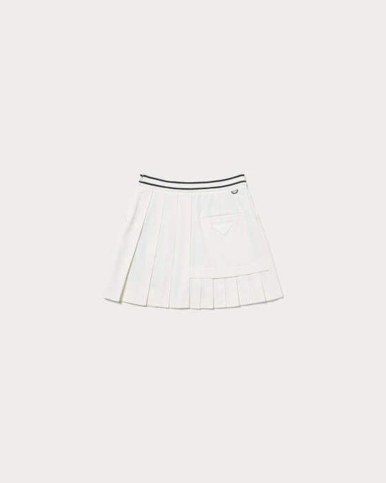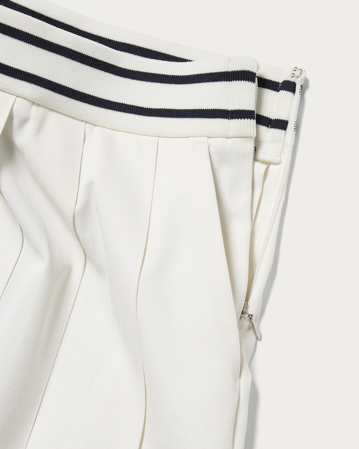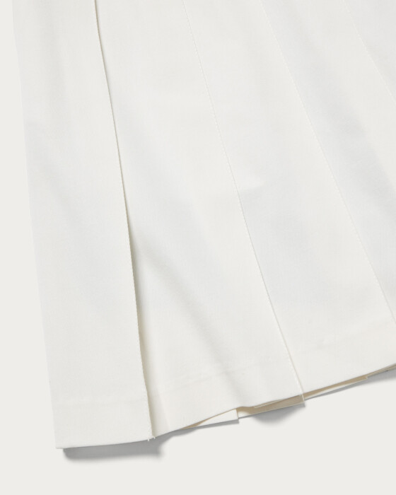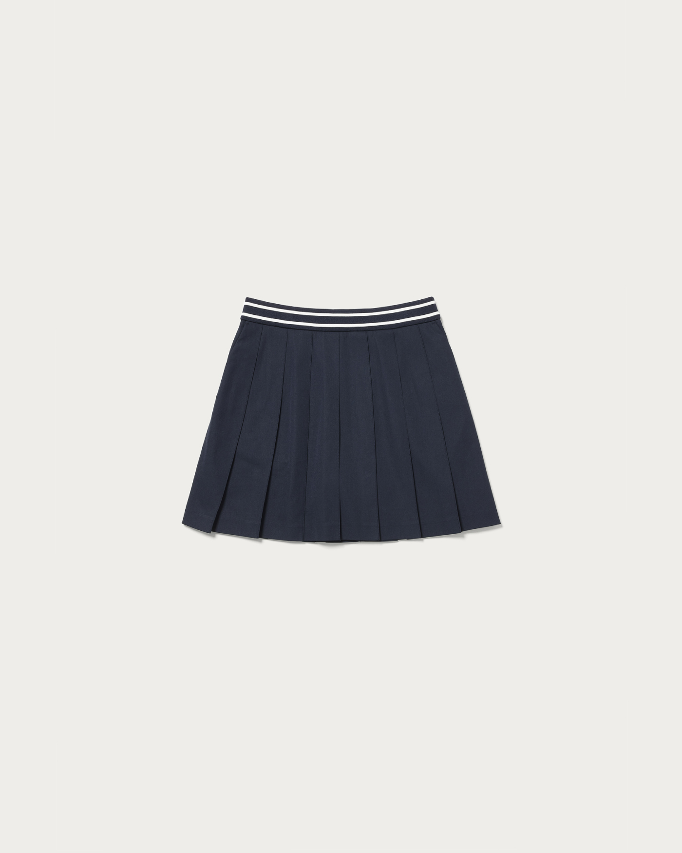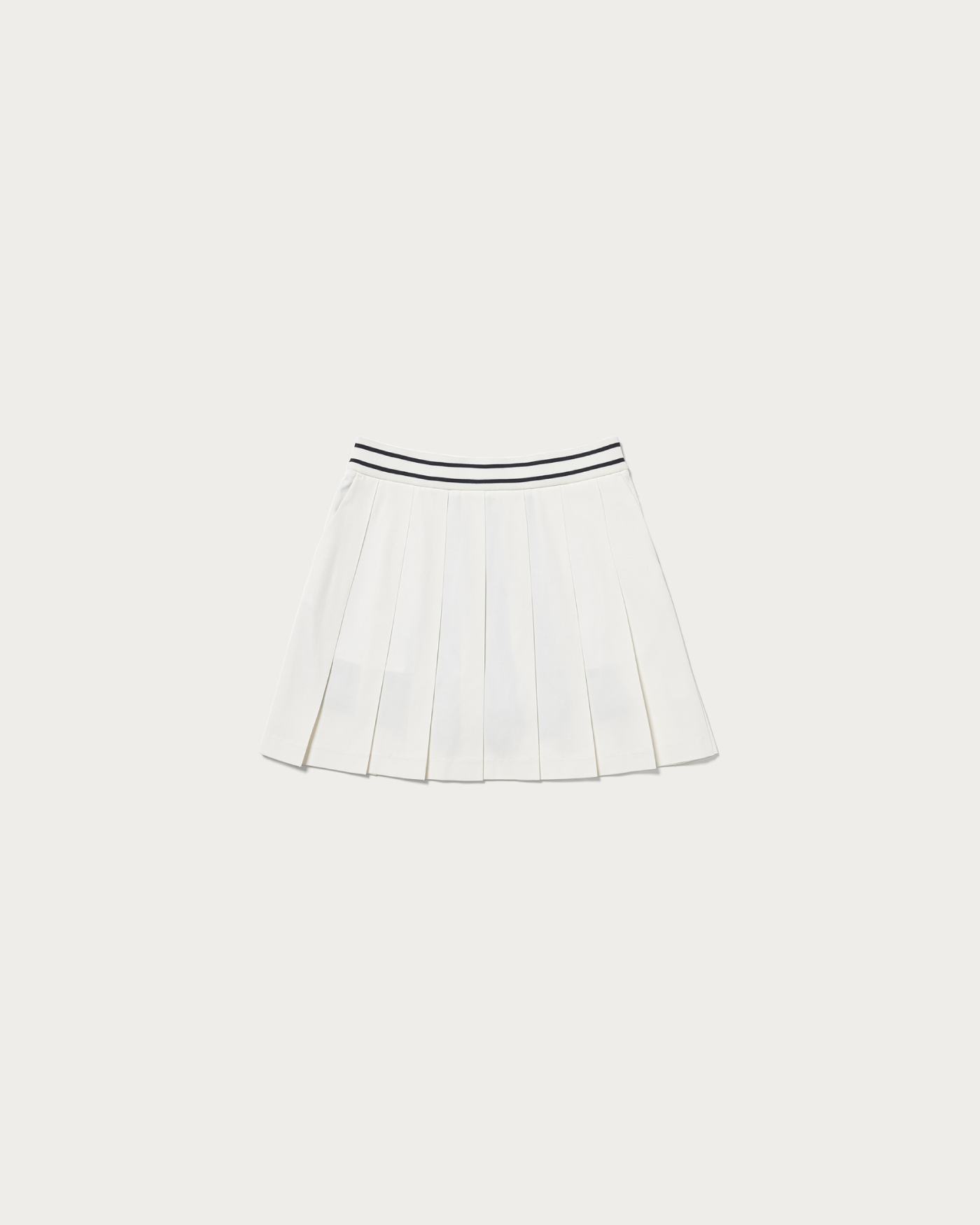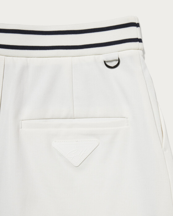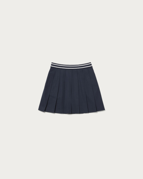 耐久性と撥水性に優れた高機能ツイル素材を使用したプリーツスコート。インナーパンツが一体化しているため、動きやすさと安心感を両立。ウエストはリブ仕様にラインデザインをあしらい、クラブスポーツのエッセンスを感じさせるスポーティーなアクセントに仕上げました。バックスタイルはアシンメトリーなカッティングでモダンな印象を与え、左ポケット下にはブランドアイコンのワッペンを配してさりげないアクセントに。