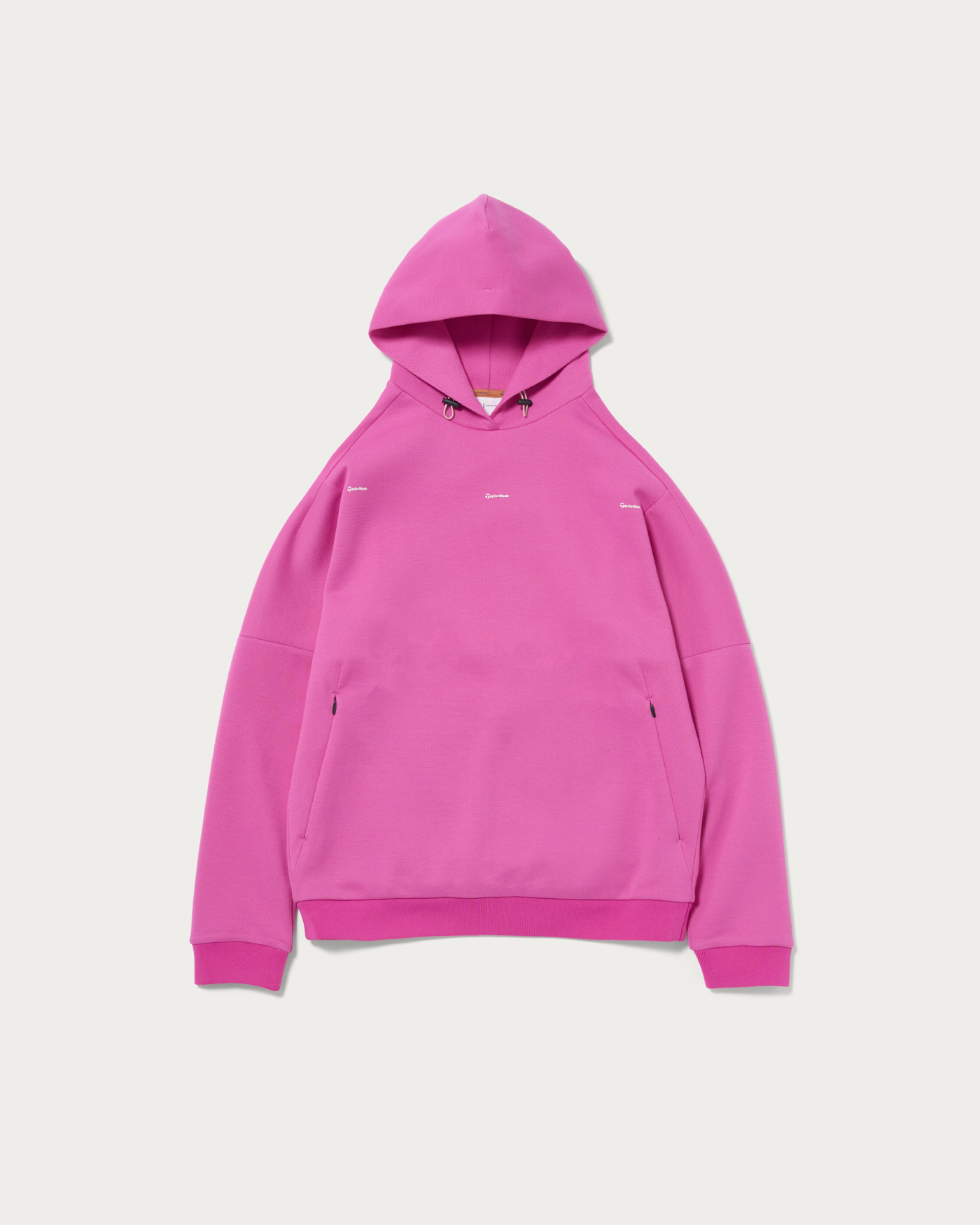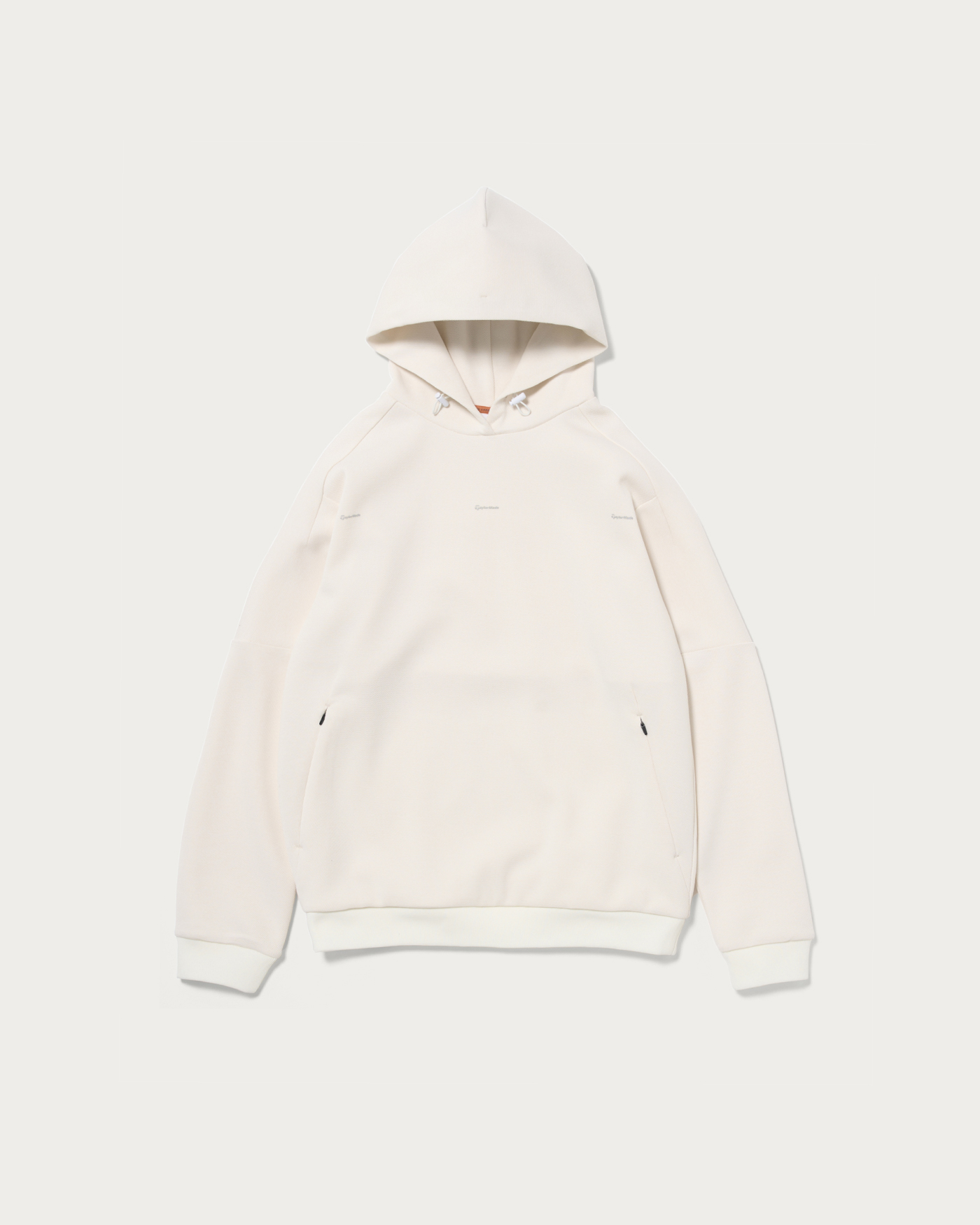 カジュアルな印象のリラックスフィットのスウェットフーディーです。ジッパー付きのカンガルーポケットがフロントに配置されます。テーラーメイドとユナイテッドアローズによるコラボコレクションです。