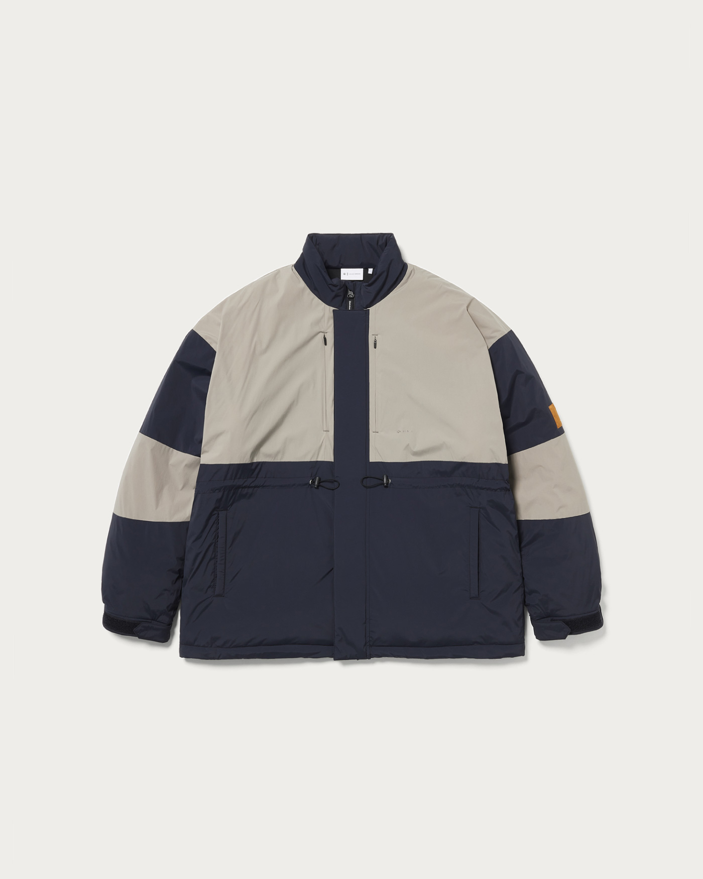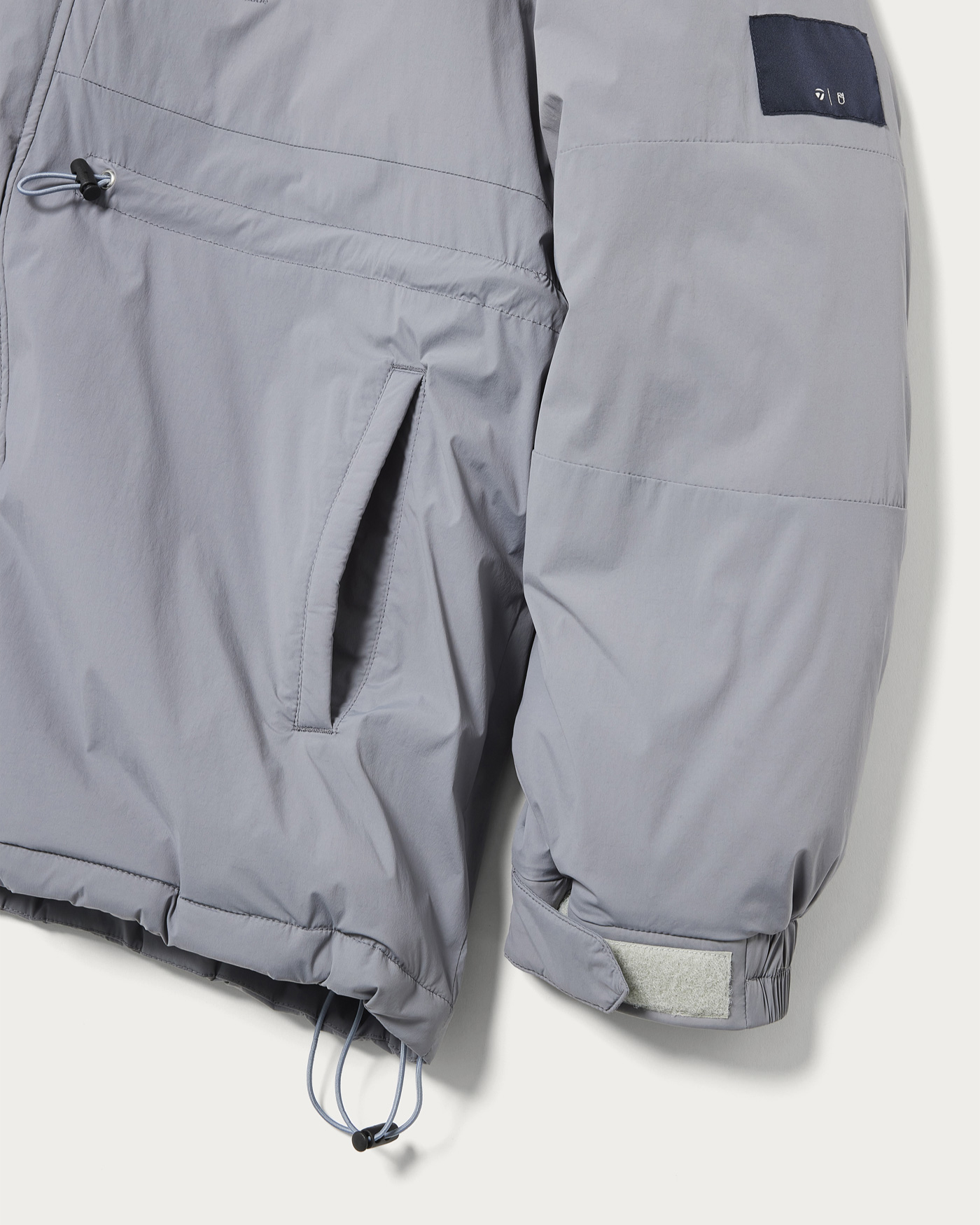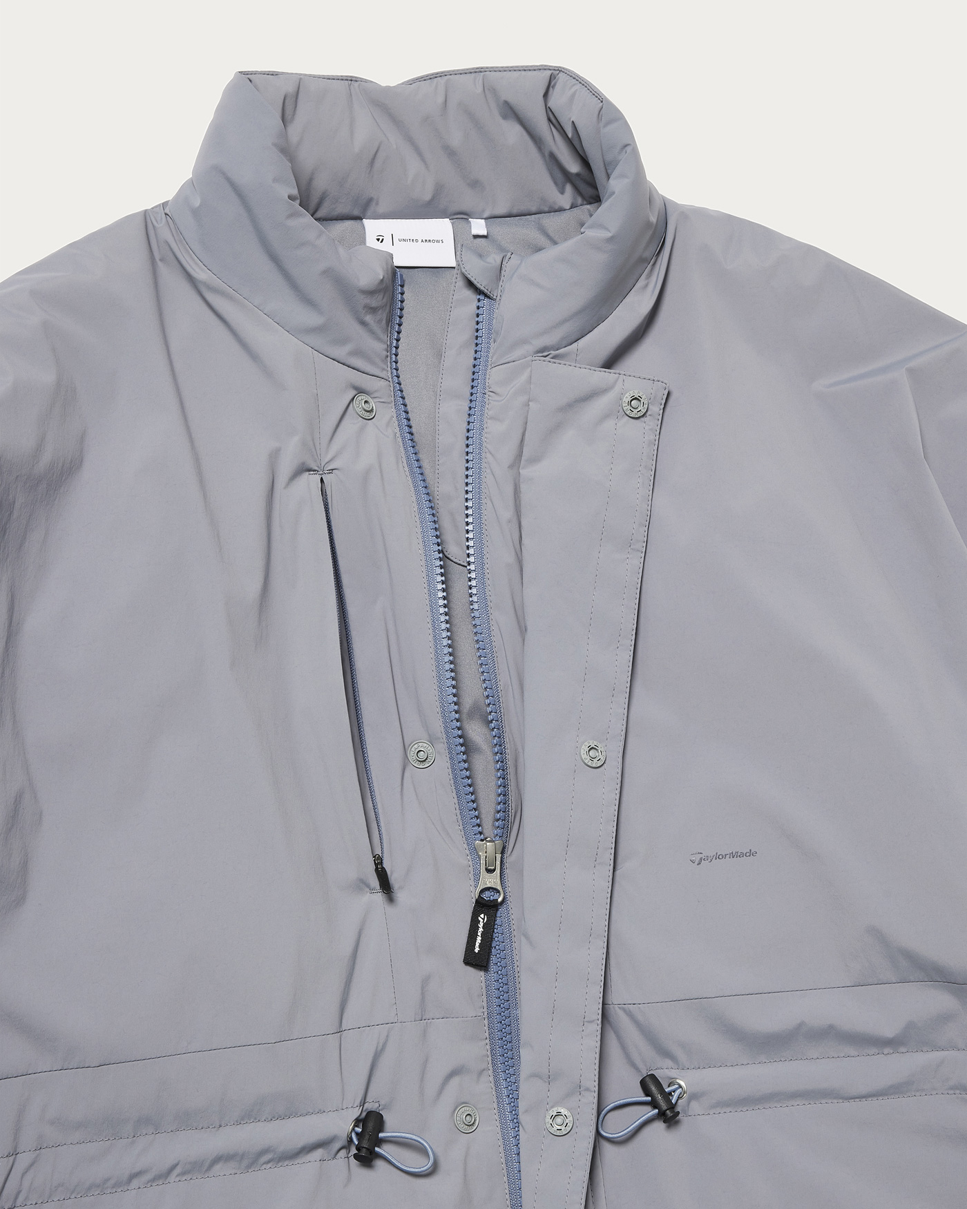 リラックスフィットの中綿ジャケット。ウエストのドローコードを調整することで、シルエットの変化を楽しめるデザインとなっています。テーラーメイドとユナイテッドアローズによるコラボコレクションです。