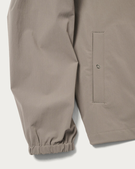 360°方向に伸縮する「サブロクマスター」素材を採用したフルジップのハリントンジャケット。ハリがあり、伸縮性に優れた生地でかつ撥水性能も高いため、雨の日でも気兼ねなく着られます。程よくゆとりのあるシルエットで、裾にはスピンドルを配置。自由自在にシルエットを変更できます。