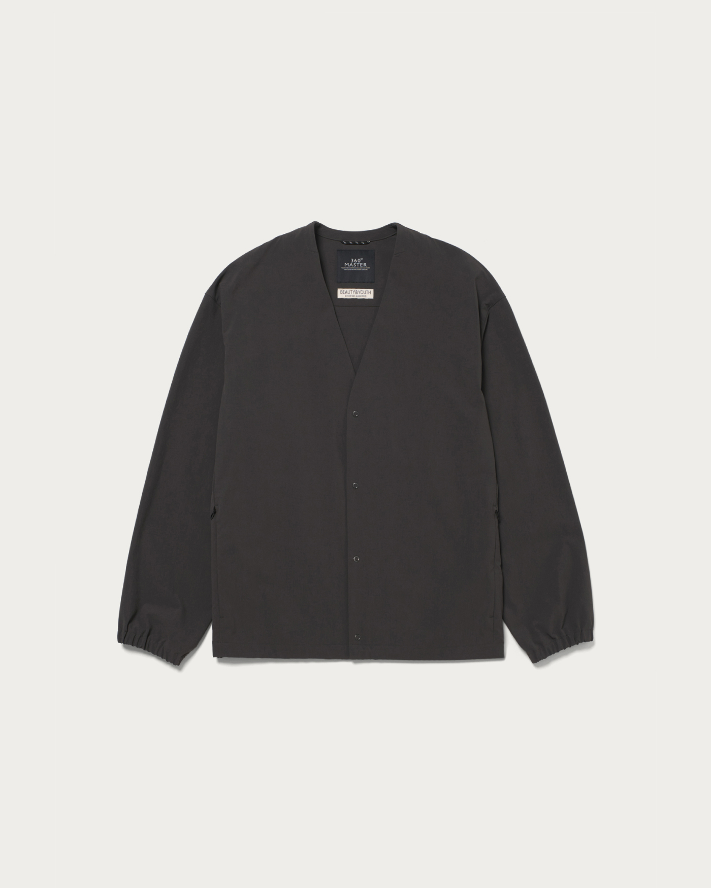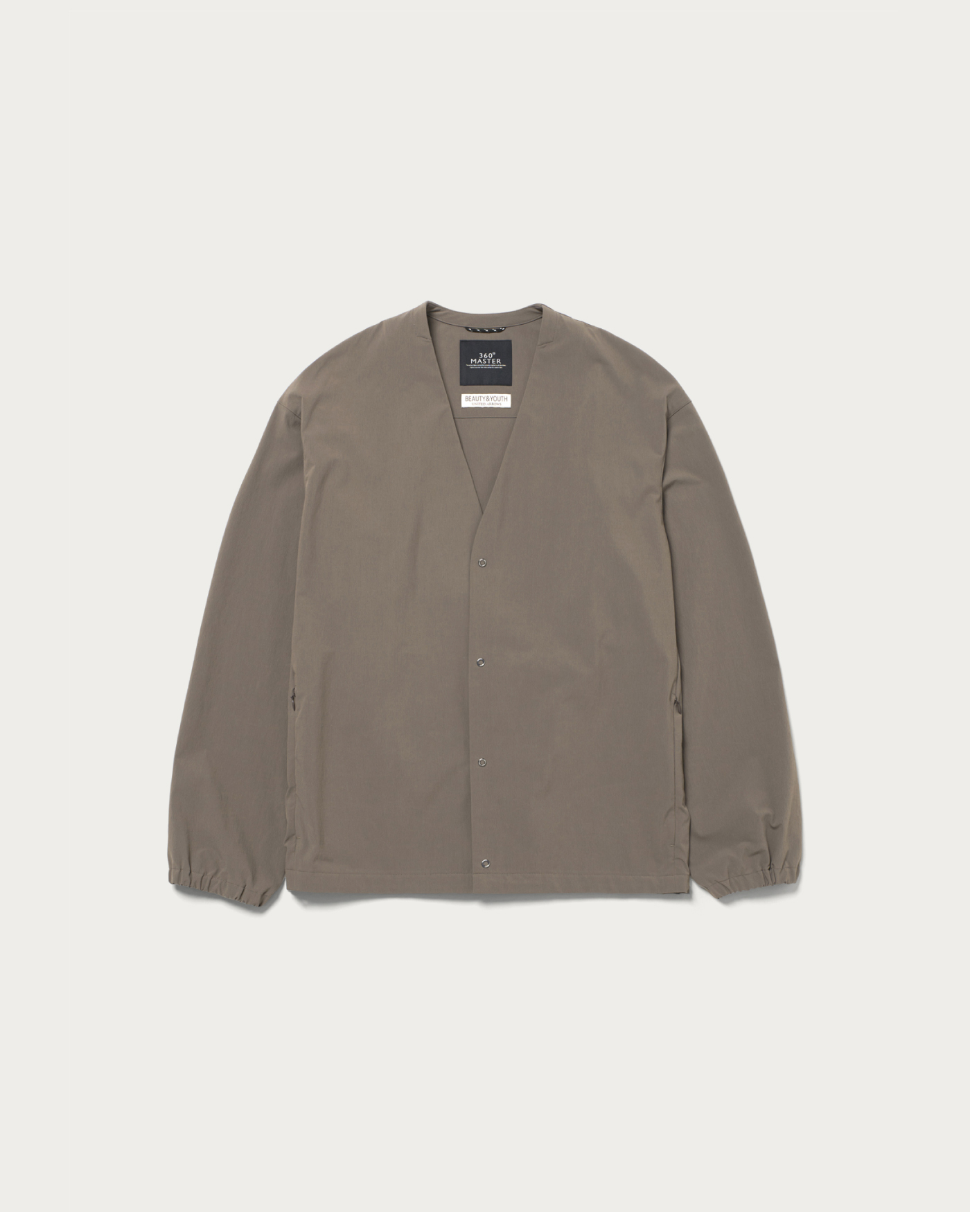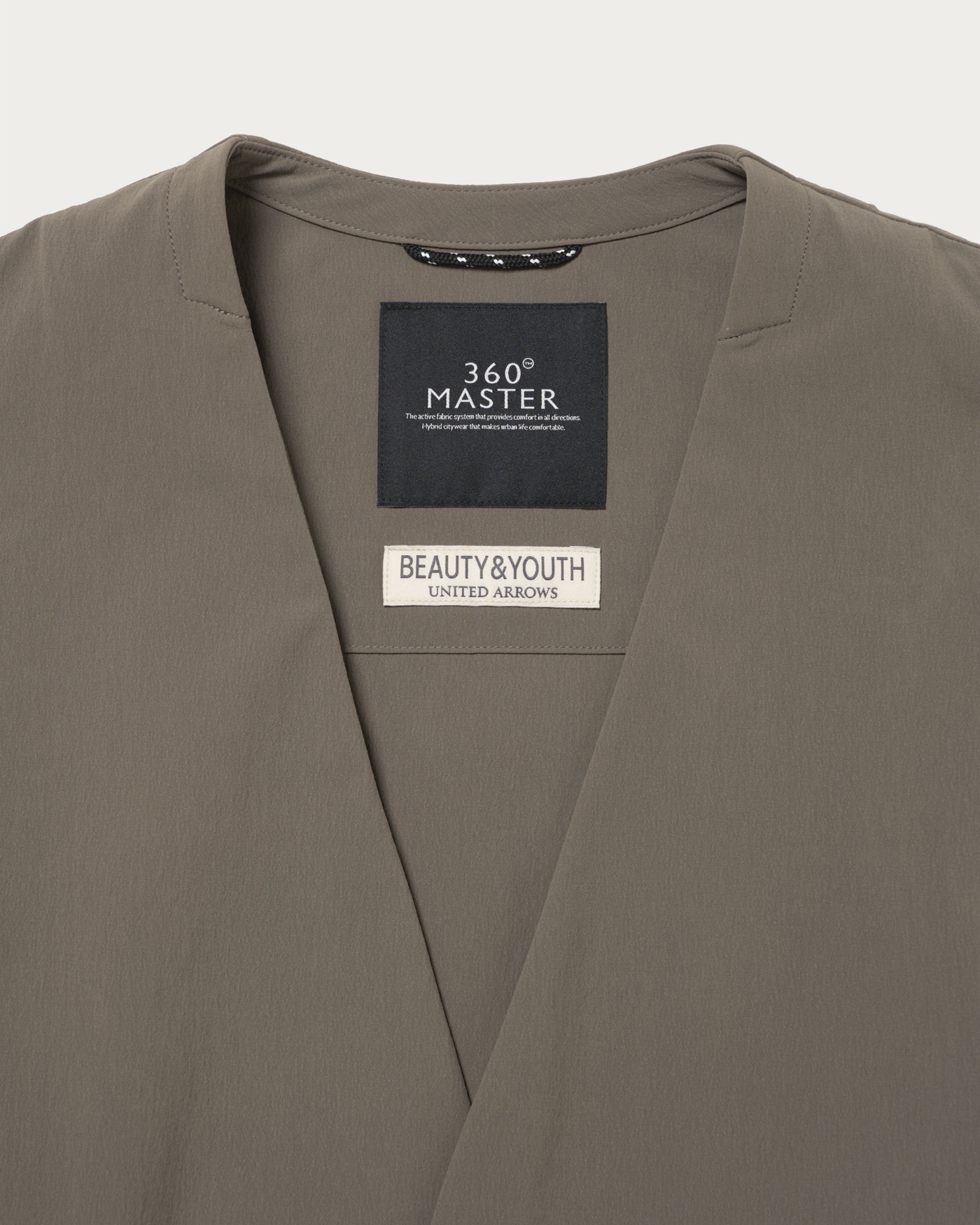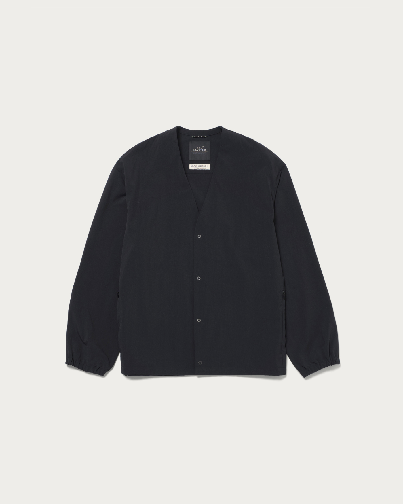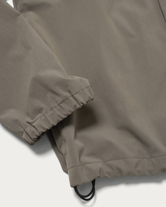 360°方向に伸縮する「サブロクマスター」素材を採用したノーカラーのブルゾン。ハリがあり、伸縮性に優れた生地でかつ撥水性能も高いため、雨の日でも気兼ねなく着られます。適度なゆとりがあるデザインで、ウエストポケットにはファスナー付きのセキュリティポケットを搭載。スマホやカギなどの貴重品の落下を防ぐ役割も担います。