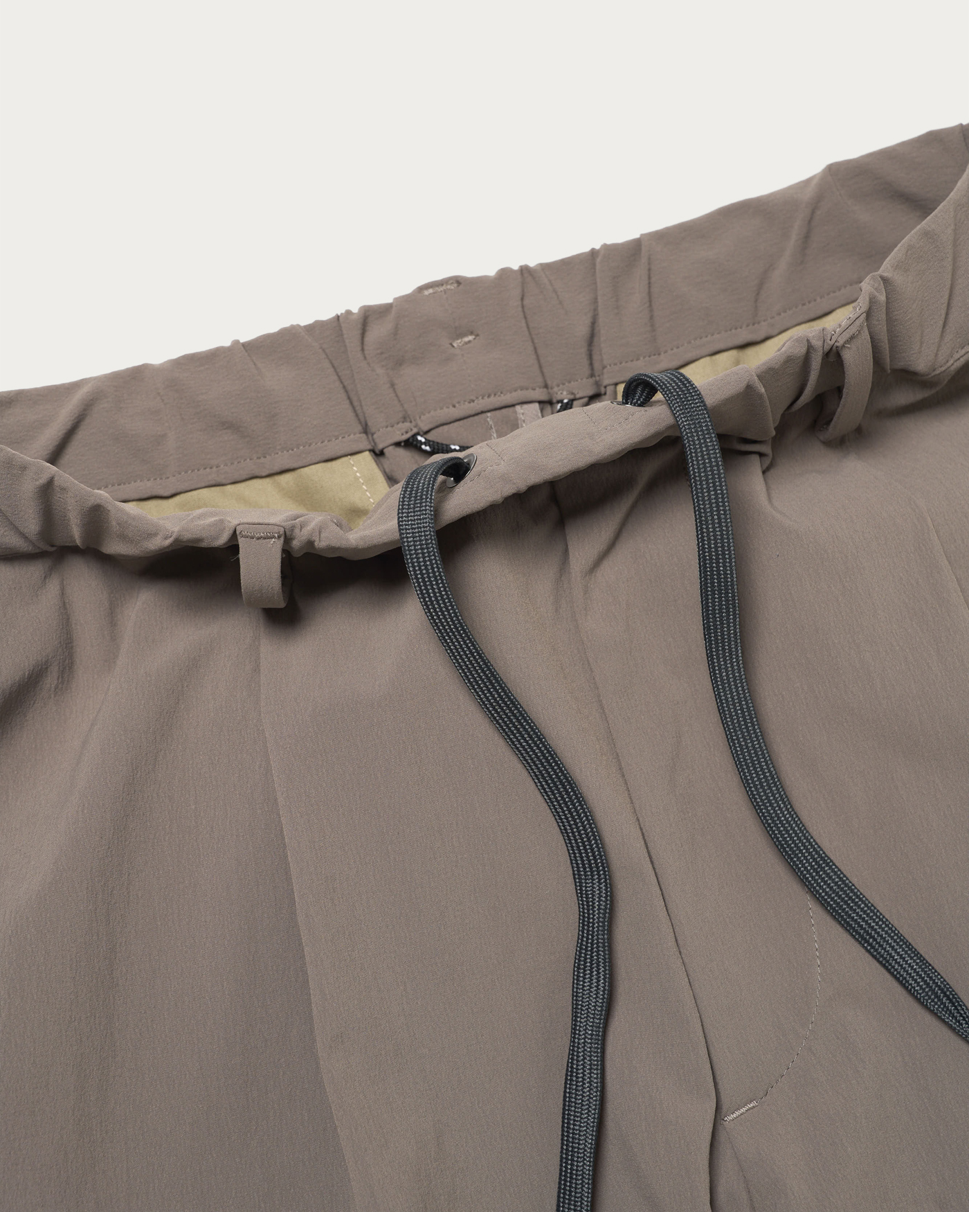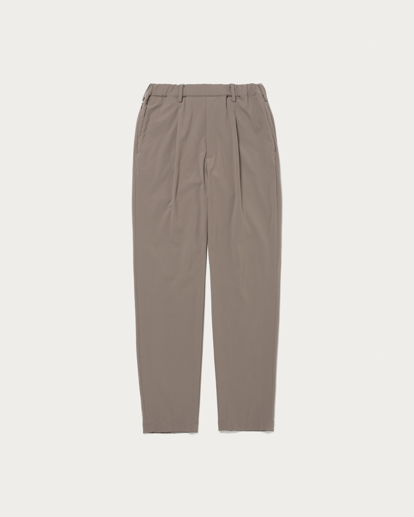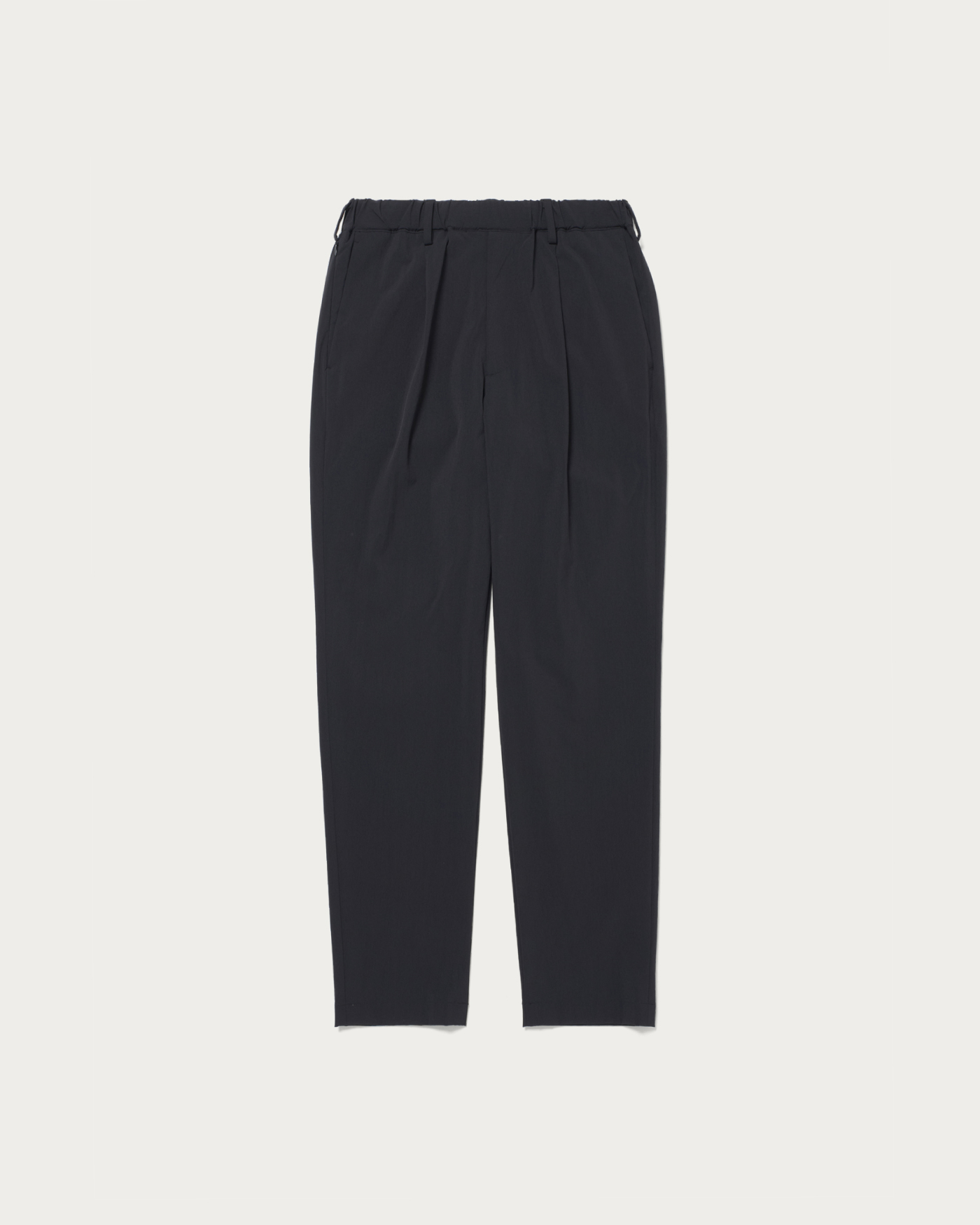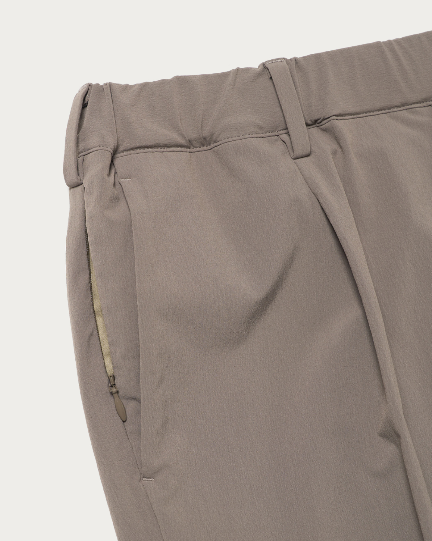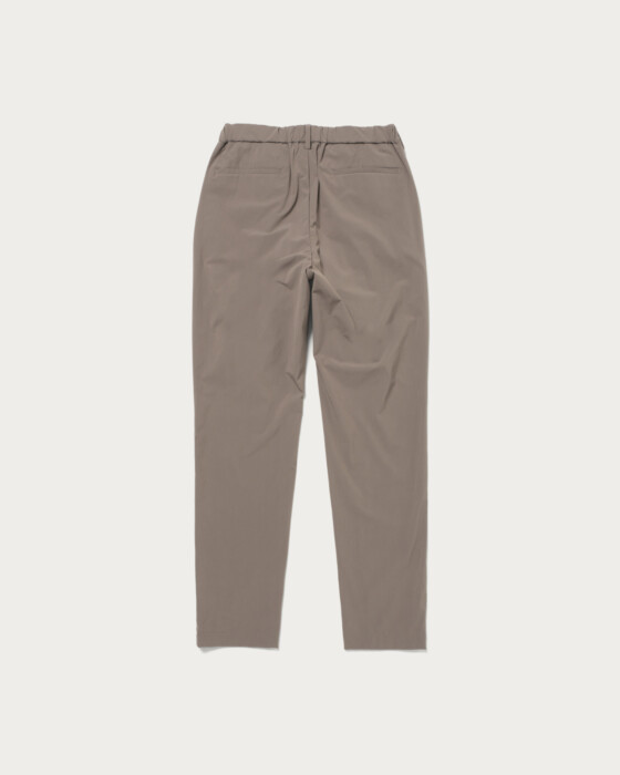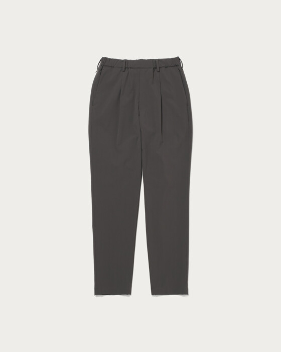 360°方向に伸縮する「サブロクマスター」素材を採用したスラックス。ハリがあり、伸縮性に優れた生地でかつ撥水性能も高いため、雨の日でも気兼ねなく着られます。ウエスト周りはゆるく、膝から裾に向かってテーパードがかかり、ややジャストシルエットに。右脇にはコンシールファスナーを配し、セキュリティポケットが搭載されているのは気が利いている。2025年春夏シーズンから洗濯機での洗いが可能に、汎用性も申し分ない。