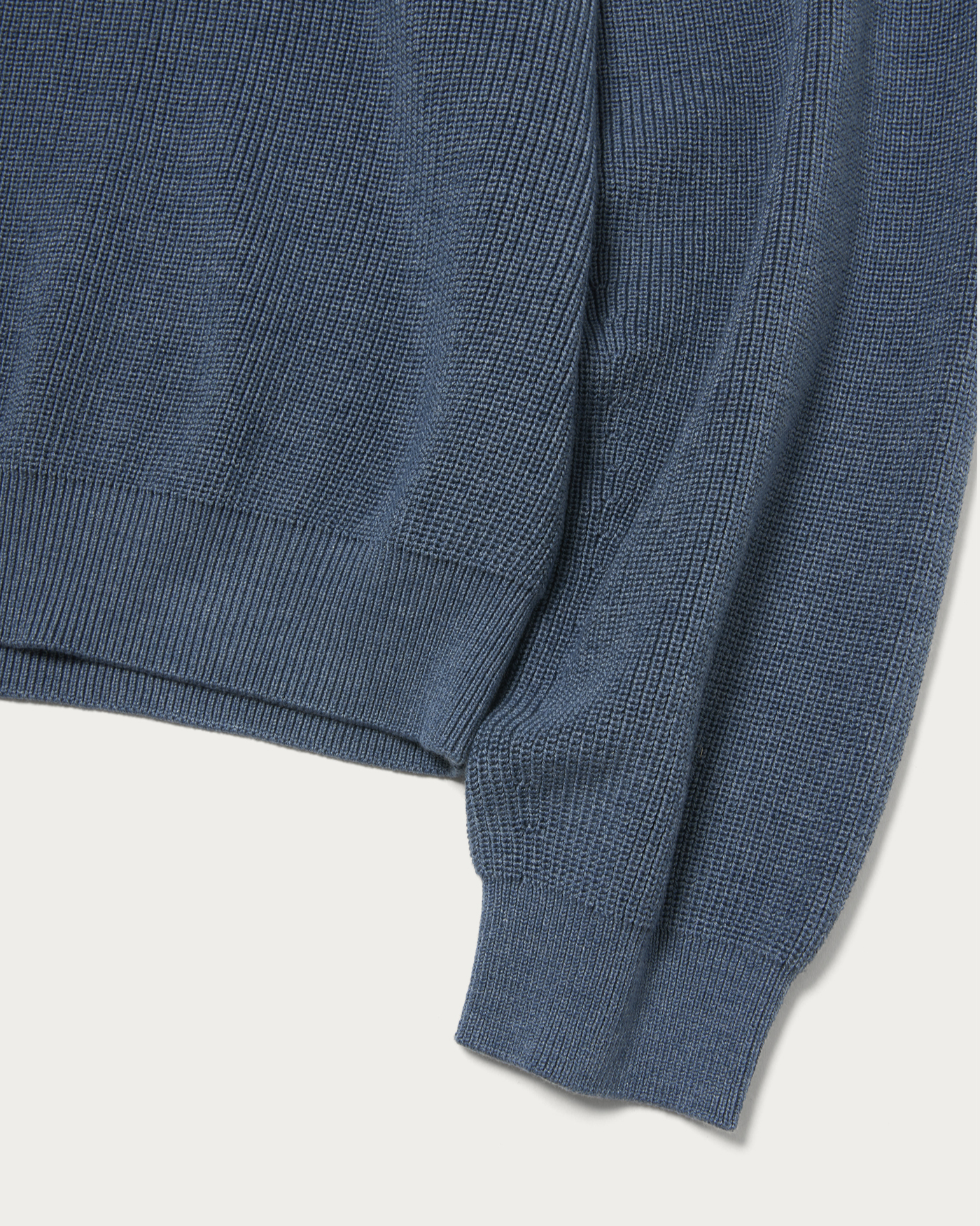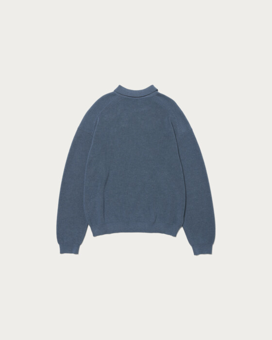 程よいゆとりのあるサイズ感をベースに、袖口と裾をリブで絞ることで、丸みを帯びたシルエットに仕上げています。畦編みならではの風合いと、ボタンのない襟付きデザイン、そしてモードなカラーリングが、クラシックな雰囲気にほどよいカジュアルさをプラスしています。コットン・アクリル混紡の糸で編み上げた生地を採用。上品でクリアな表情に仕上がっています。サラッとした肌触りで幅広いシーズン着られる素材感にです。