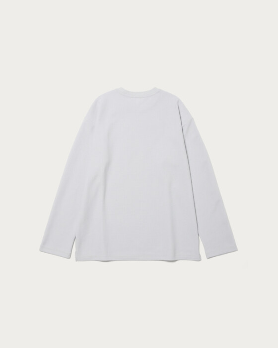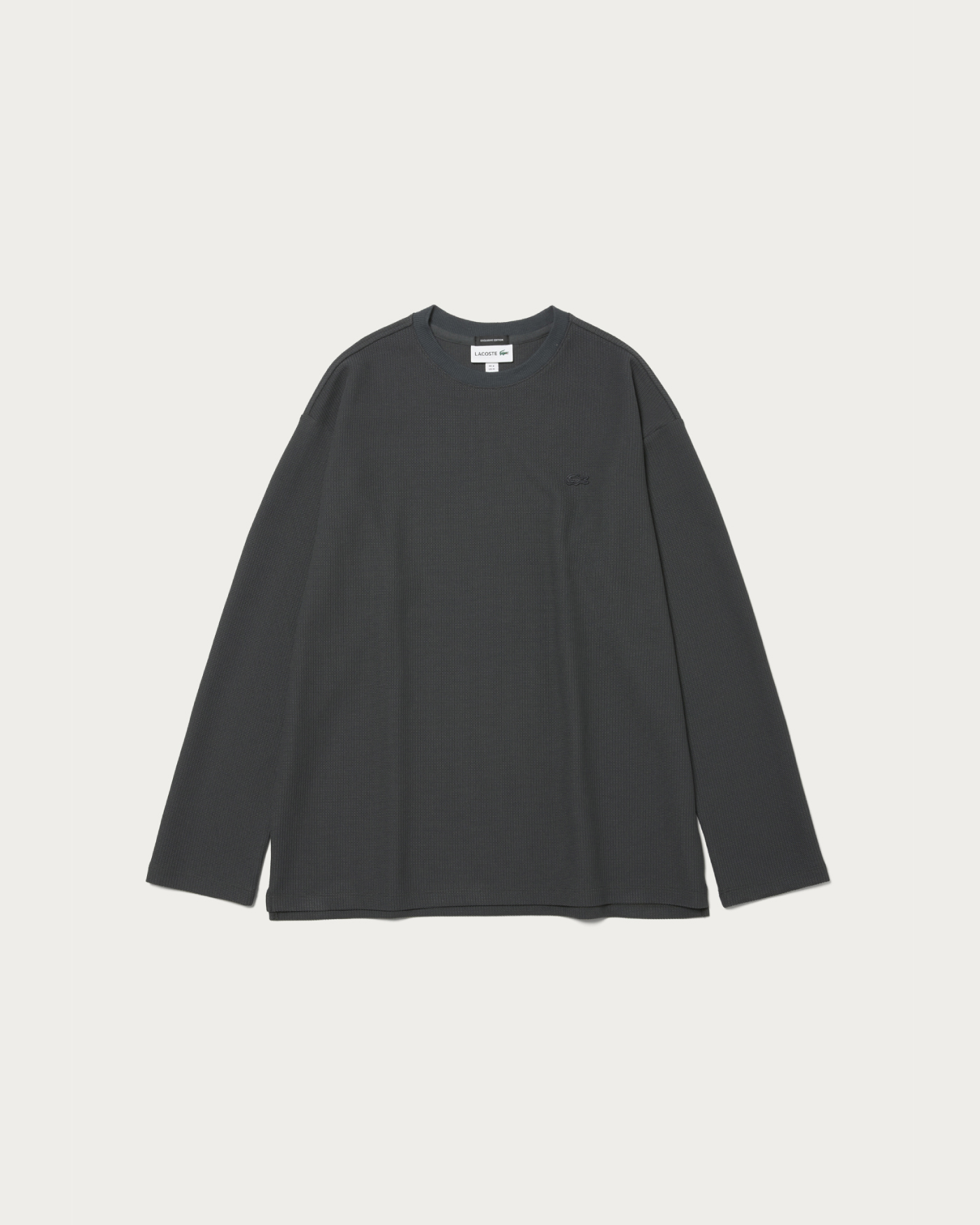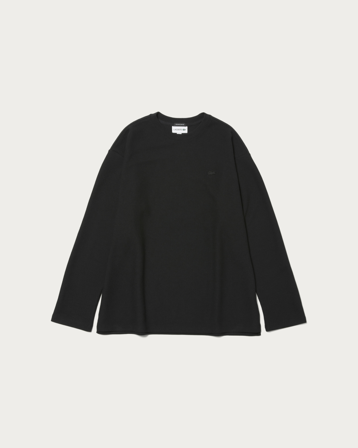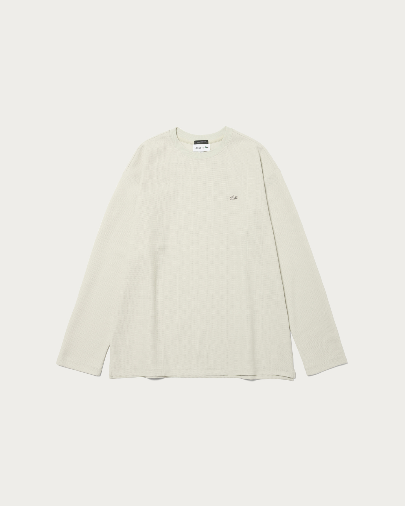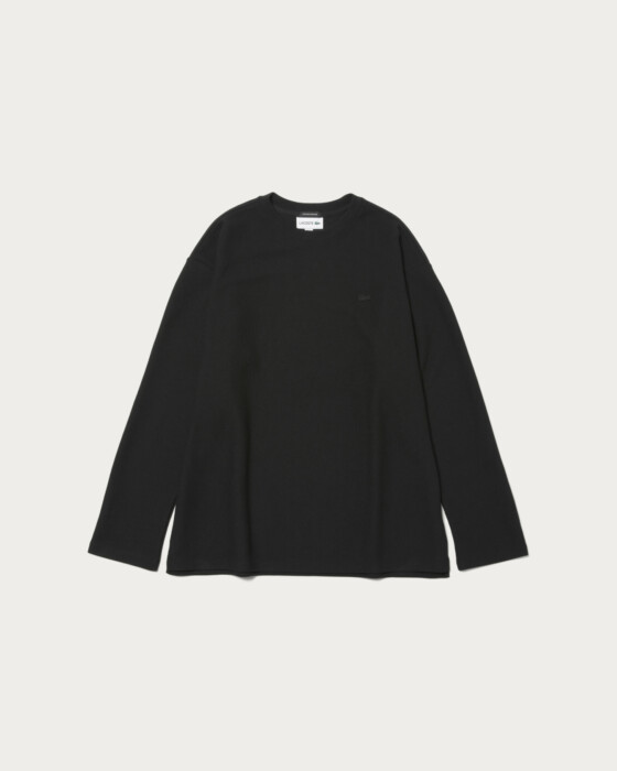 〈ラコステ〉との人気別注シリーズから、ラッセル調ジャージ素材を使用したロングスリーブTシャツが今季も登場。前回同様〈ビューティー&ユース〉のオリジナルパターンをベースに、適度にゆとりがあるシルエットで作りました。シンプルなデザインとニットライクな素材感が上品な表情を演出。ボディカラーと揃えた胸元のワッペンもさりげない。