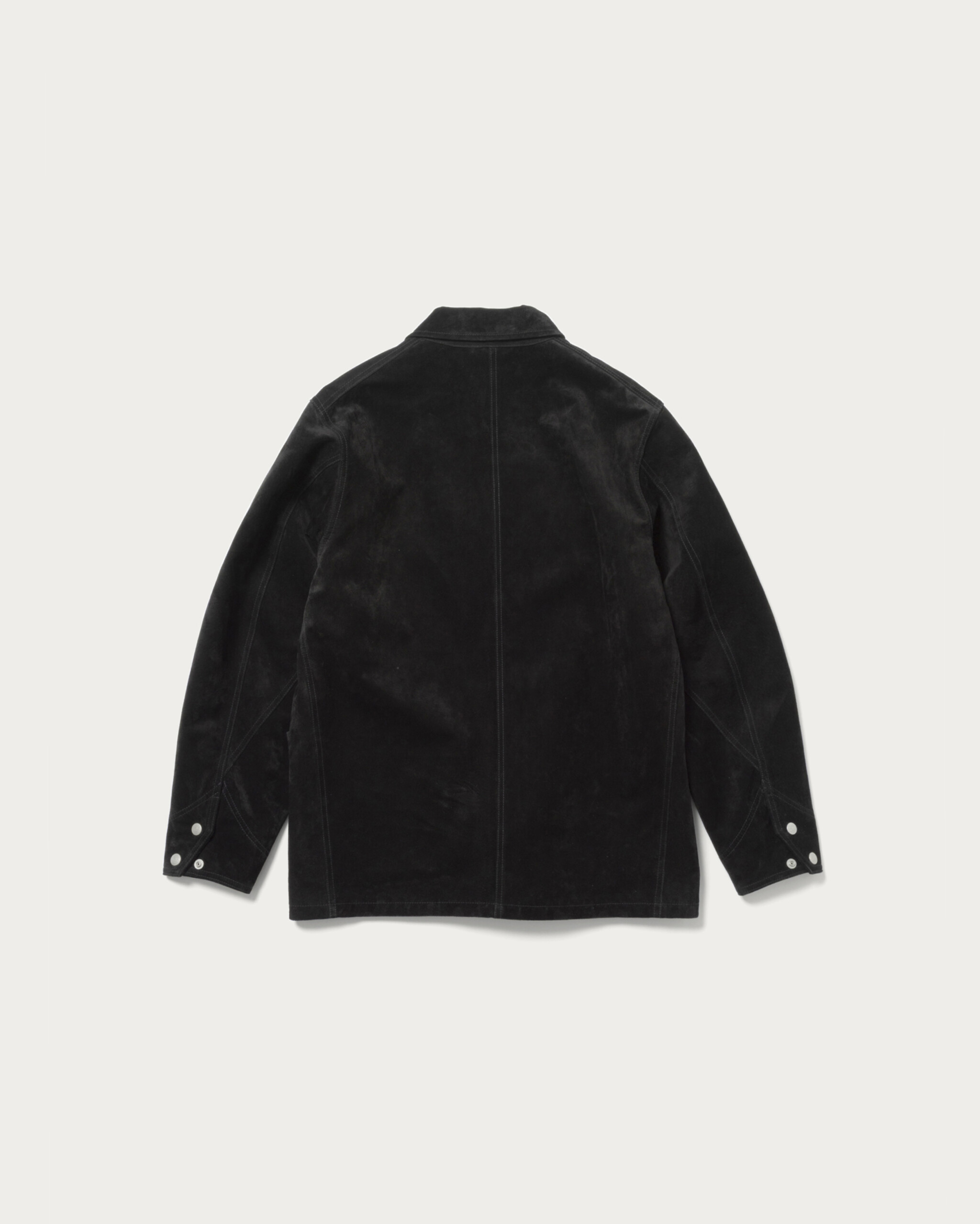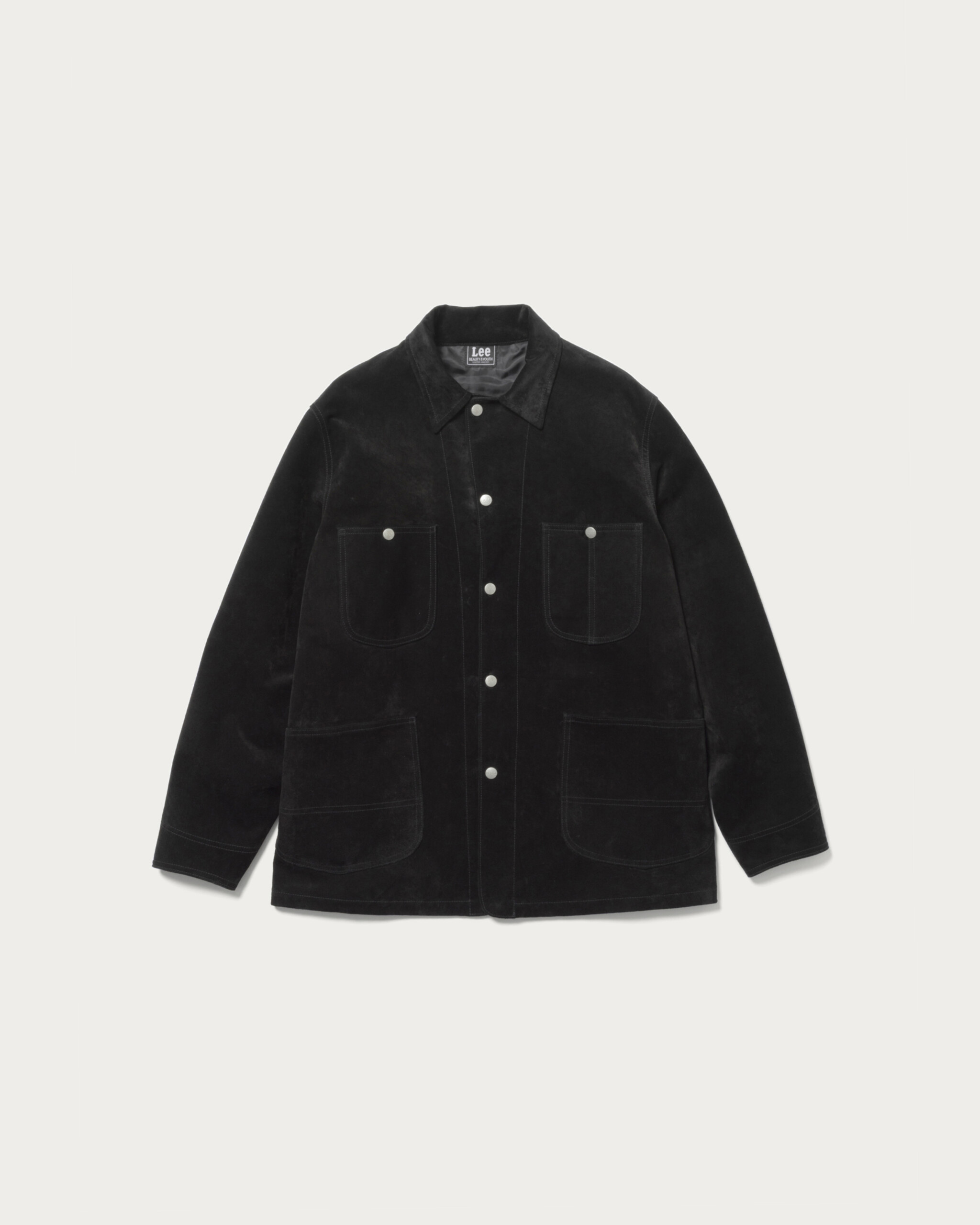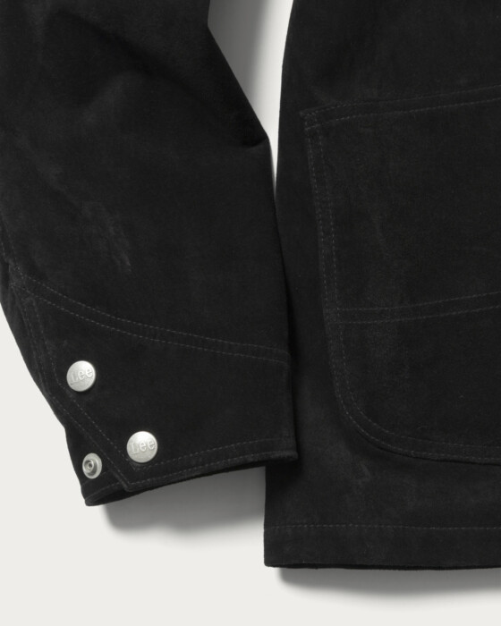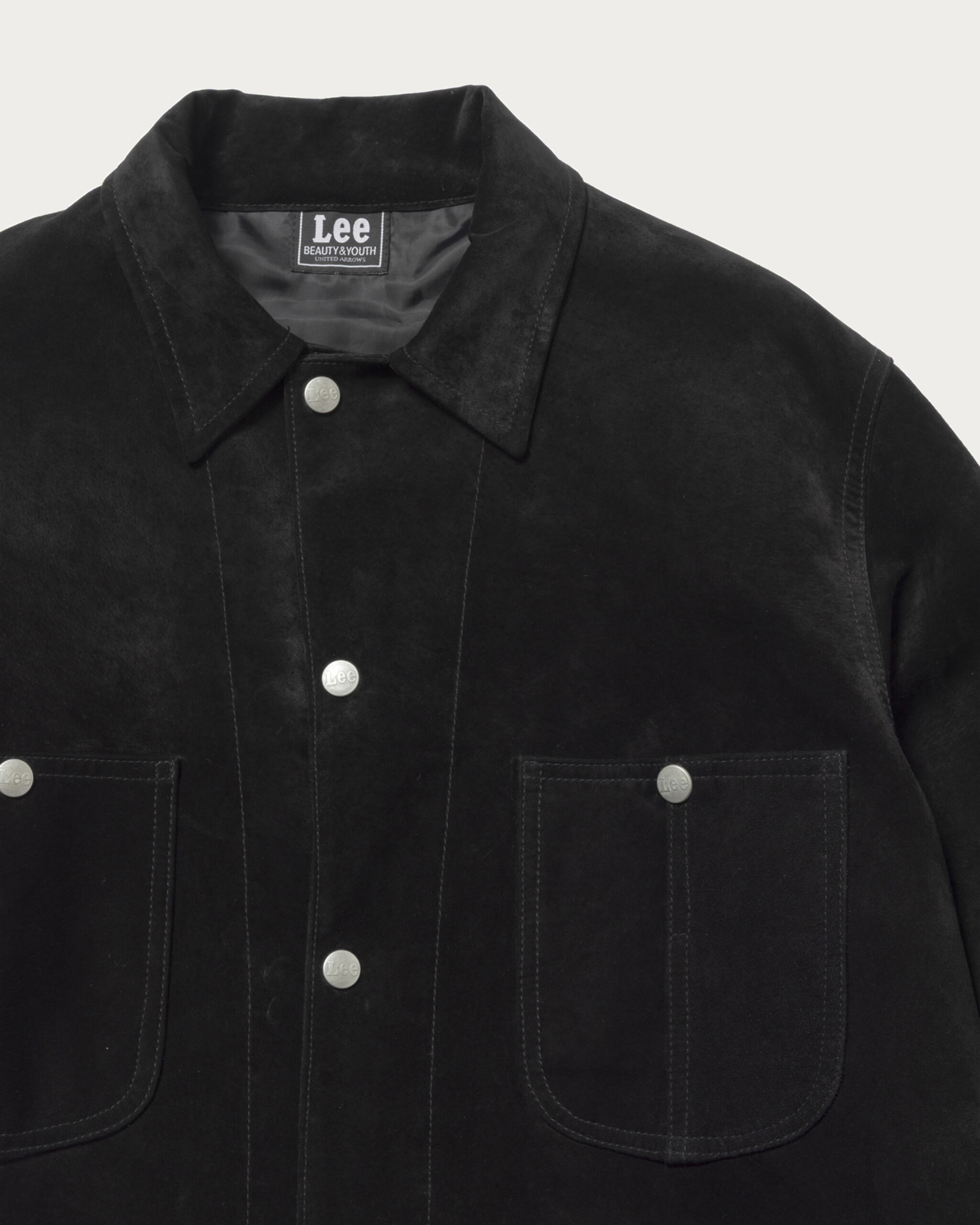 〈リー〉定番のカバーオールである「LOCO JACKET」をベースに、ブランドとして初のスエード素材で製作。あえて生地を薄く仕上げることで春先でも着用を可能にしました。このアイテムのために作った別注タグにも注目してほしい。