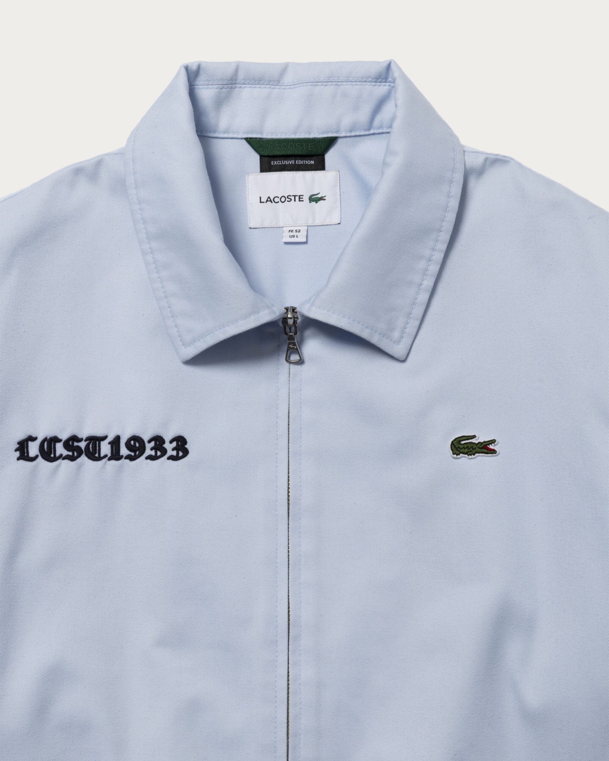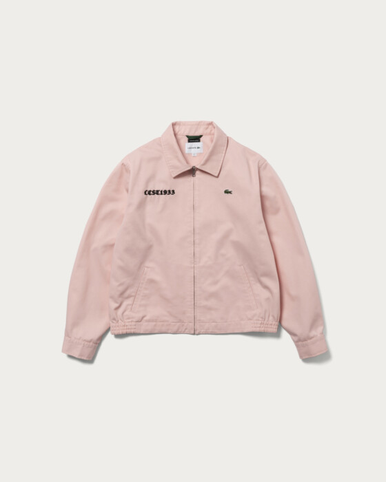 〈ラコステ〉に別注したブルゾン。アウターでありながらシャツ感覚でも羽織れる軽快な着心地を追求しました。ブランドの創業年を刺繍し、スポーツカジュアルな雰囲気に。黒のほかに、ピンクとライトブルーといった春らしい色展開もあり、着るのが楽しみになる一着です。