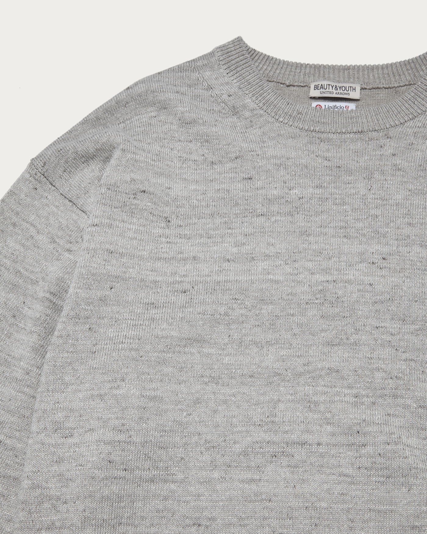 イタリア老舗紡績メーカーであるLINIFICIO社の上質なリネン素材を採用したクルーネックニット。生地の品の良さはもちろんのこと、スウェットのようなタフで気軽な着心地も兼ね備えています。