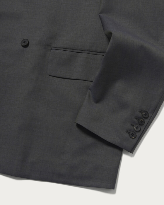 イタリアREDA社のしなやかなウールトロ素材を使用。非常に軽やかで薄手で素肌にも心地よいタッチのサマーウールです。Wフロントでゆったりとしたボックスシルエットのジャケットは、抜け感もありつつシャープな印象でかっちりし過ぎないのがポイントです。