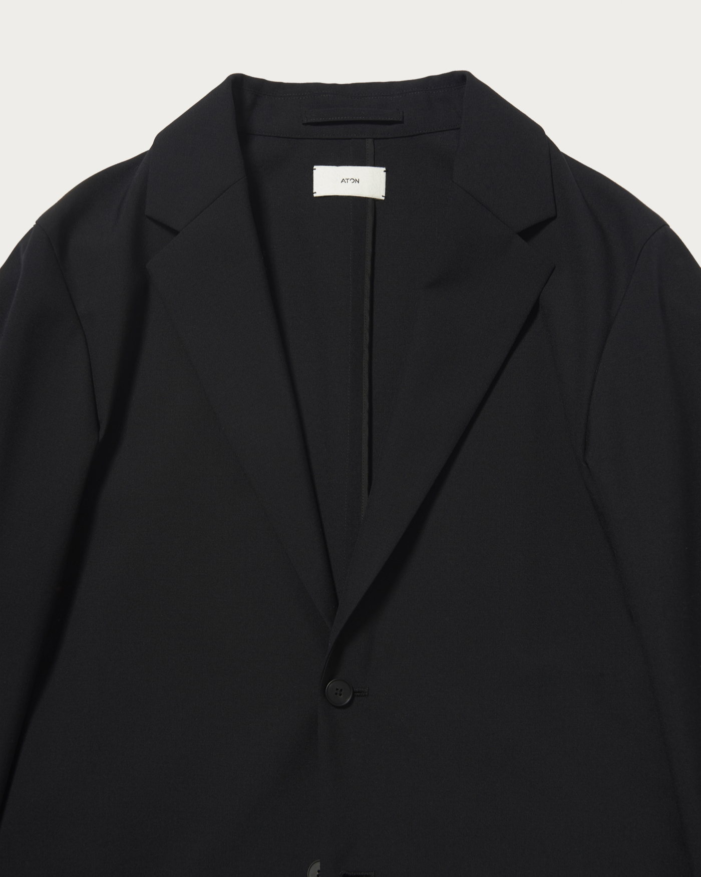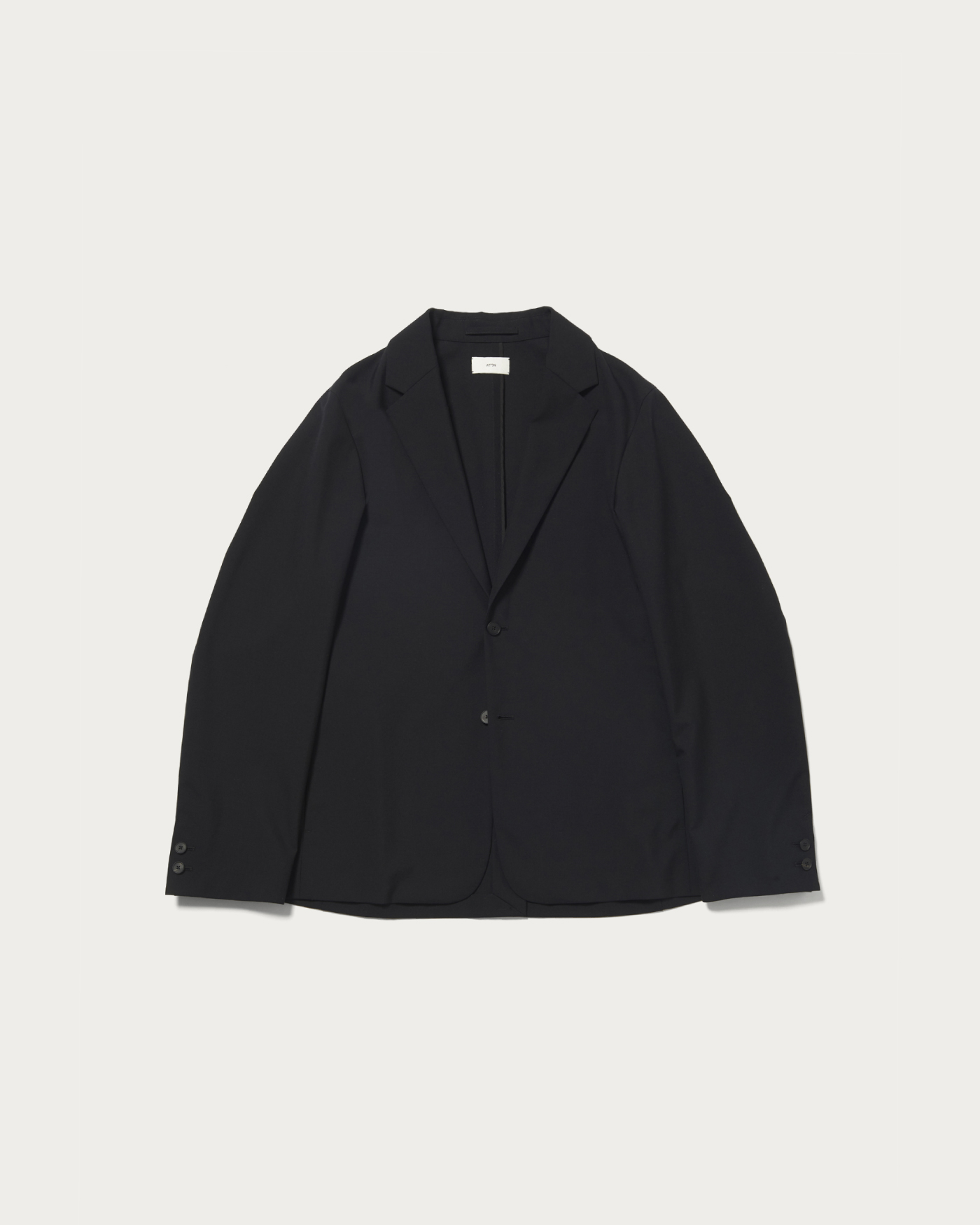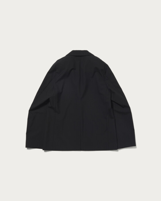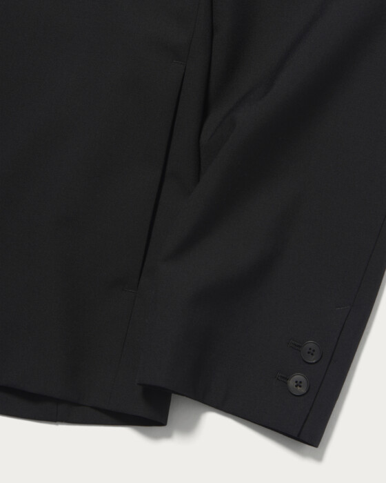 先染めのウール糸を高密度で織り上げることで軽やかな肌触りとしっかりとした肉感を両立した〈エイトン〉オリジナルの生地を使用し、セットアップをアップデート。カーディガン感覚で着られるジャケットのボックスシルエットで作成しました。