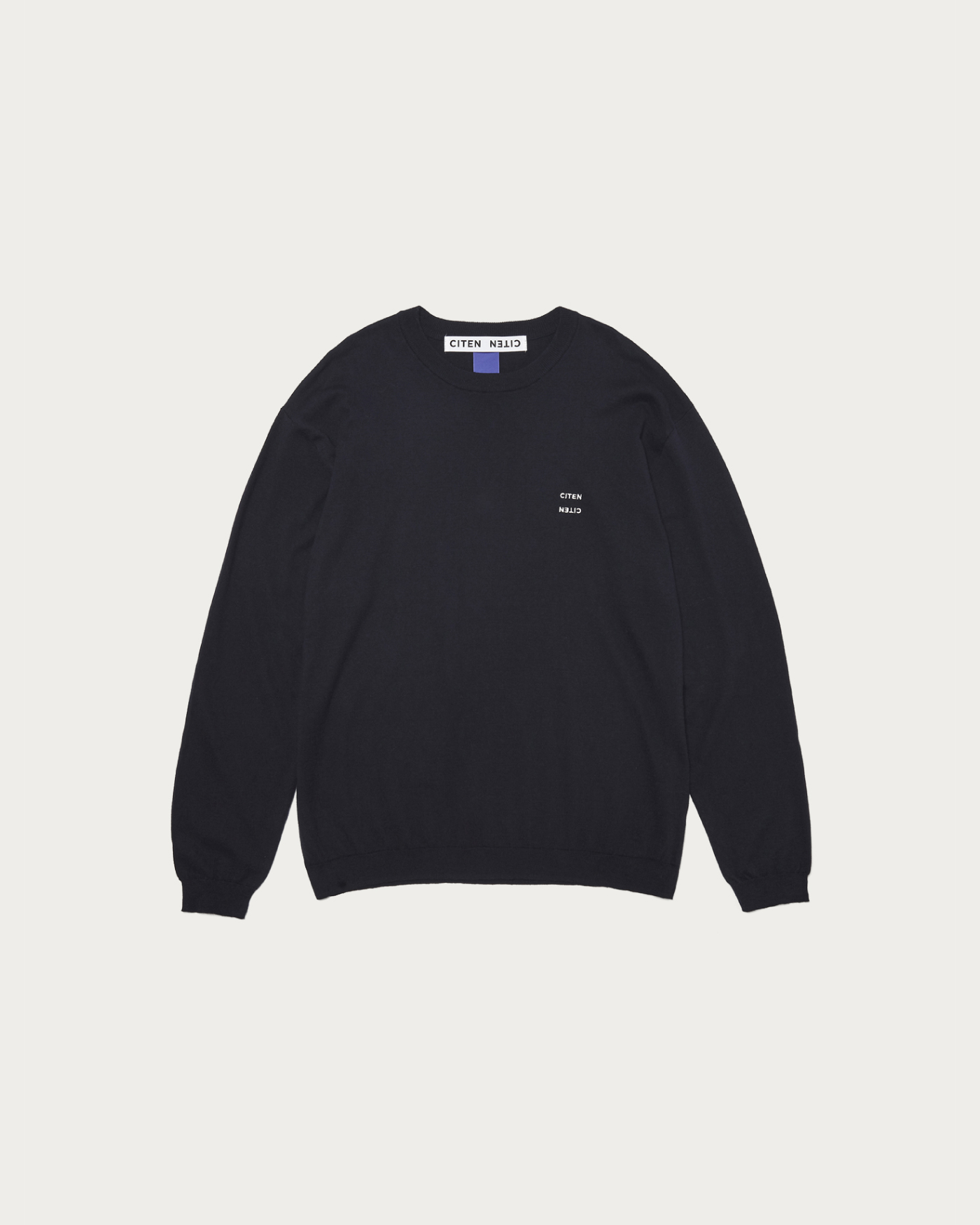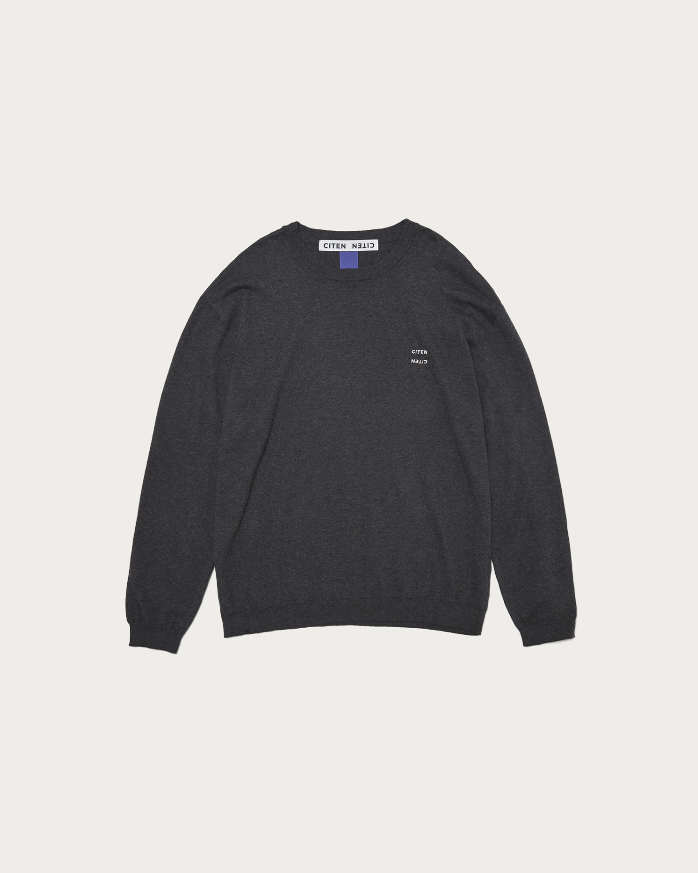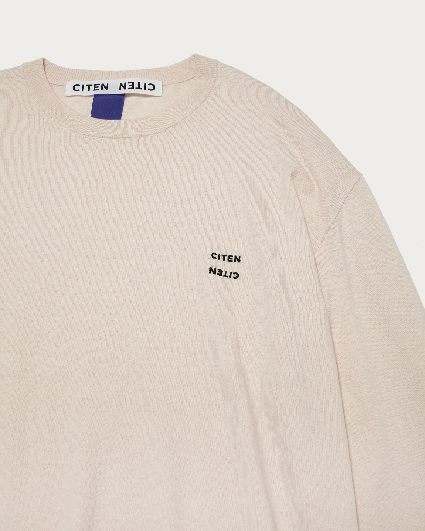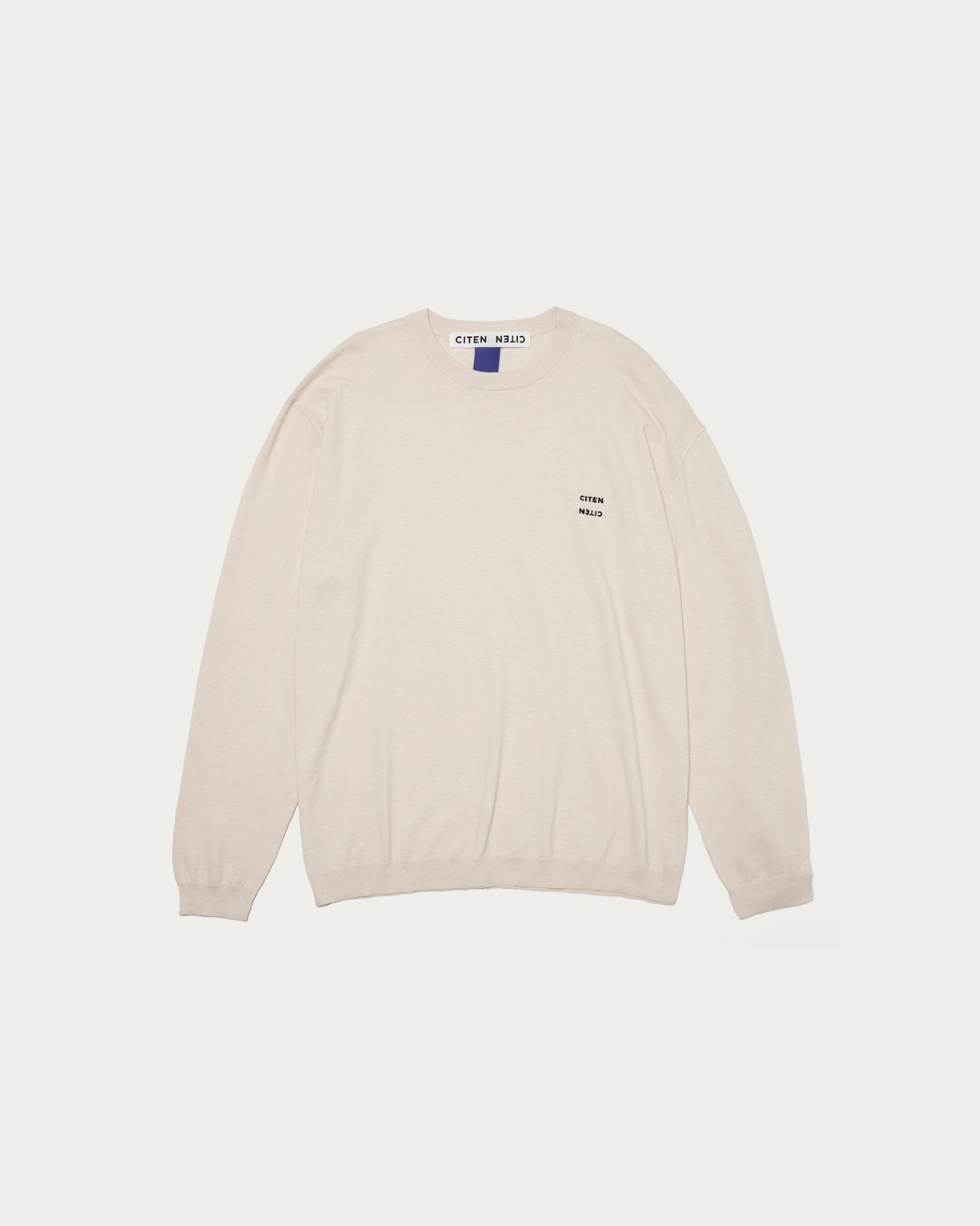 コットンカシミヤ素材を使用したクルーネックニット。大人が着られるリラックスシルエットが特徴。胸元にはCITENロゴをあしらっています。