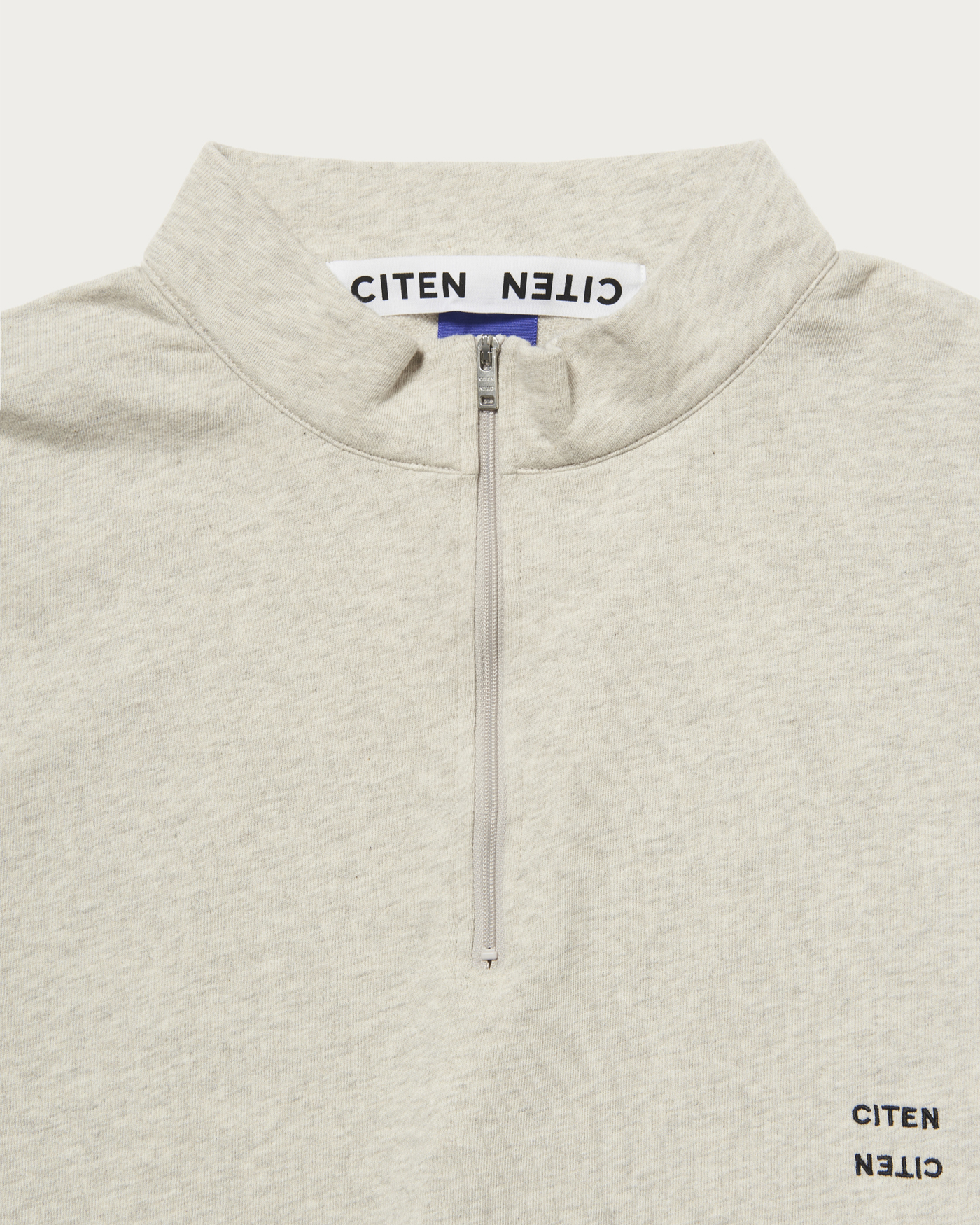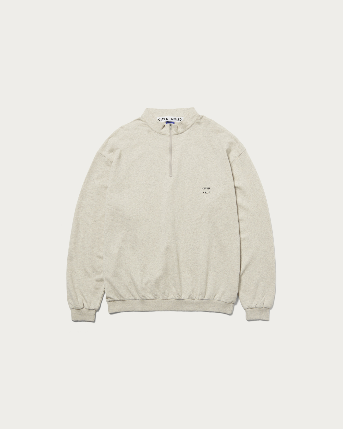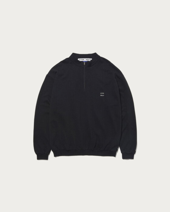 オリジナルのスウェット生地を使用したハーフジップシャツ。柔らかく、軽やかな素材特性を活かし、ややコンパクトなパターン設計をし大人が着れるリラックスシルエットに仕上げました。襟の高さを低くしスタイリッシュでミニマムに見えるようにこだわったデザインです。左胸にはCITENロゴを配しています。