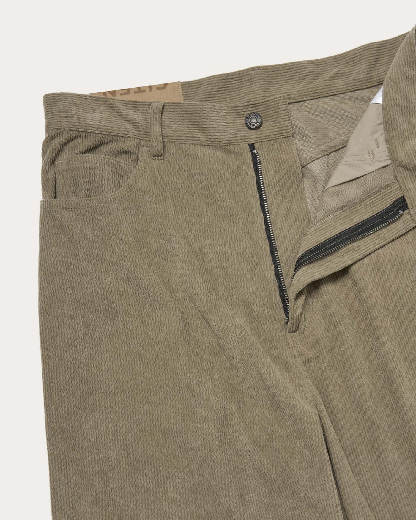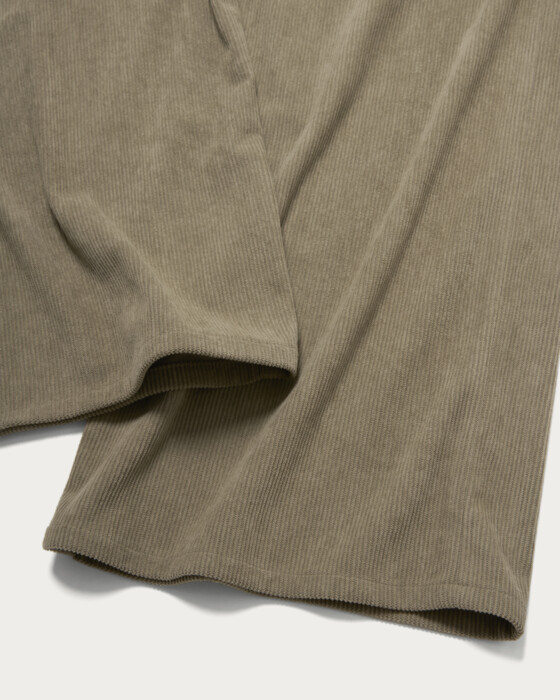 ソフトタッチのコーデュロイ素材を使用したバギーシルエットのパンツ。ゆとりのあるワタリサイズが特徴。ウエスト部分のオリジナル紙パッチがアクセントになっています。