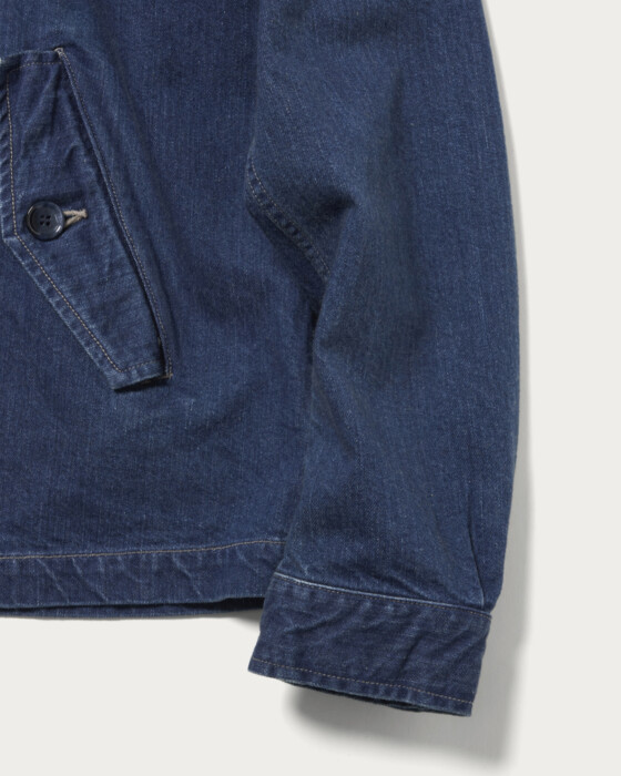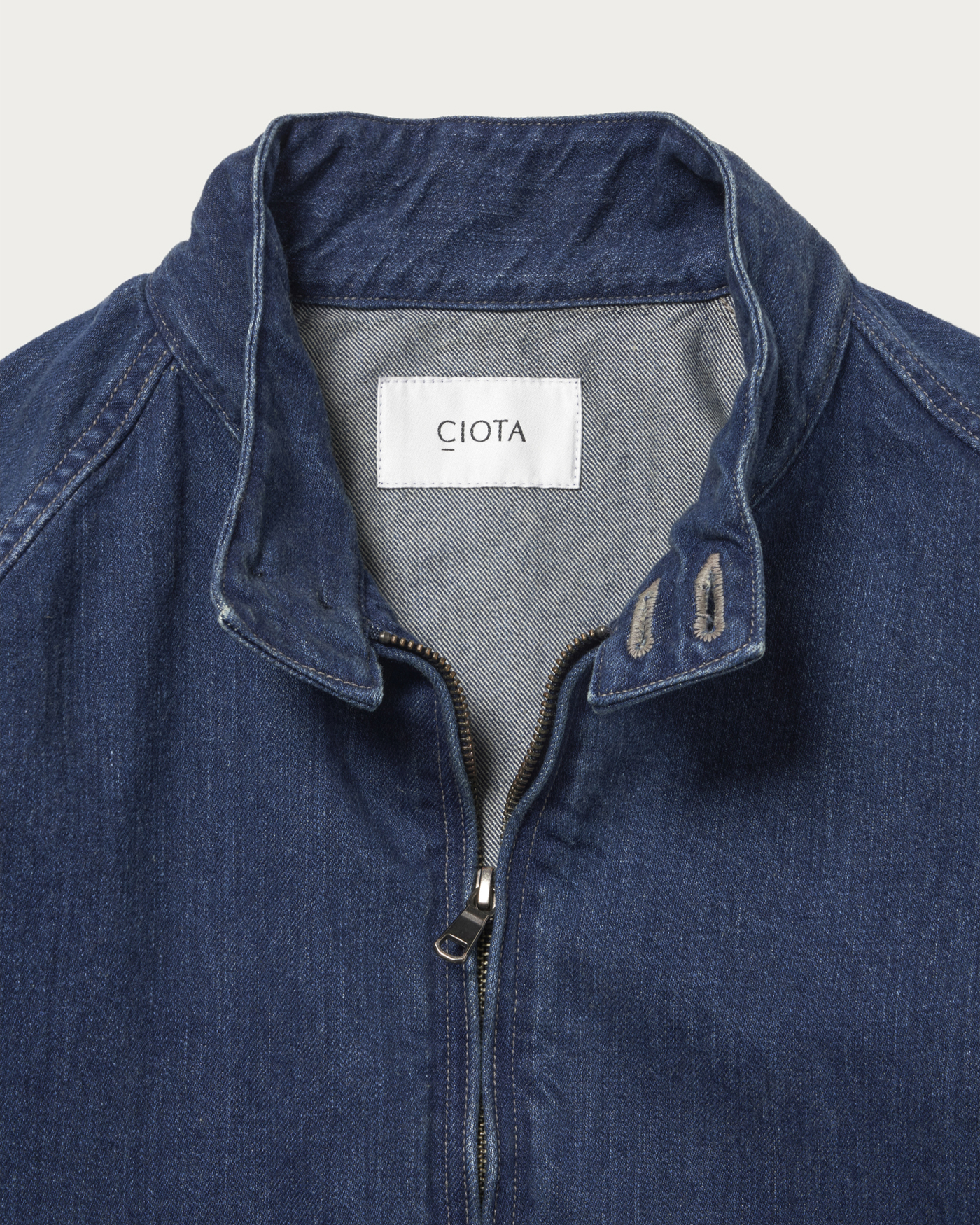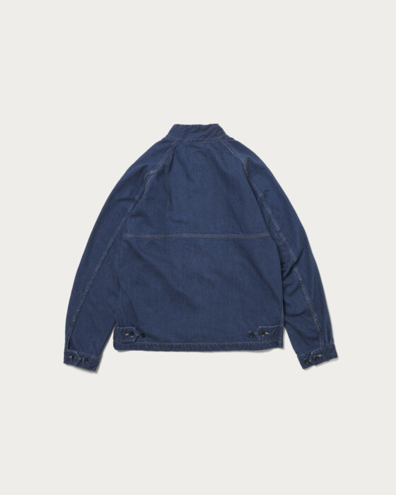 素材と加工を別注した〈CIOTA(シオタ)〉のデニムブルゾン。生地は、同時期に展開するパンツと揃え、定番デニムよりわずかにライトな11.5ozデニムへ載せ替えています。ペインターパンツにも使われるこのデニムは、しっかりとした表情を持ちながら軽さがあり、オーセンティックなデニムに比べて暑い時期でも着やすいバランスが魅力です。加工はやりすぎず、あくまでクリーンに。スタイリングを選ばない、程よい表情に仕上げている。型は今季登場のDRIVING COAT(ブルゾン)をベースに、デニムならではの素材感が際立つよう、シルエットやディテールを細かく調整しました。カラーは加工違いで2色展開。こちらはややフェード感を持たせたブルー。もう一色は、ややクリーンな表情が際立つワンウォッシュを用意しています。